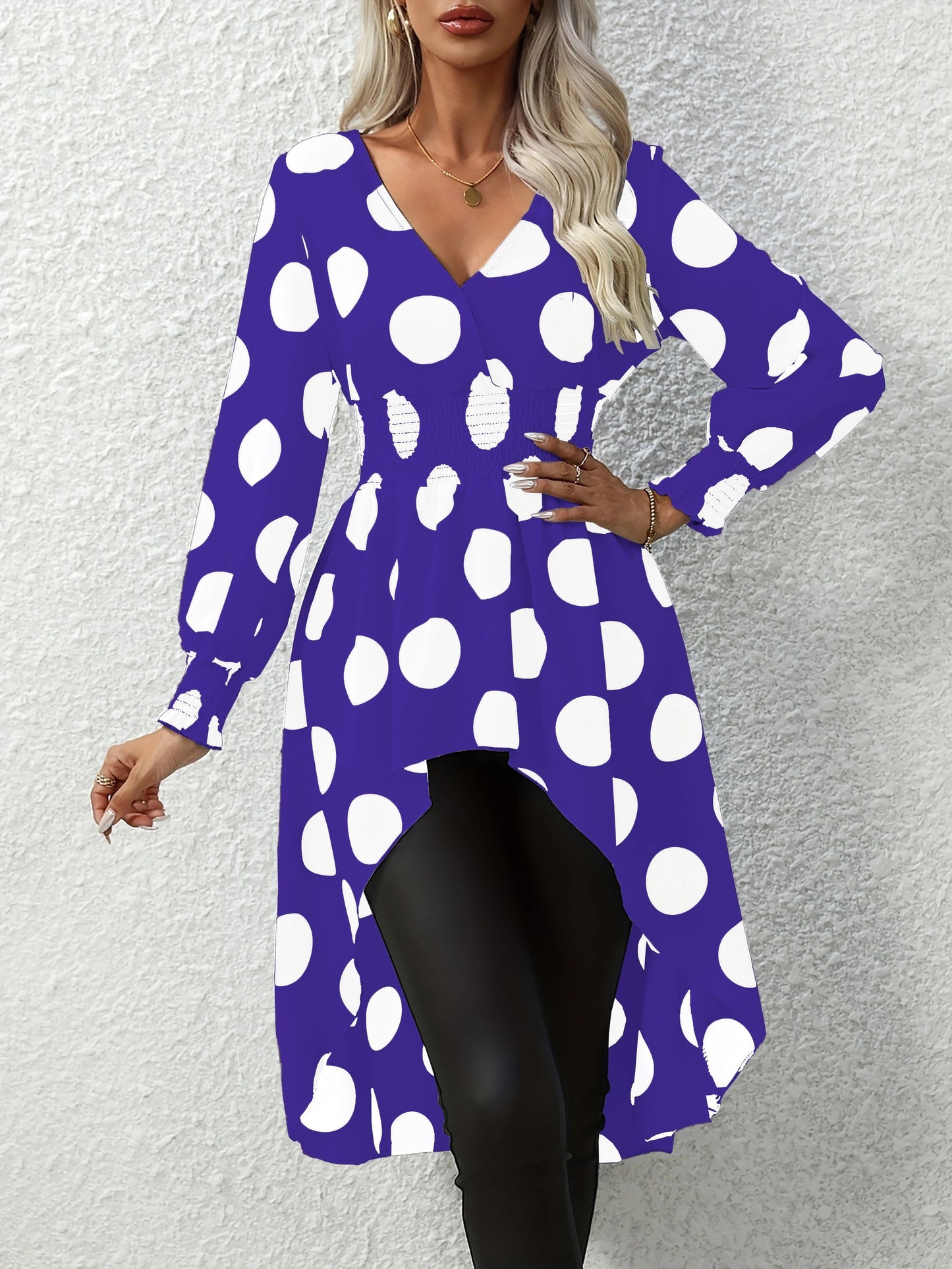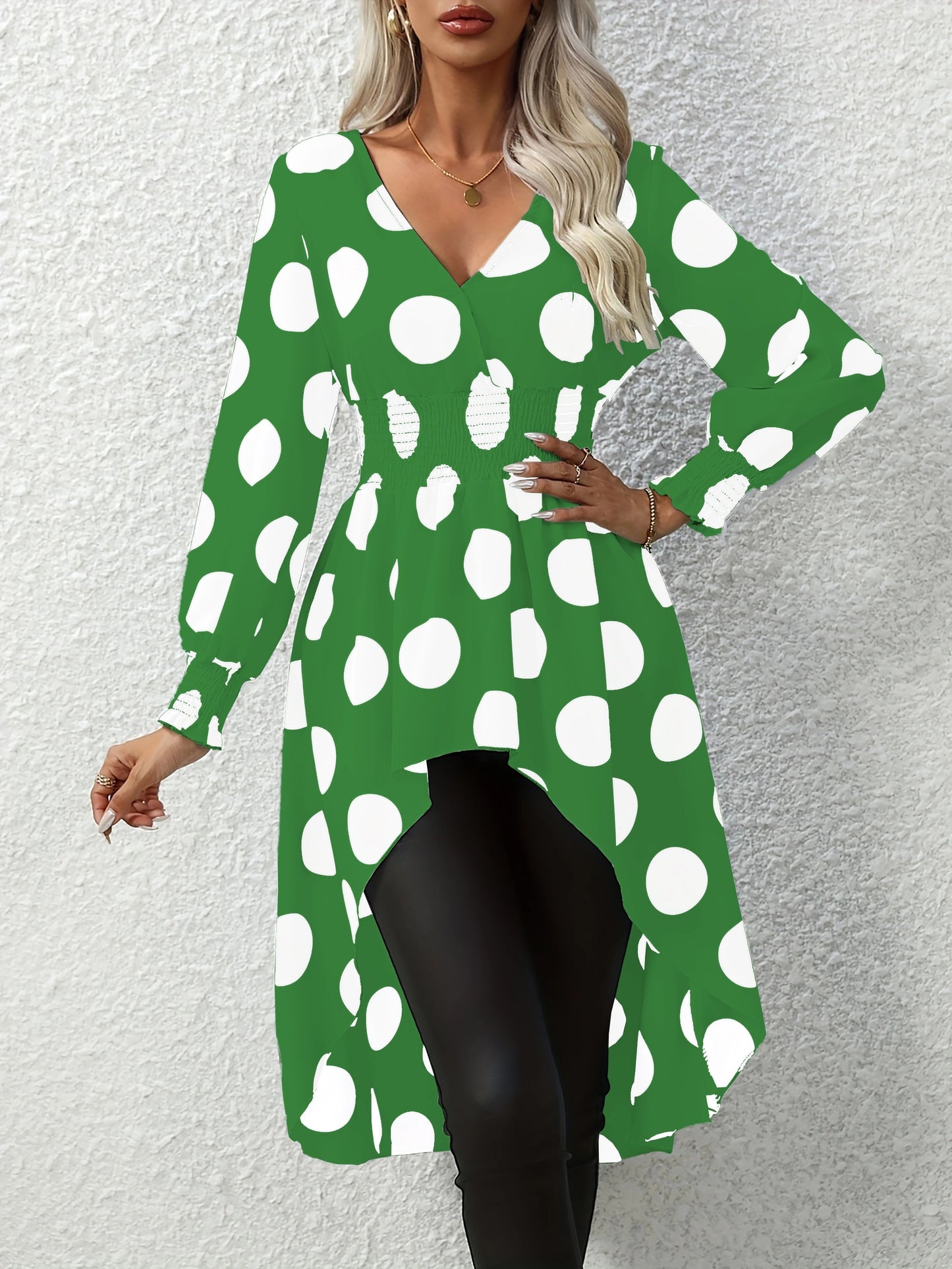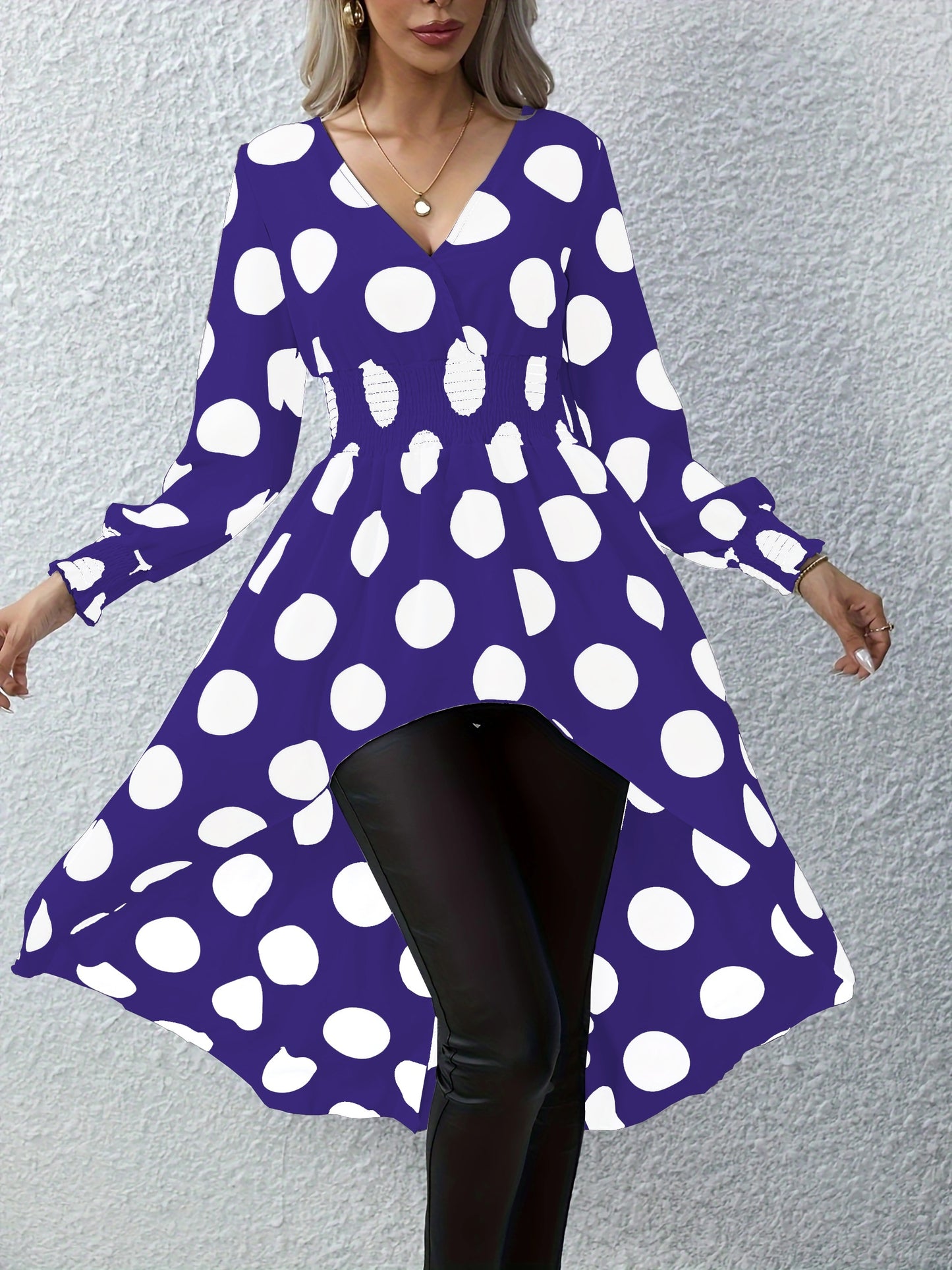 Women's Casual V-Neck Tunic - Polka Dot Print for Fall Style