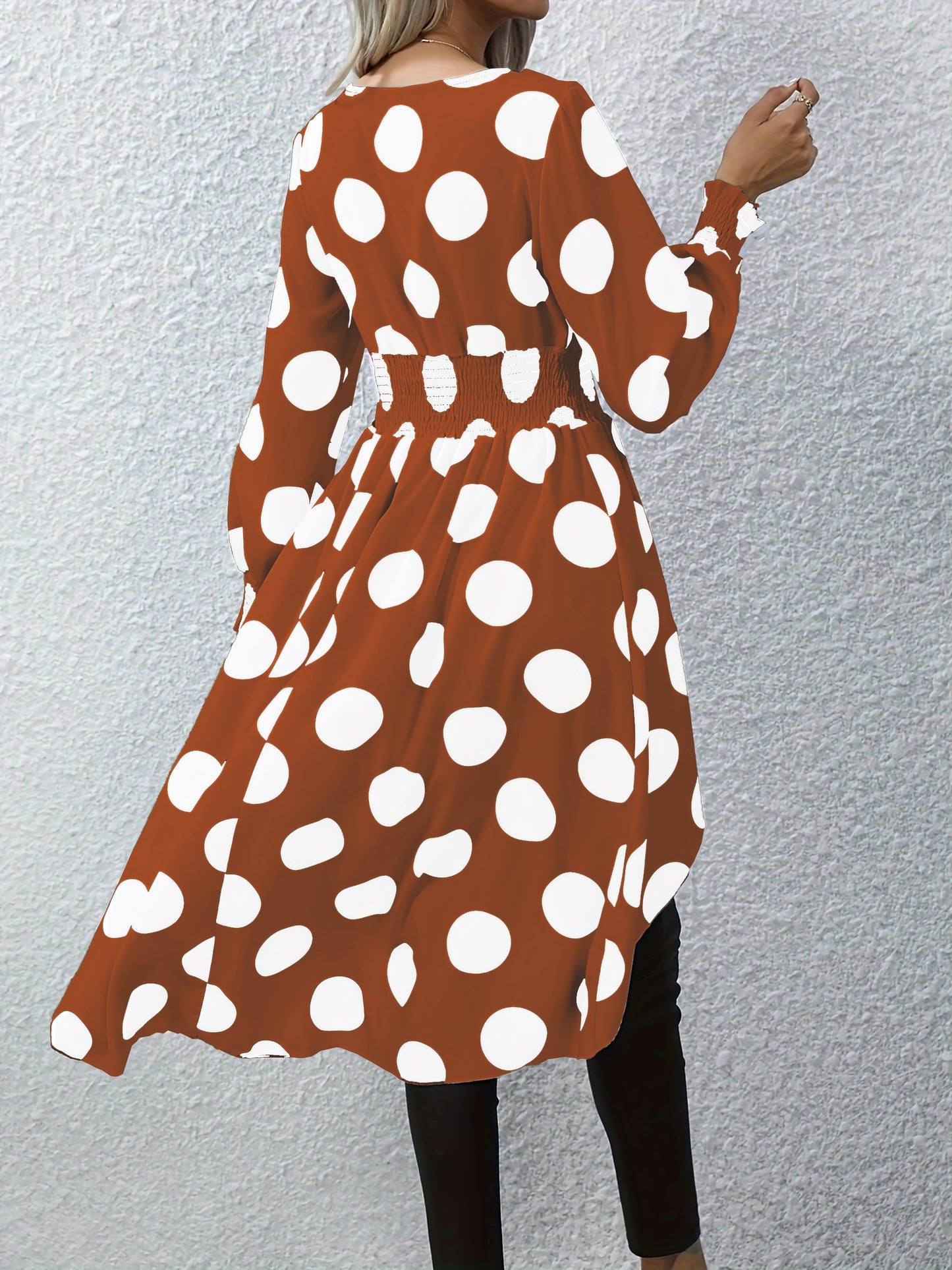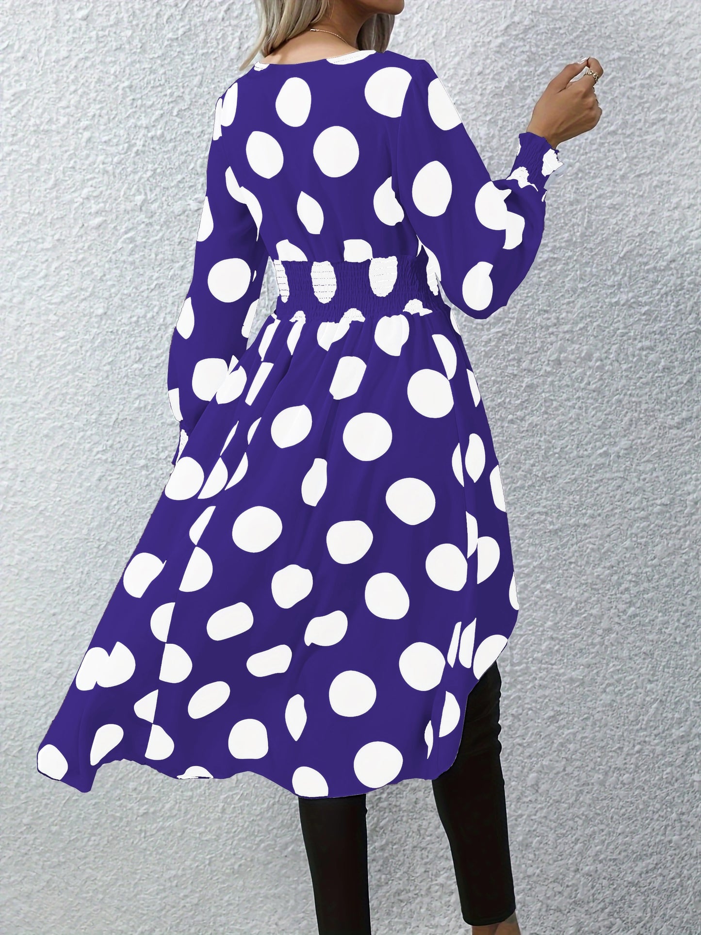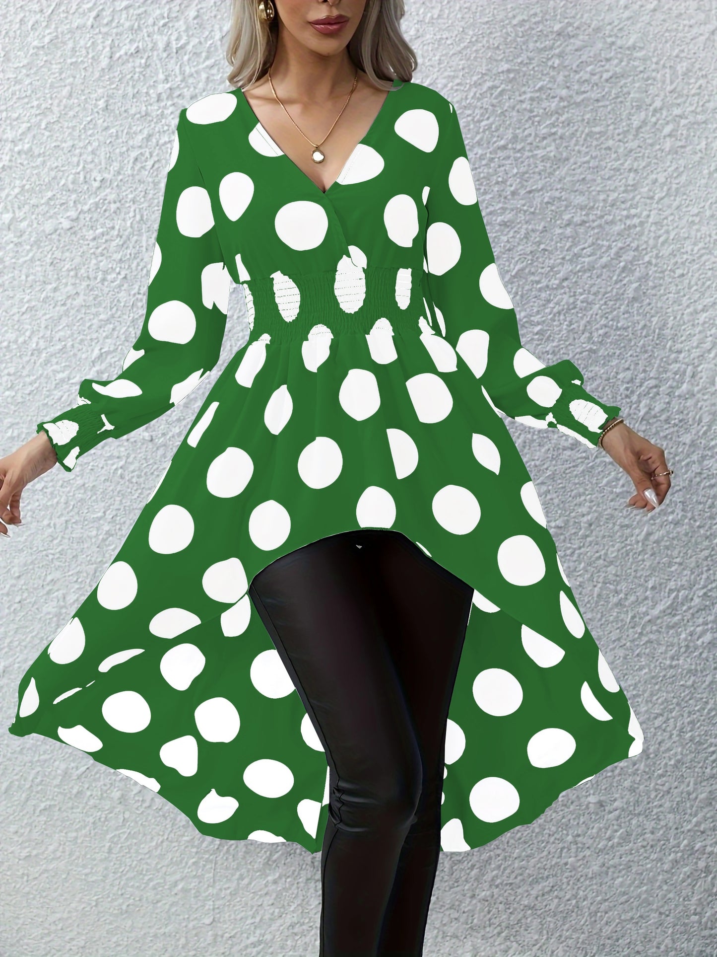 Women's Casual V-Neck Tunic - Polka Dot Print for Fall Style