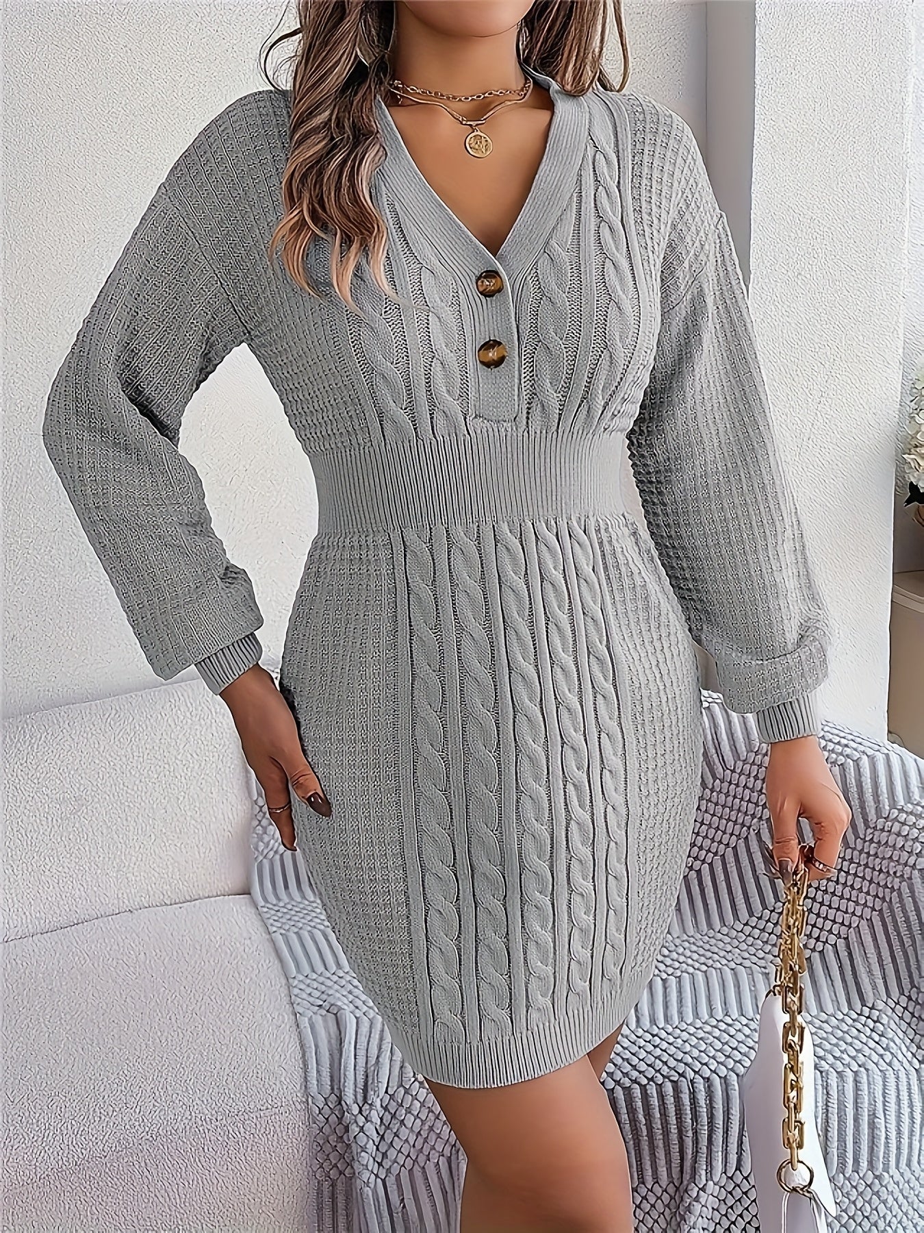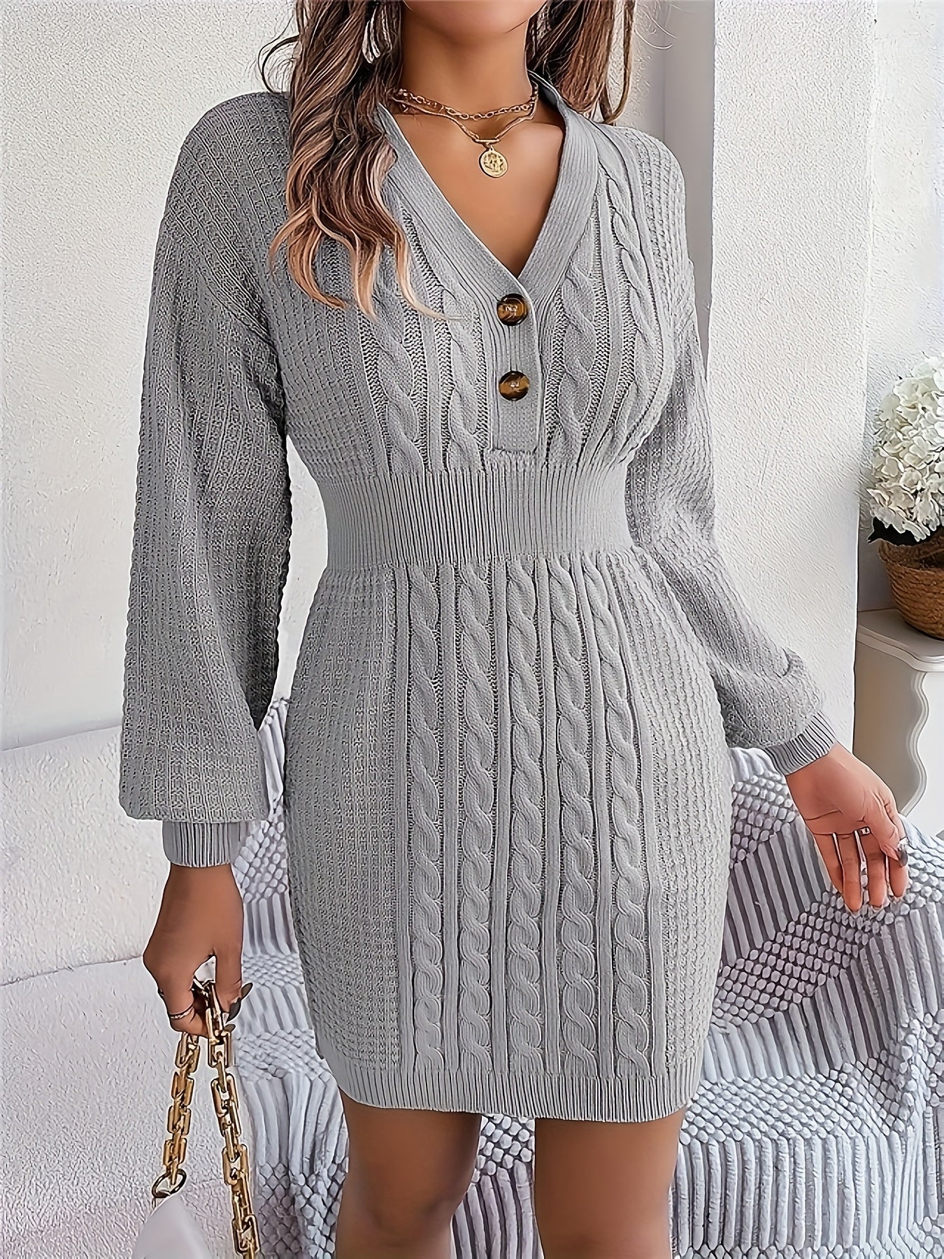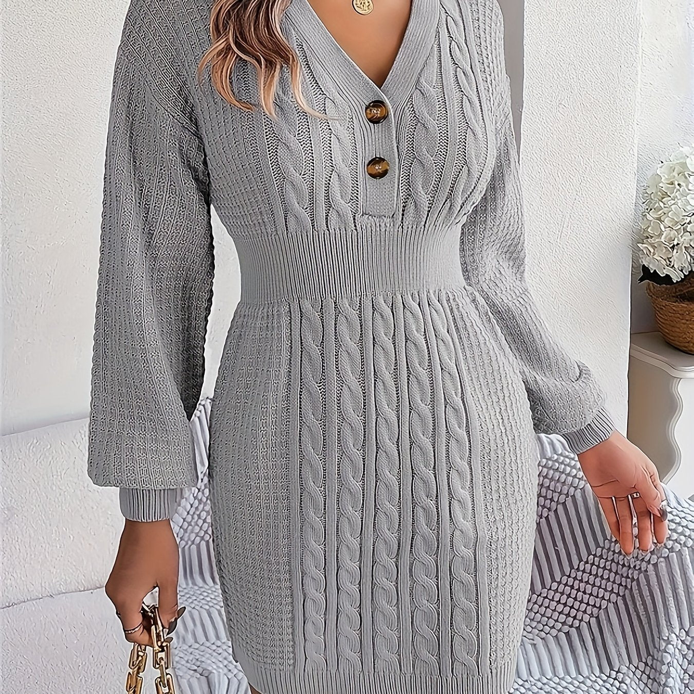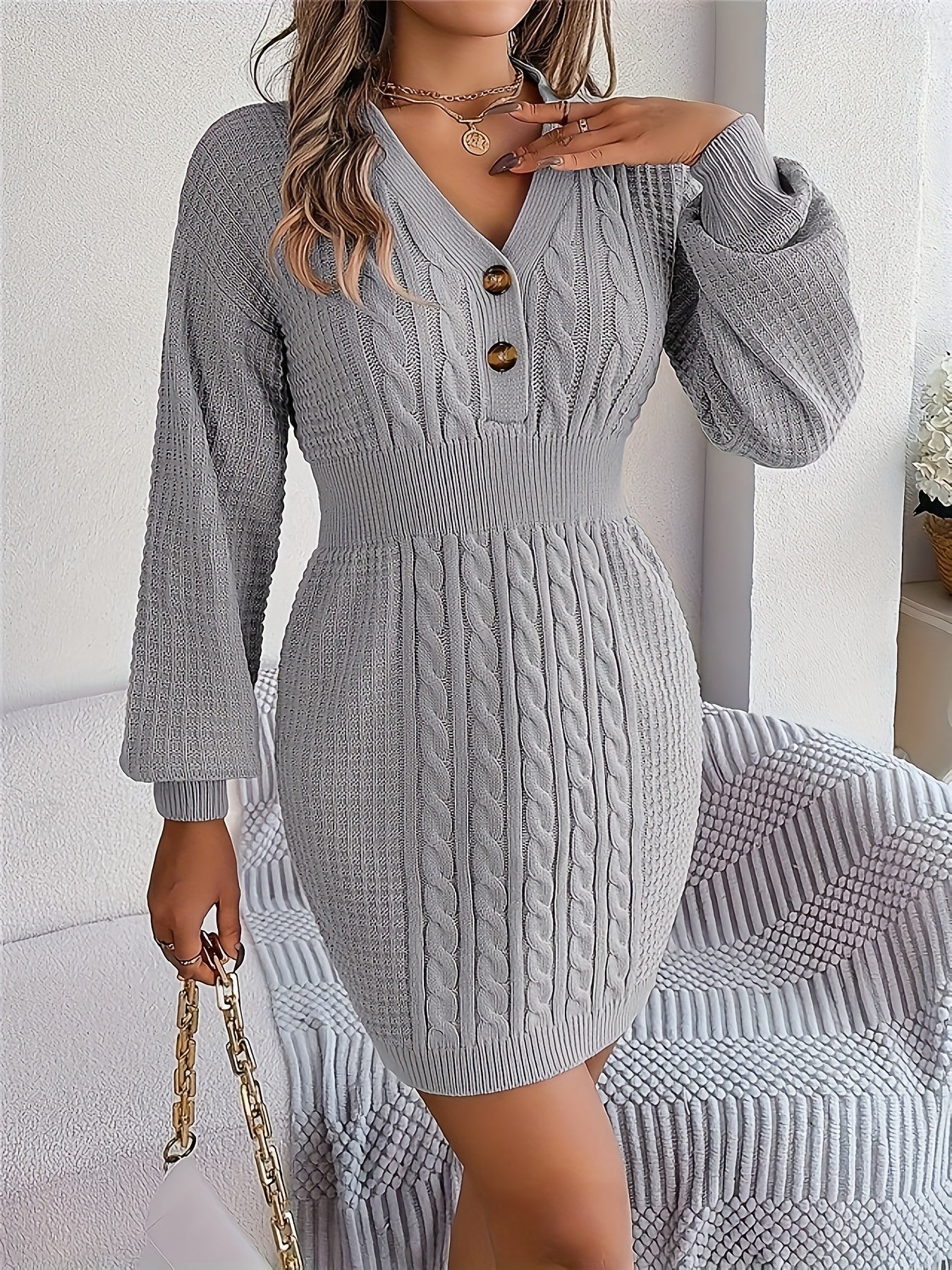 Discover the perfect blend of comfort and style with our Women's Casual Soft Sweater Dress. Featuring a chic V-neck and button front, this mid-length dress is crafted from 100% polyester, making it an ideal choice for fall and winter outdoor events and casual wear.