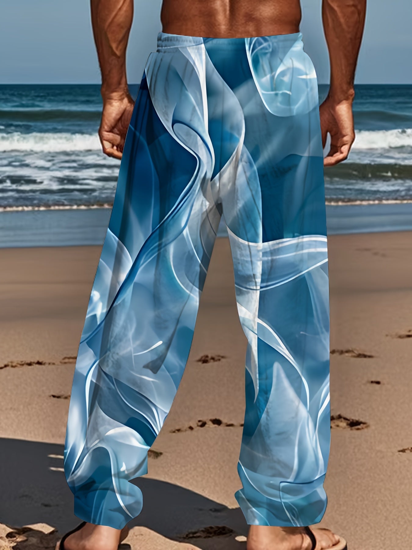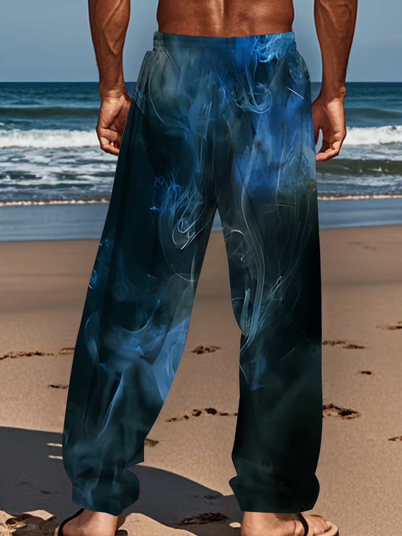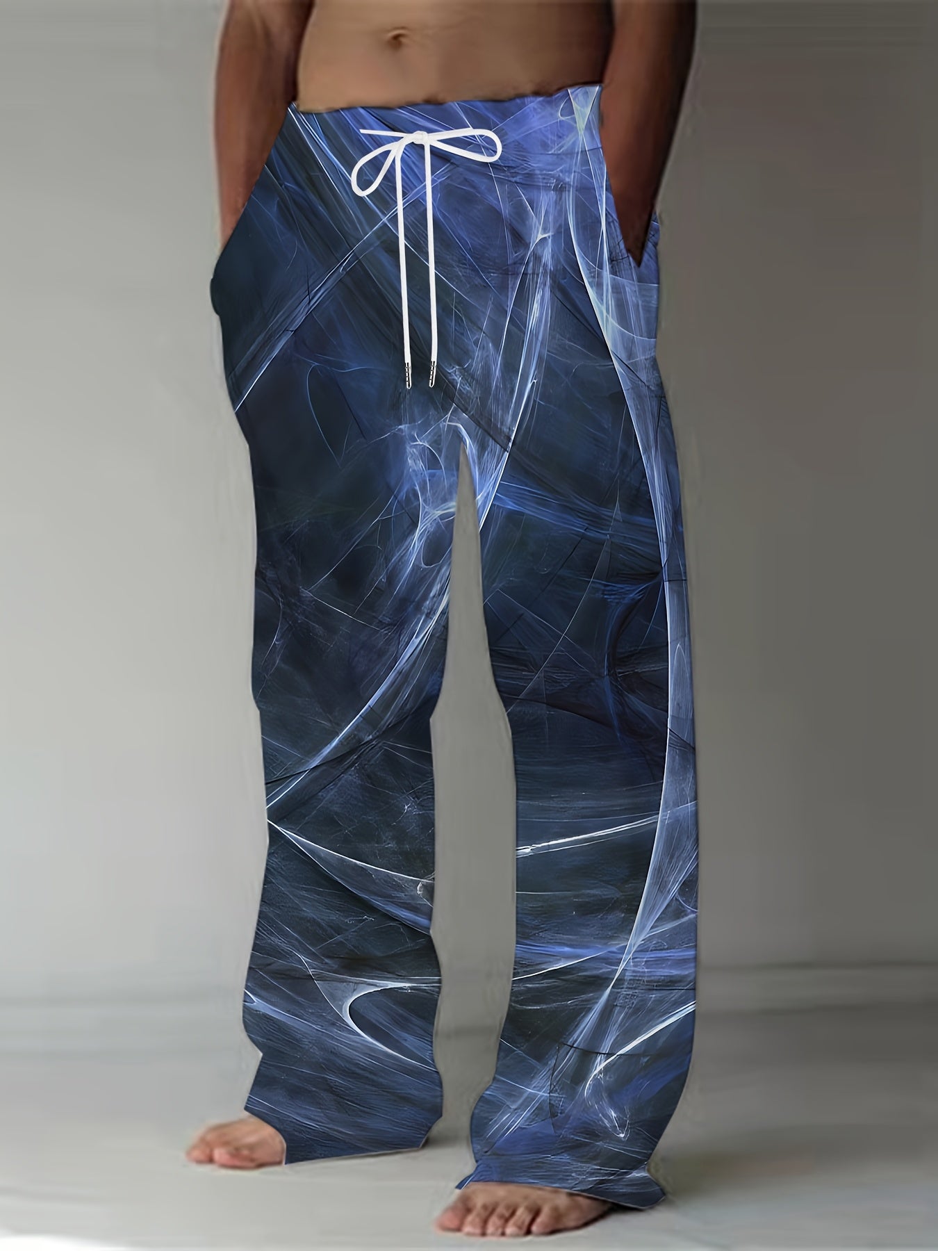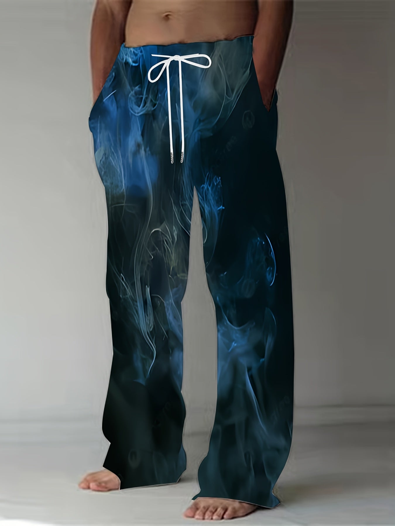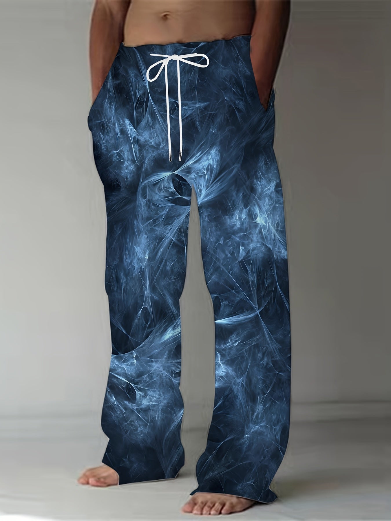 Men's Deep Blue Marble Print Wide-Leg Trousers - Stylish Casual & Formal