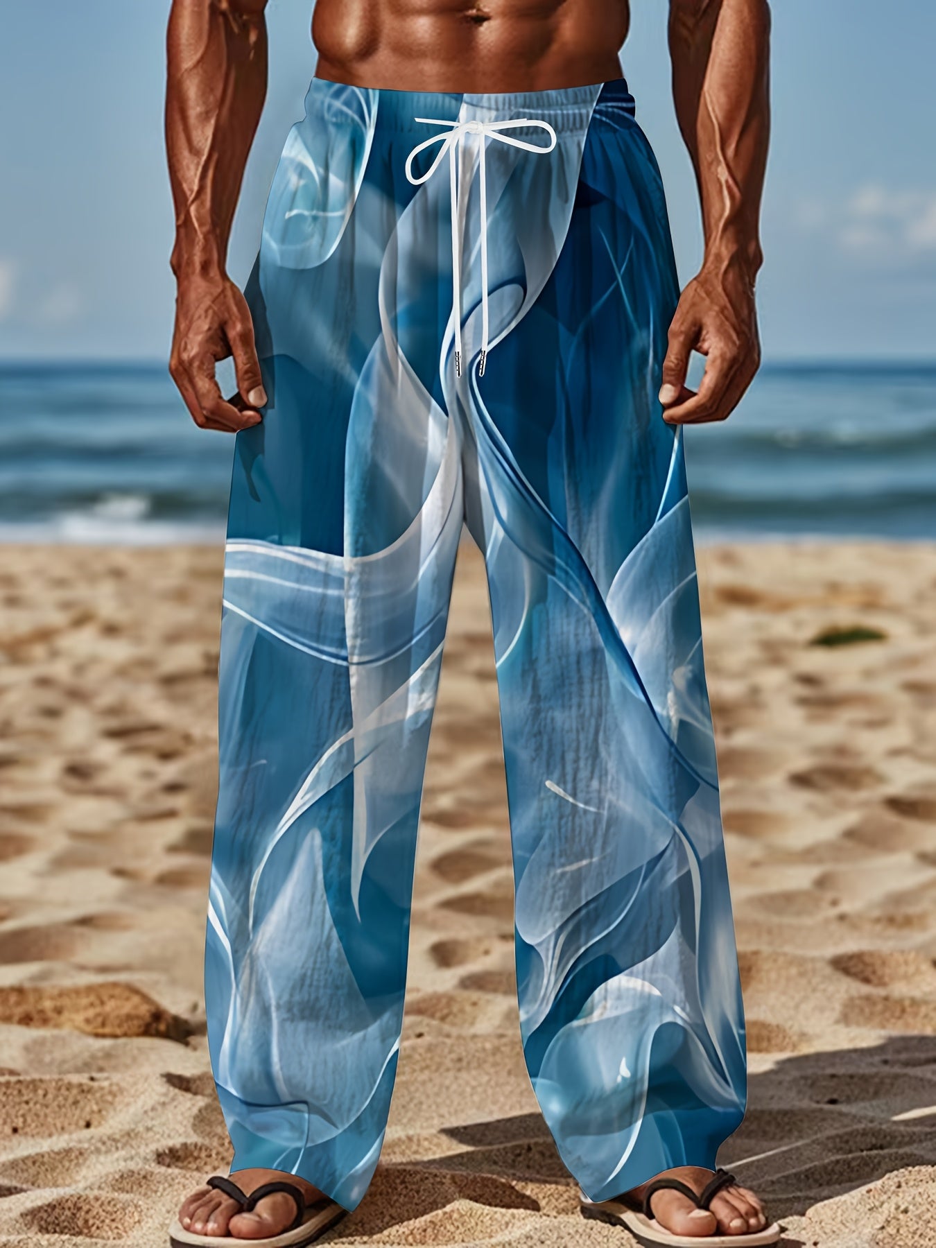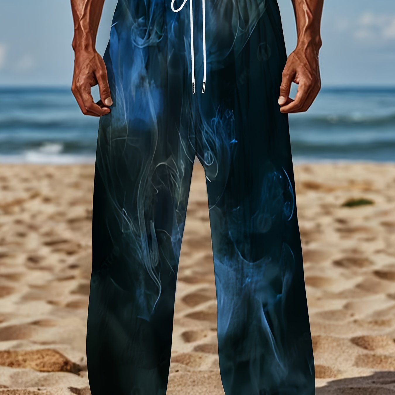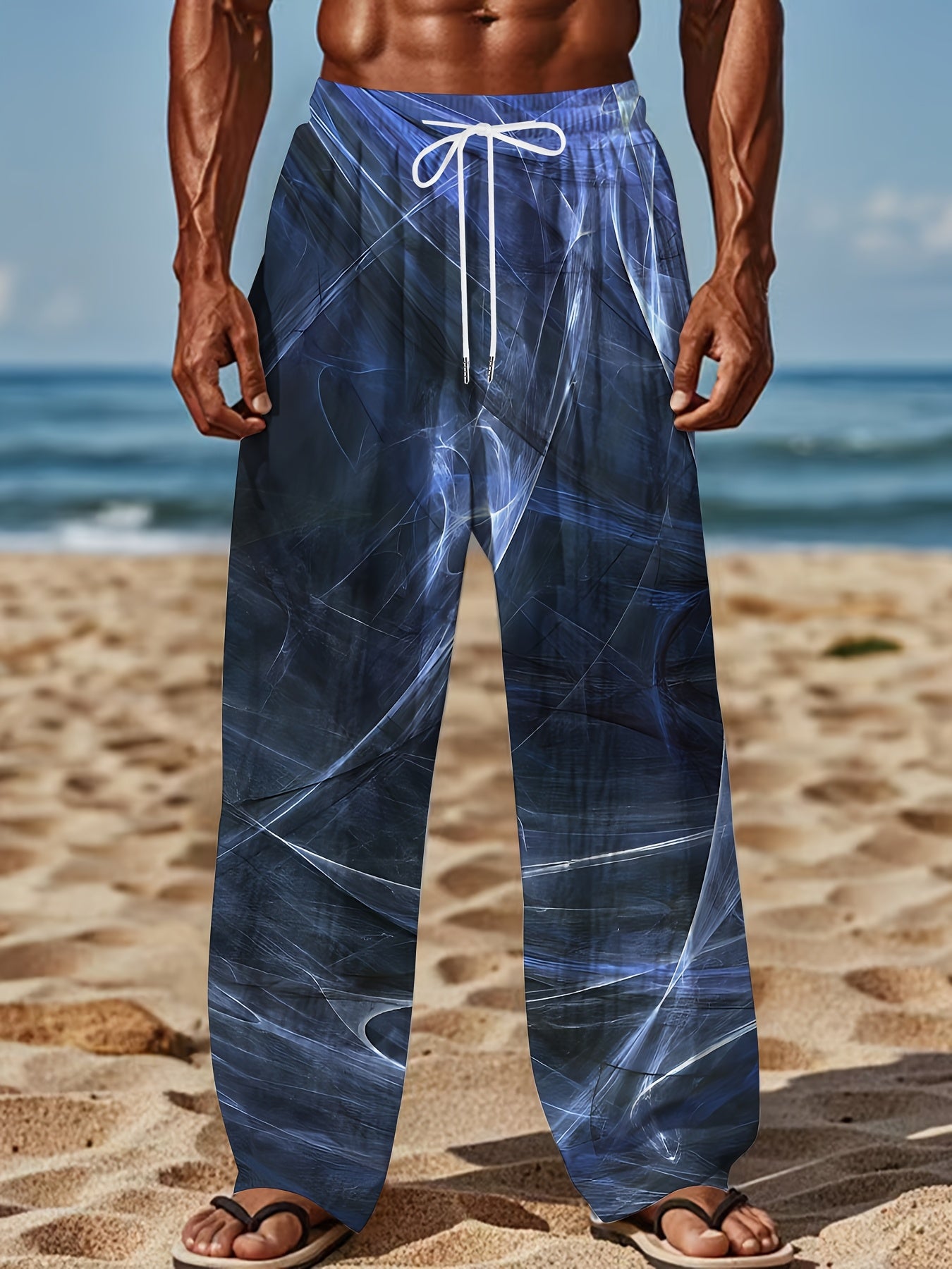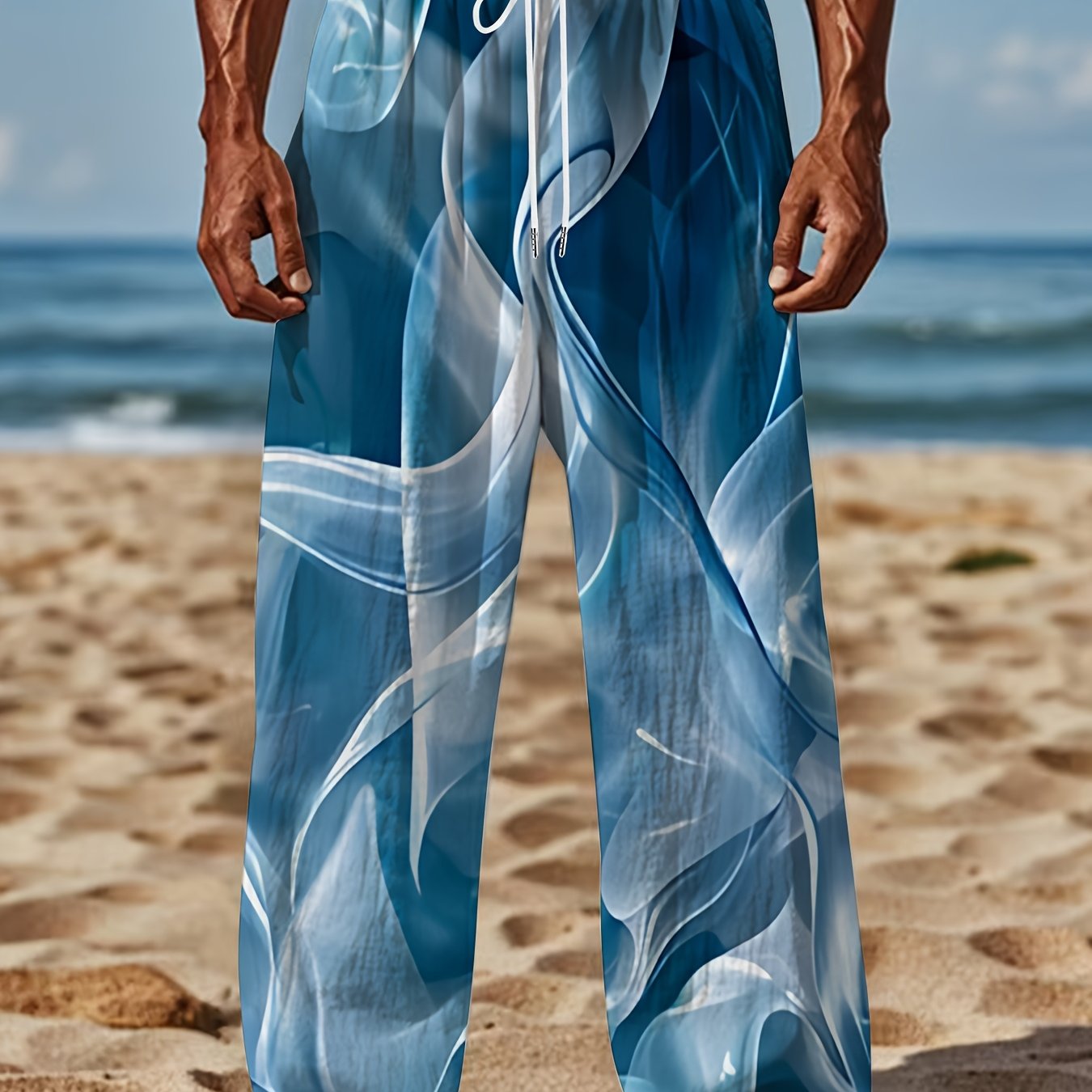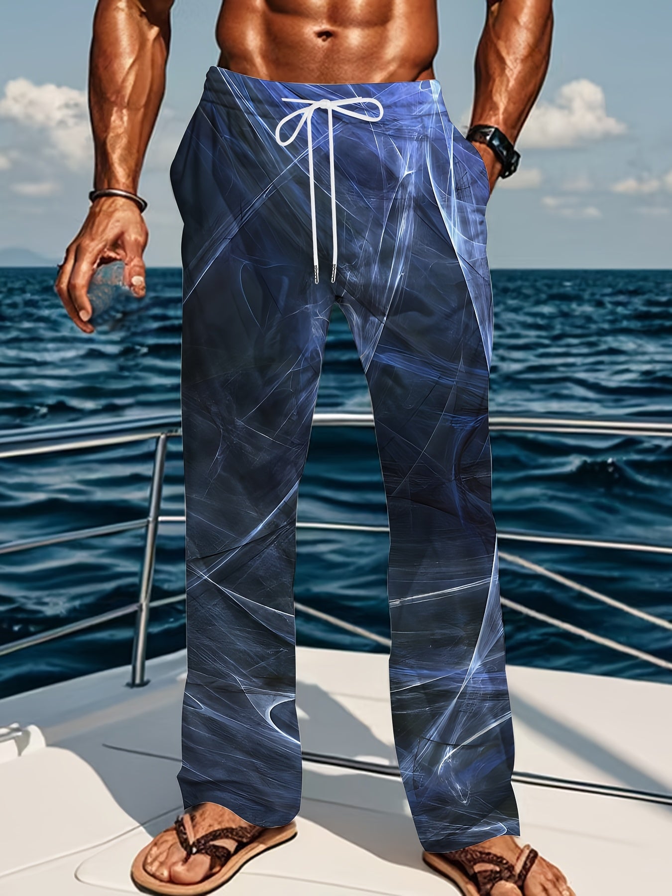 Men's Deep Blue Marble Print Wide-Leg Trousers - Stylish Casual & Formal