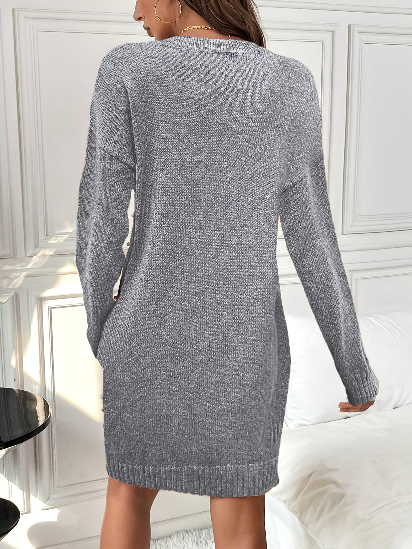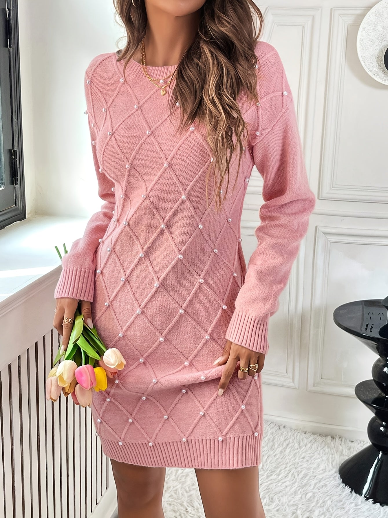 Women's Elegant Beaded Sweater Dress - Knee-Length Knit, Loose Fit