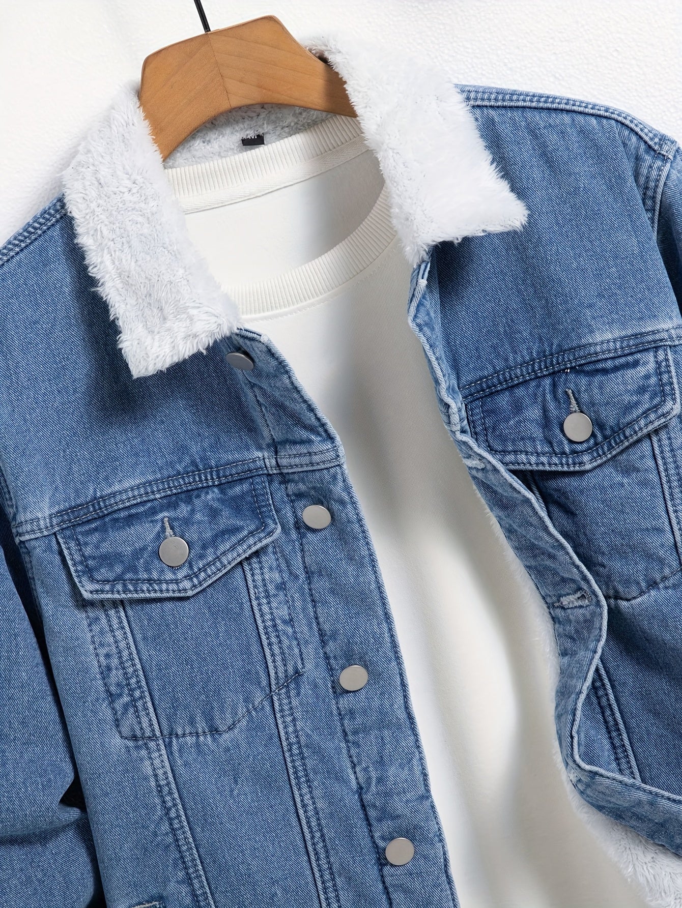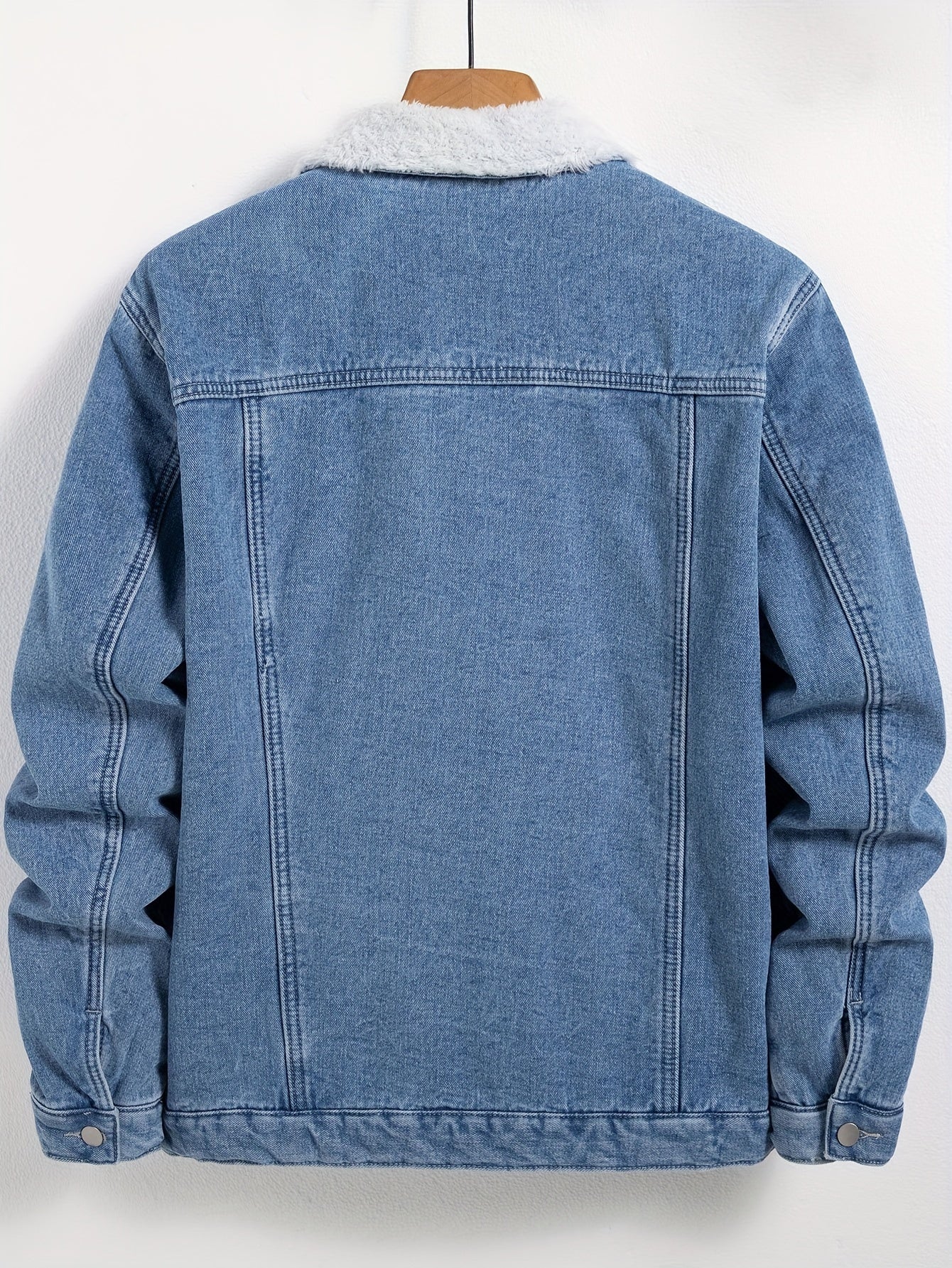 Men's Heavyweight Denim Jacket - Machine Washable & Cozy Lined Coat