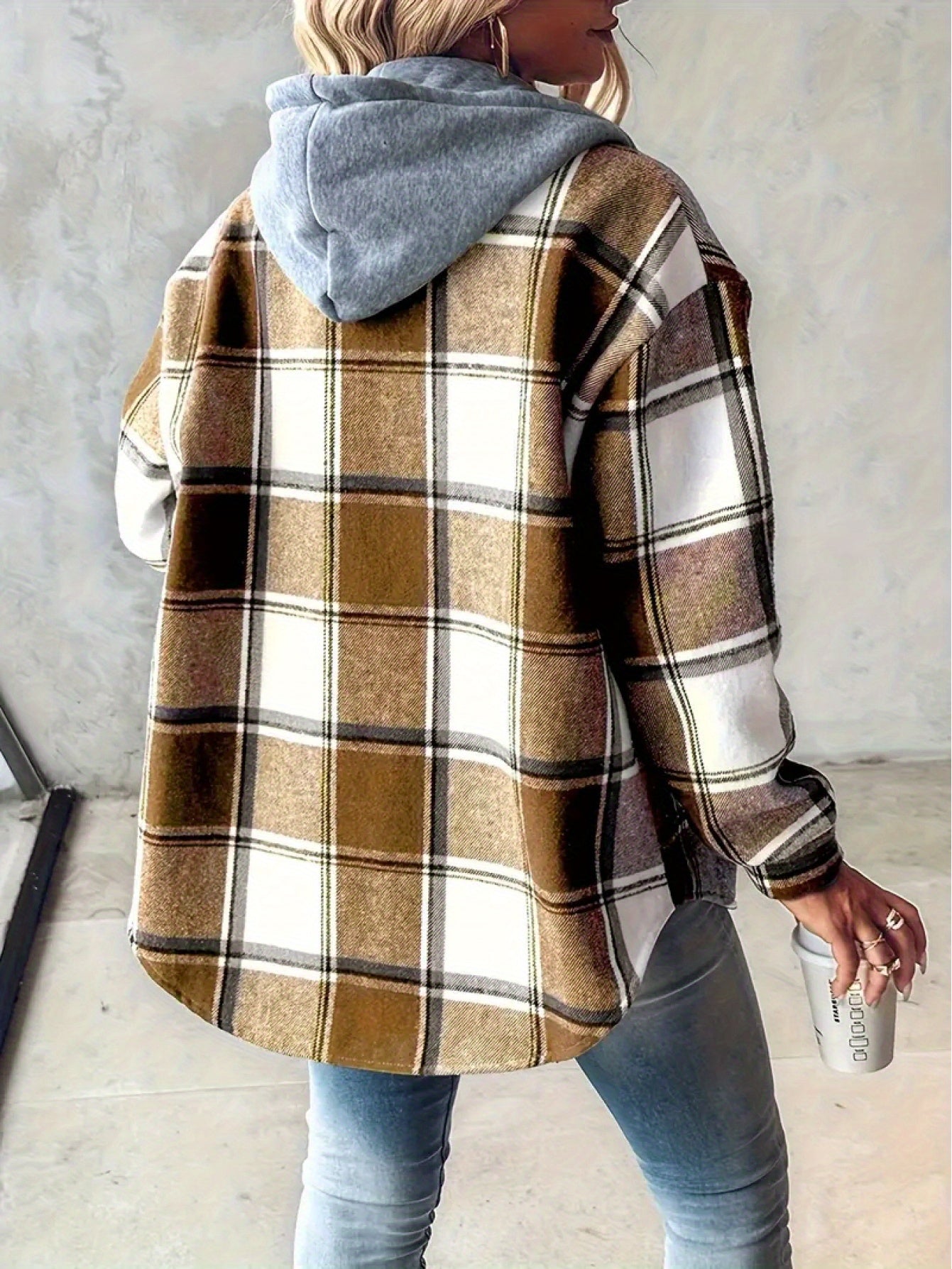 Women's Hooded Shacket Jacket - Cozy Plaid for Fall/Winter Style