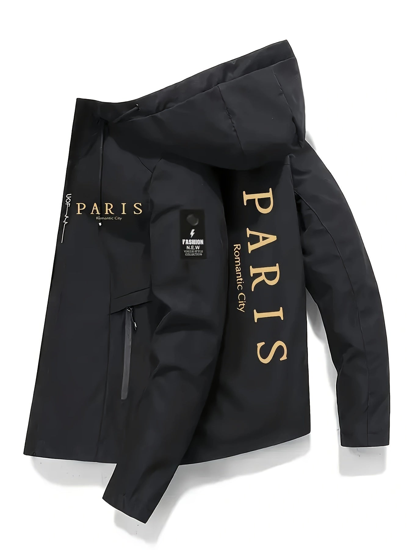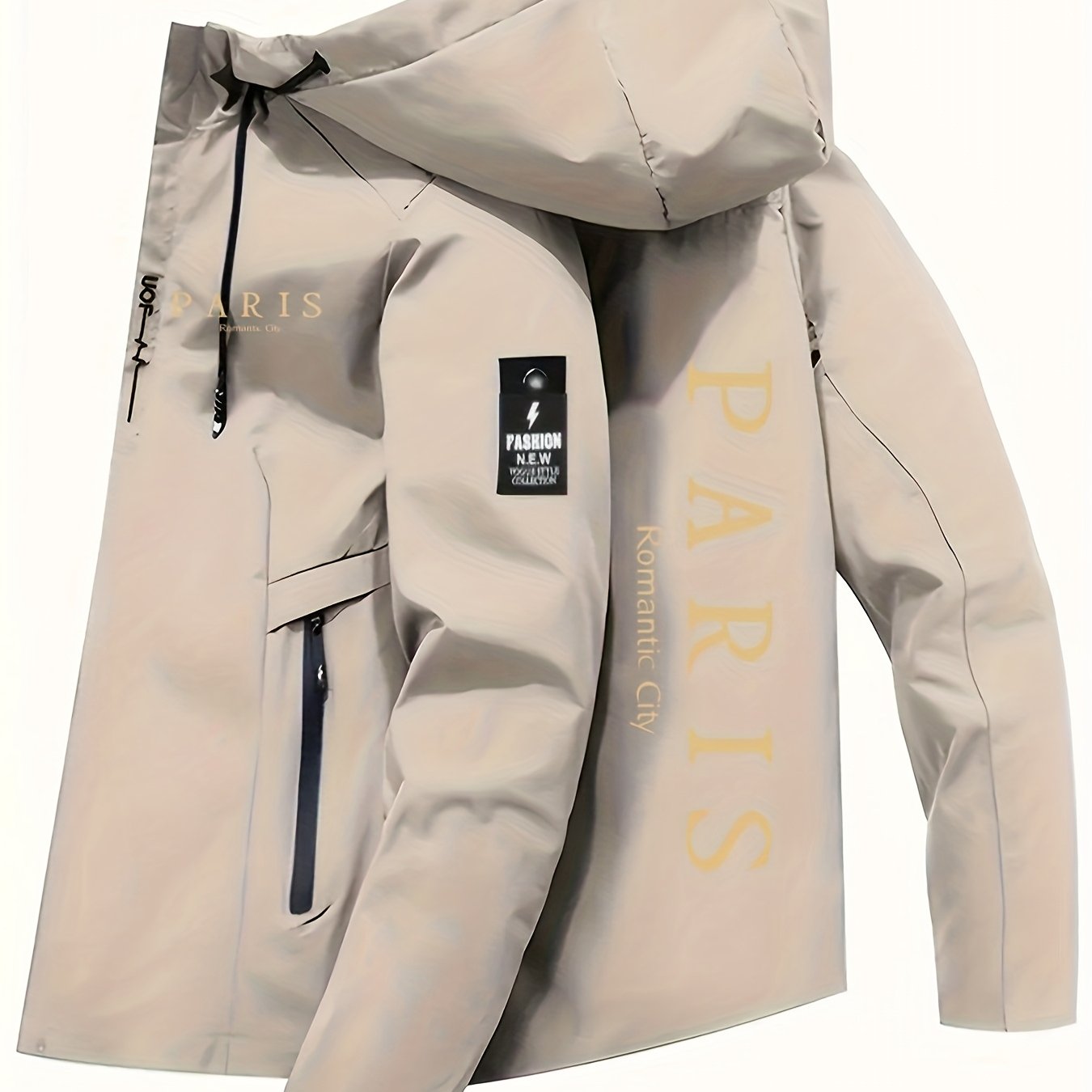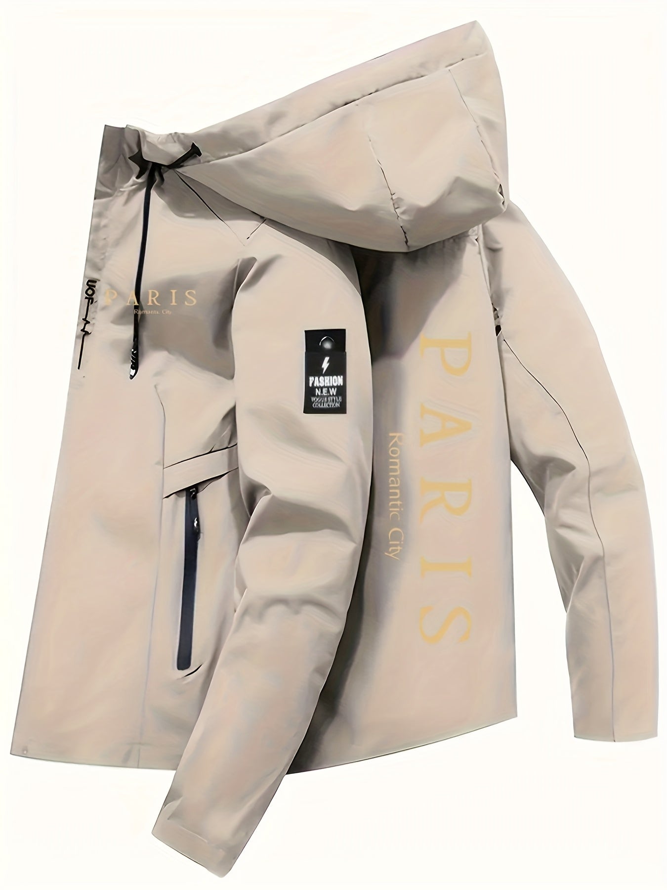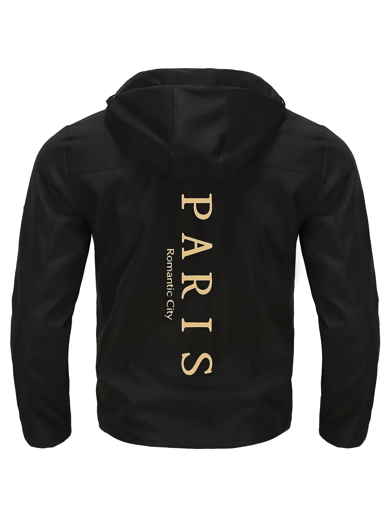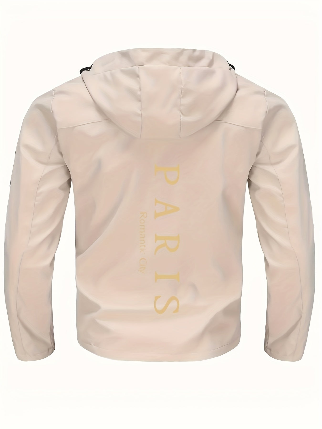 Discover the ultimate combination of style and utility with our Men's Chic Paris-Inspired Light Blue Windbreaker. This windproof jacket is crafted from 100% polyester, featuring a modern hooded design and convenient zipper pockets, making it perfect for outdoor activities while keeping you effortlessly stylish.