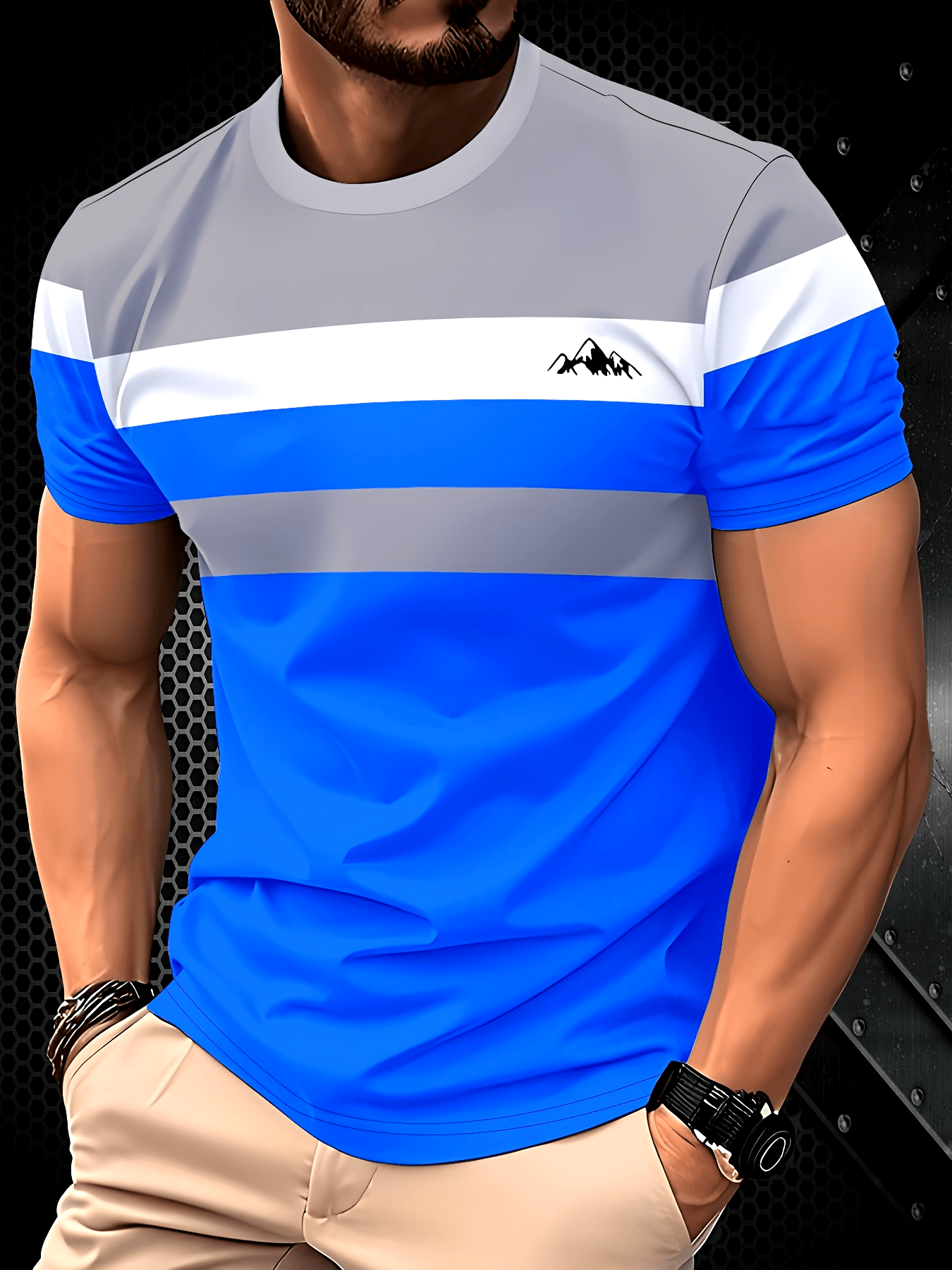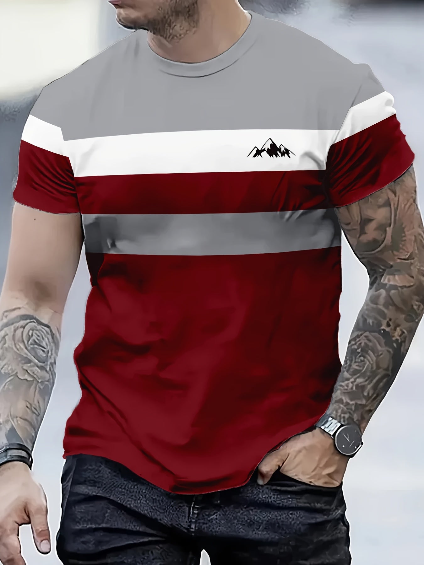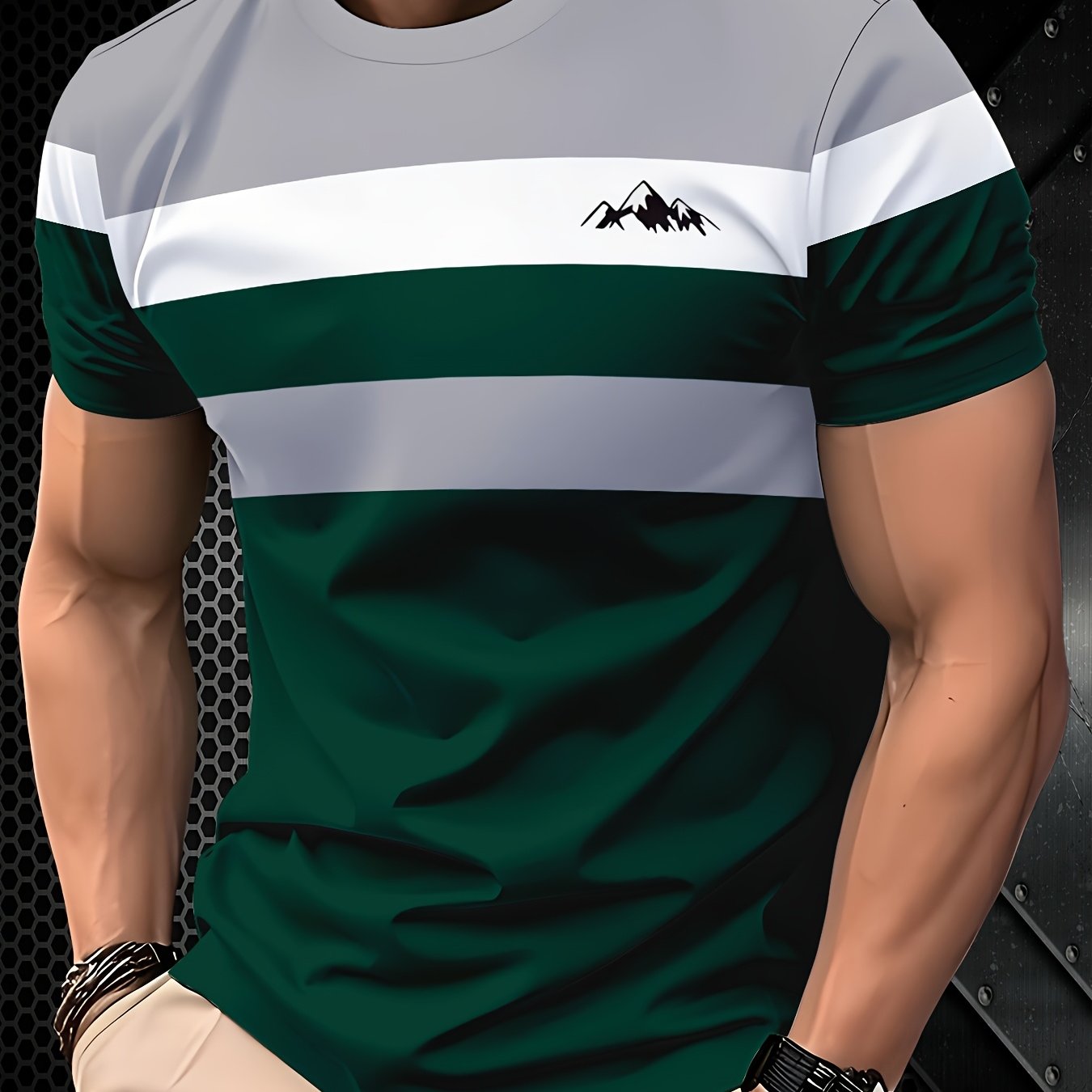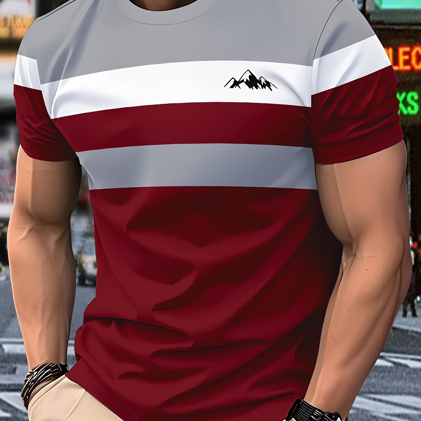 Men's Casual Round Neck T-Shirt - 100% Polyester, Machine Washable