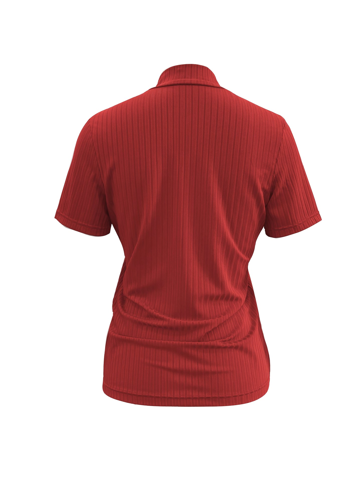 Women's Solid Red V-Neck Zip-Up Tee - Casual Spring/Summer Top