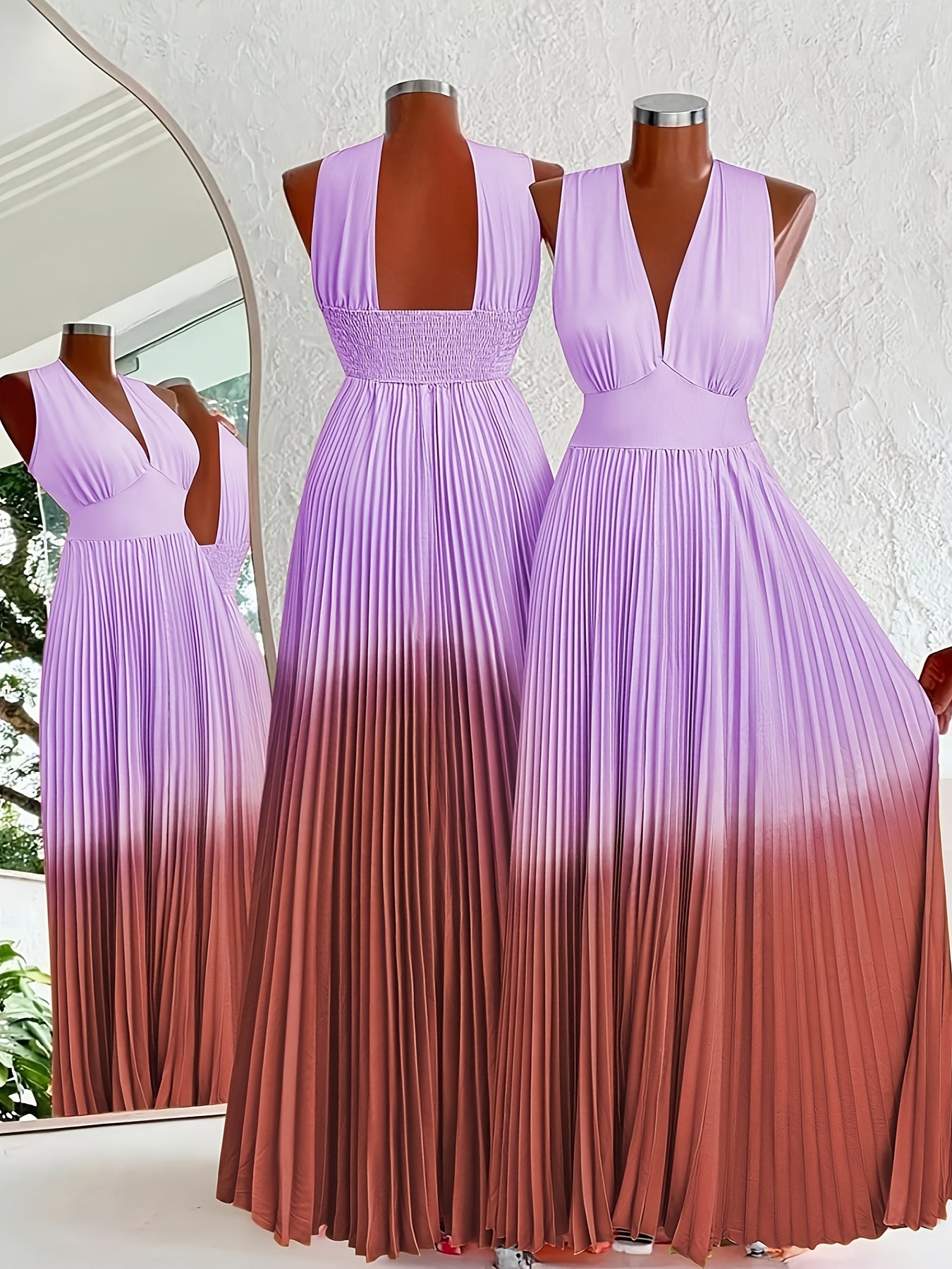 Elegant Gradient Purple to Pink Dress - Women's Formal A-Line Summer