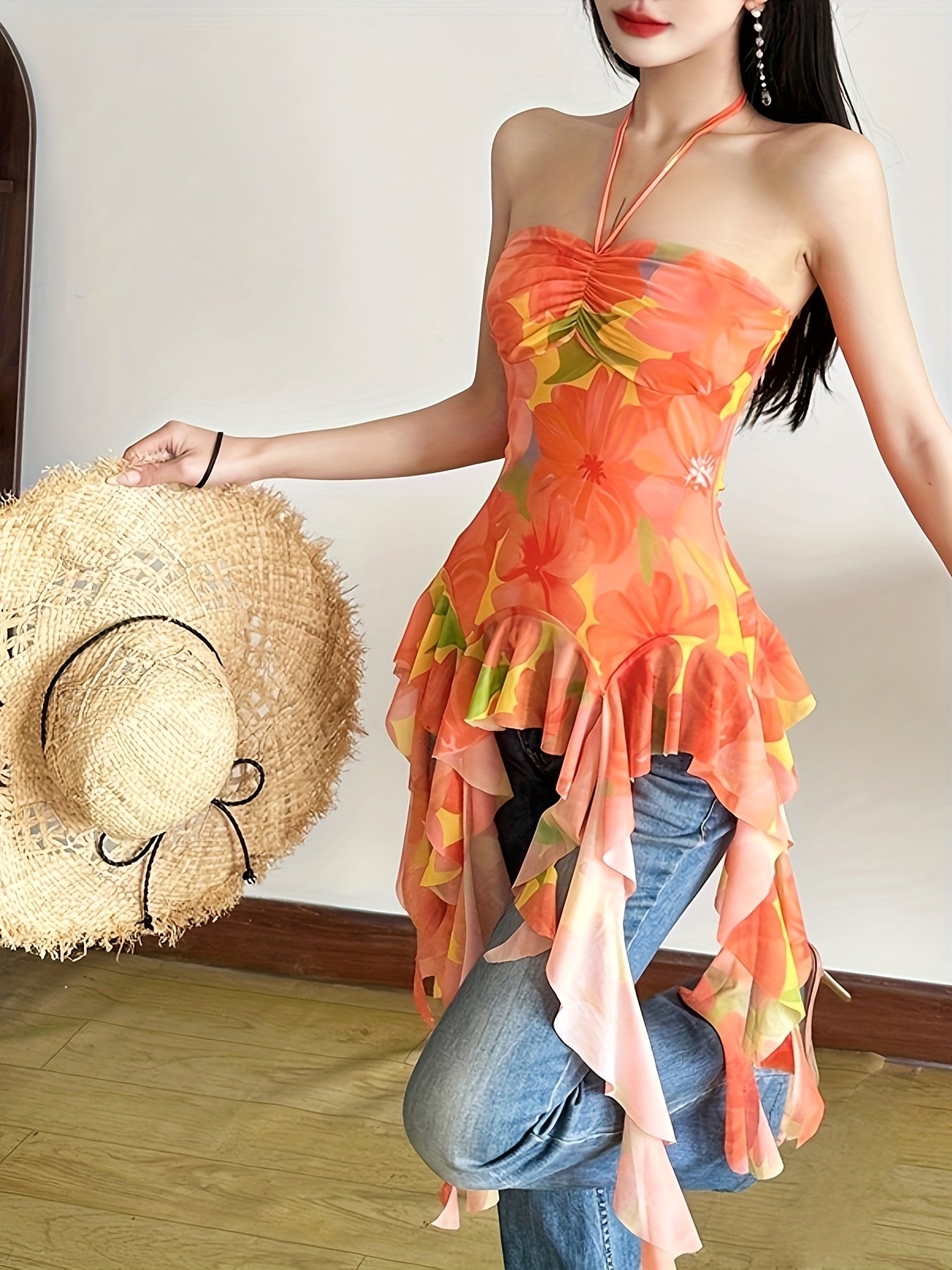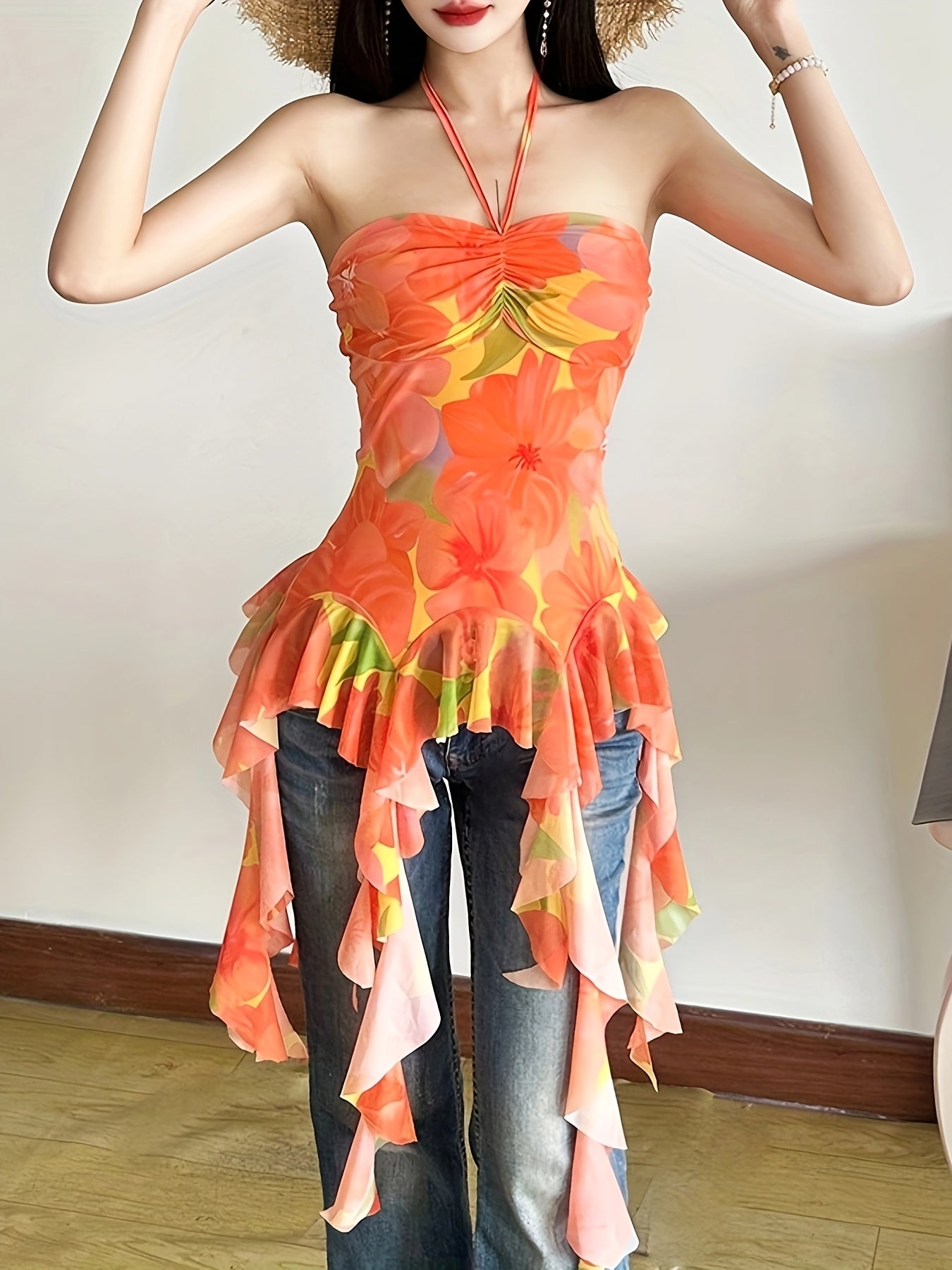 Whether you're lounging by the pool or strolling along the beach, this versatile halter neck beach top is an essential addition to your summer clothing collection. Experience the perfect blend of style, comfort, and practicality with our floral print design that complements any vacation look. Embrace the sunny days ahead with this delightful piece that promises to keep you looking chic and feeling comfortable all season long.