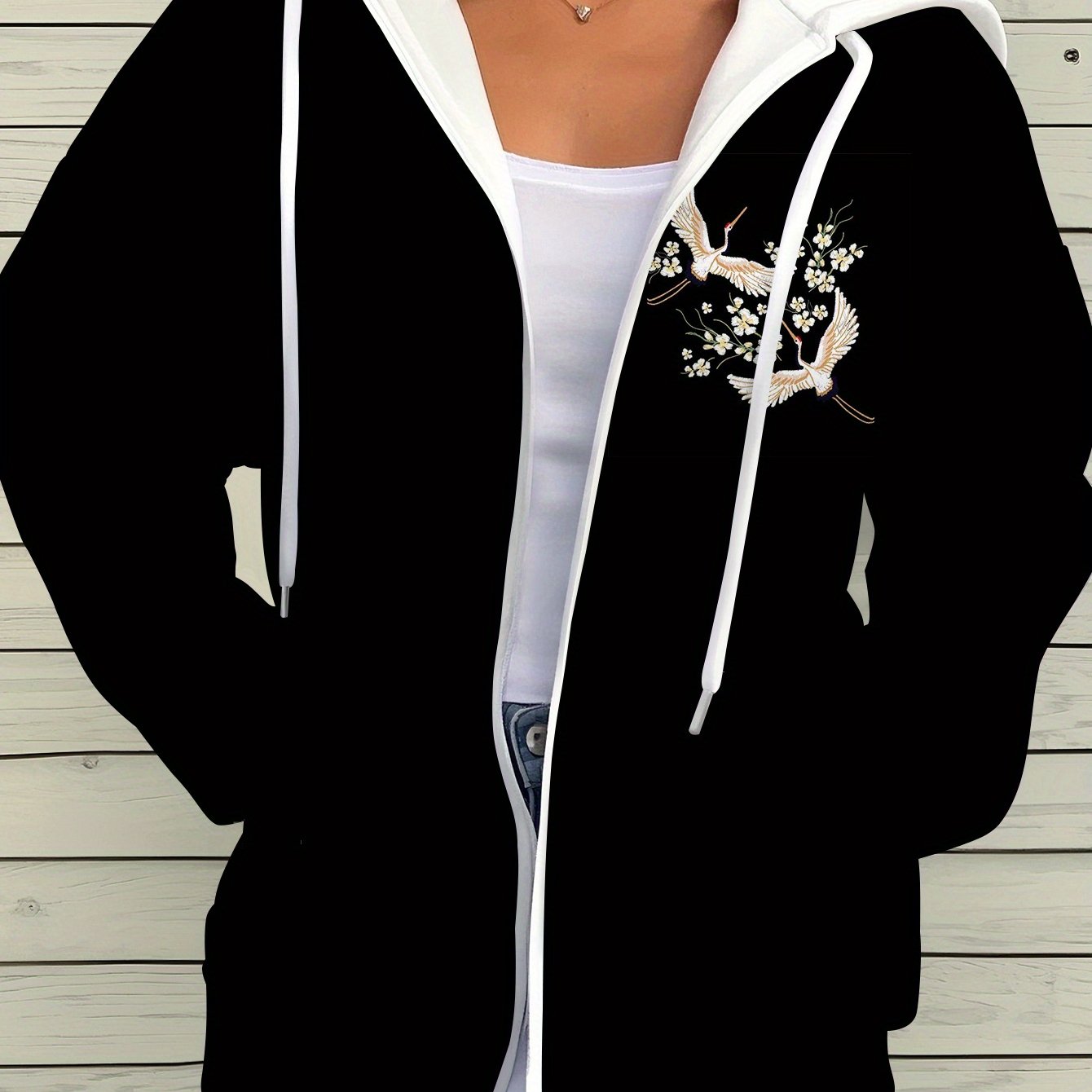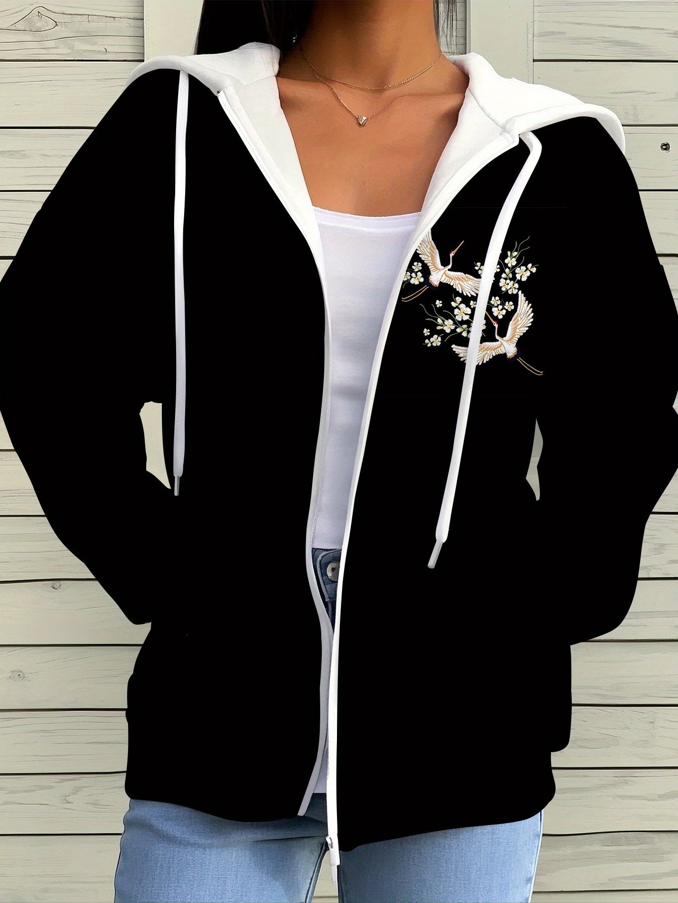 Women's Black Zip-Up Hooded Jacket - Elegant Fall/Winter Outerwear