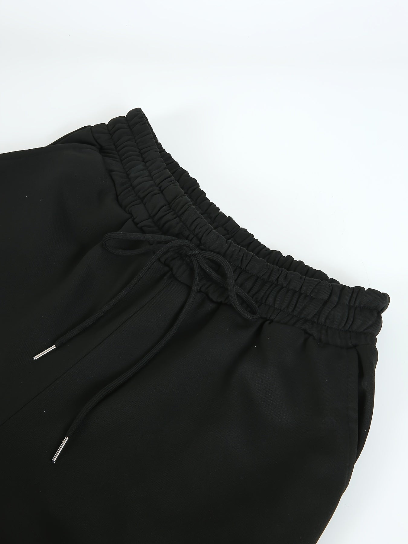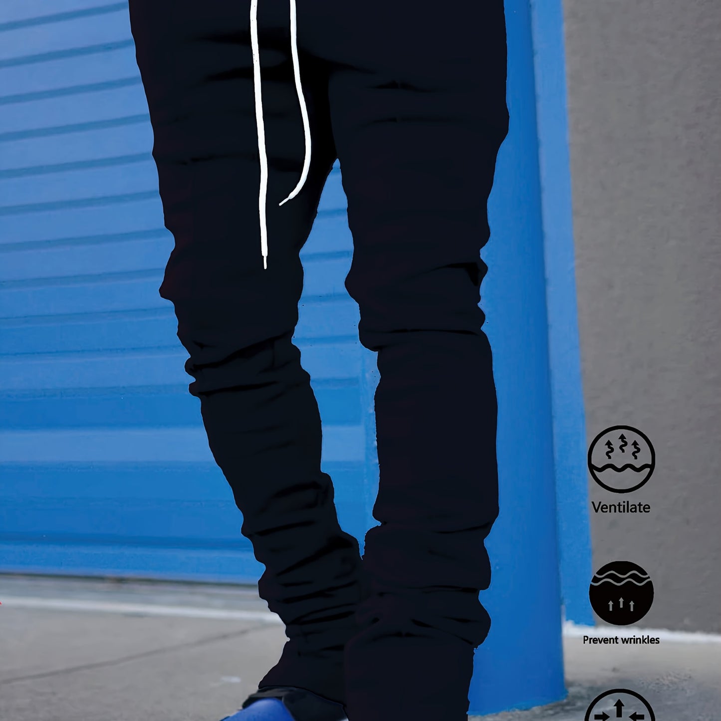 Men's Black Casual Jogger Pants with Red Accents - Regular Fit Super Long Length, All-Season Comfort, Machine Washable, Functional Pockets for Gym, Running & Casual Attire, Jogging Pants, Gym Wear, Sporty Style, Durable Construction, Athletic Wear, Fitnes