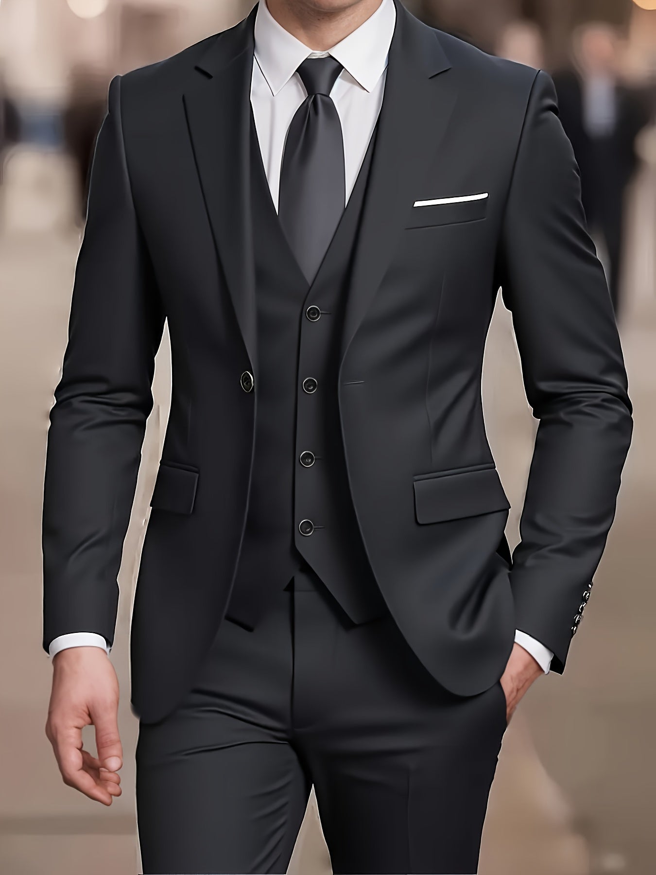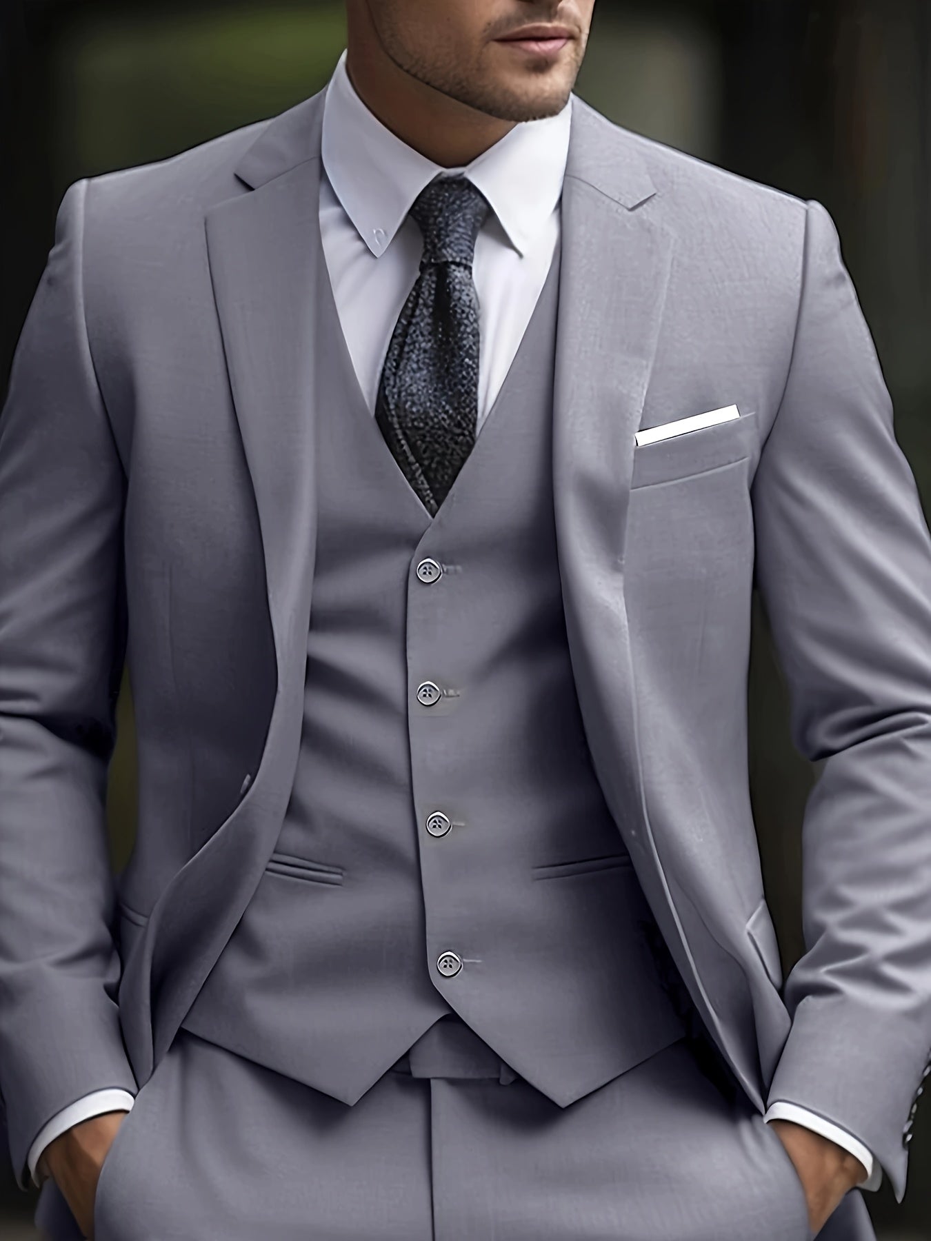 Our Stylish Men's 2pcs Suit Set is perfect for any formal occasion, whether it's a wedding, business meeting, or an upscale event. The solid color design ensures versatility while the quality polyester fabric ensures durability and maintains a sharp look. Impress everyone around you with this must-have men's suit that perfectly blends style, comfort, and practicality.