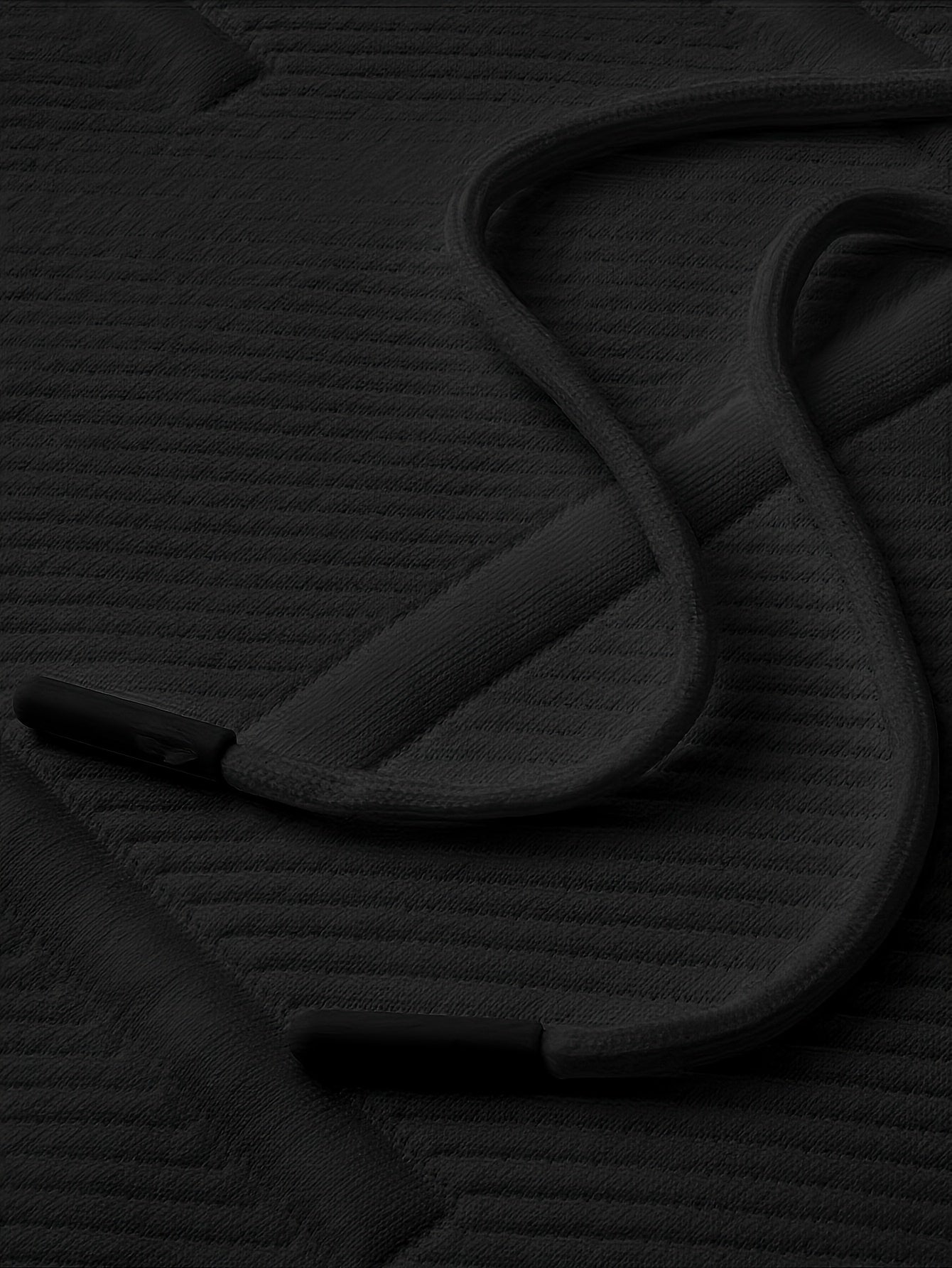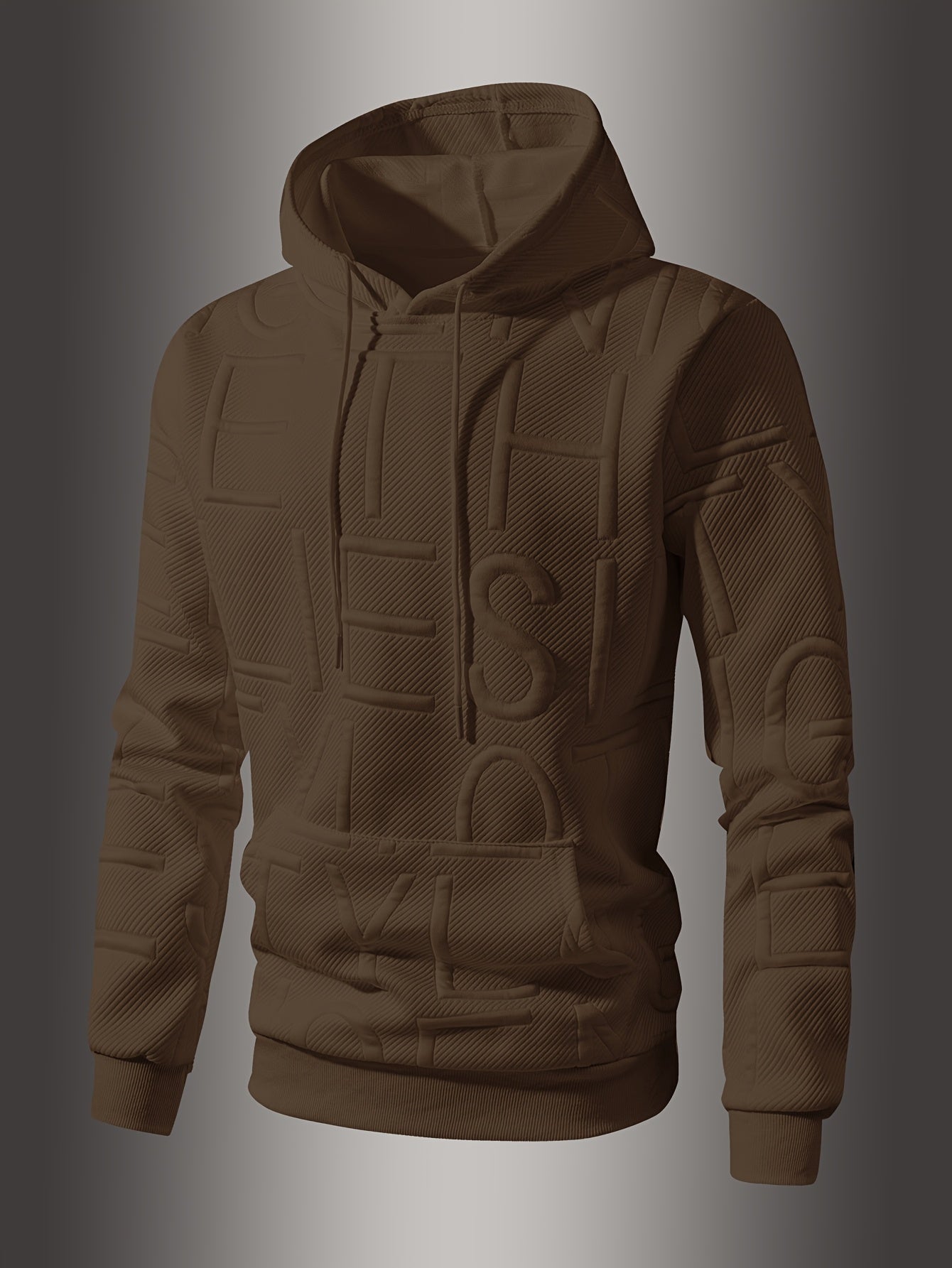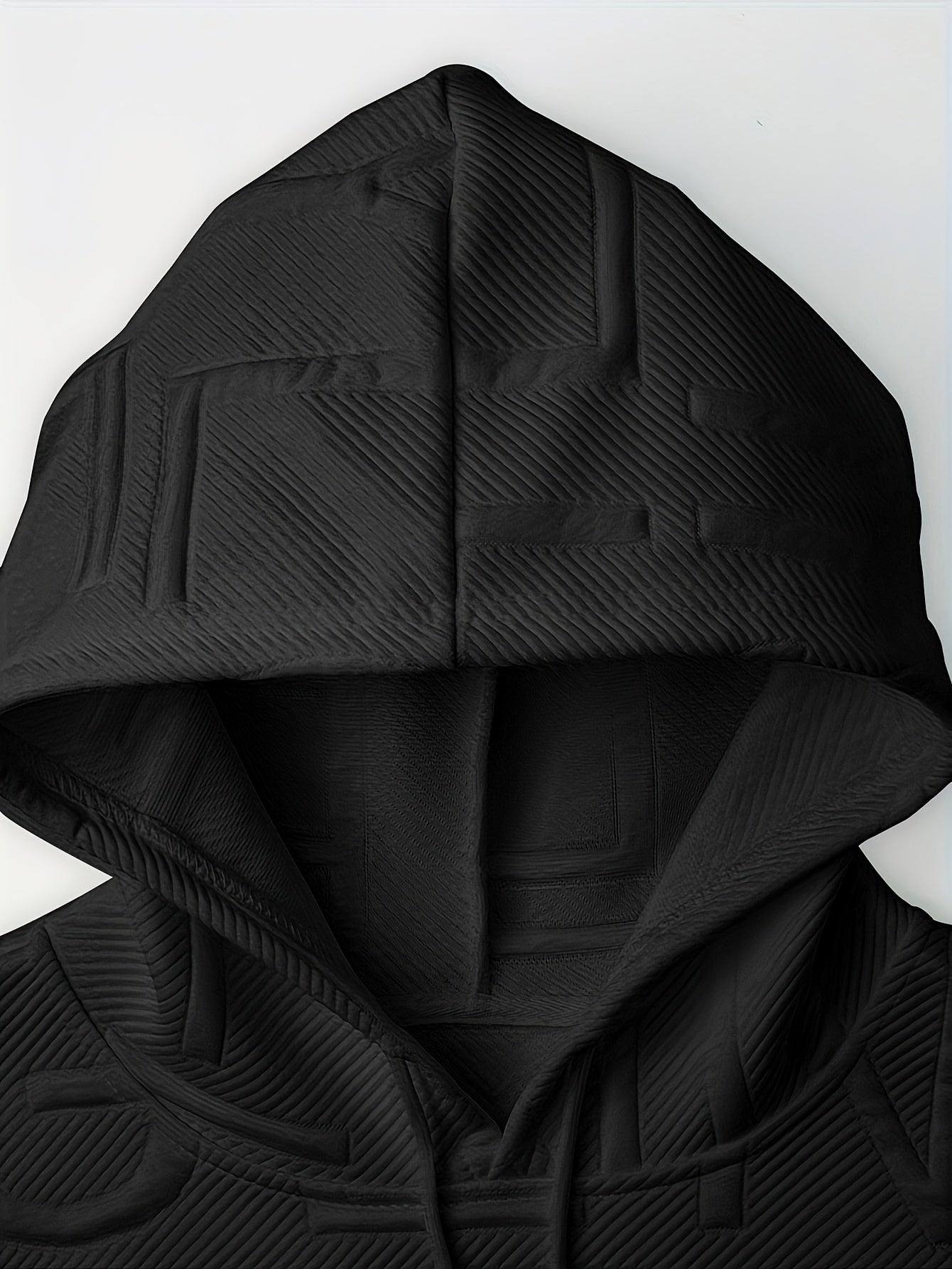 Men's Casual Black Hooded Sweatshirt with Textured Letter Design - Soft Polyester Blend, Long Sleeve, Drawstring Hood with Kangaroo Pocket, Ideal for Spring/Fall, Oversized Hoodie