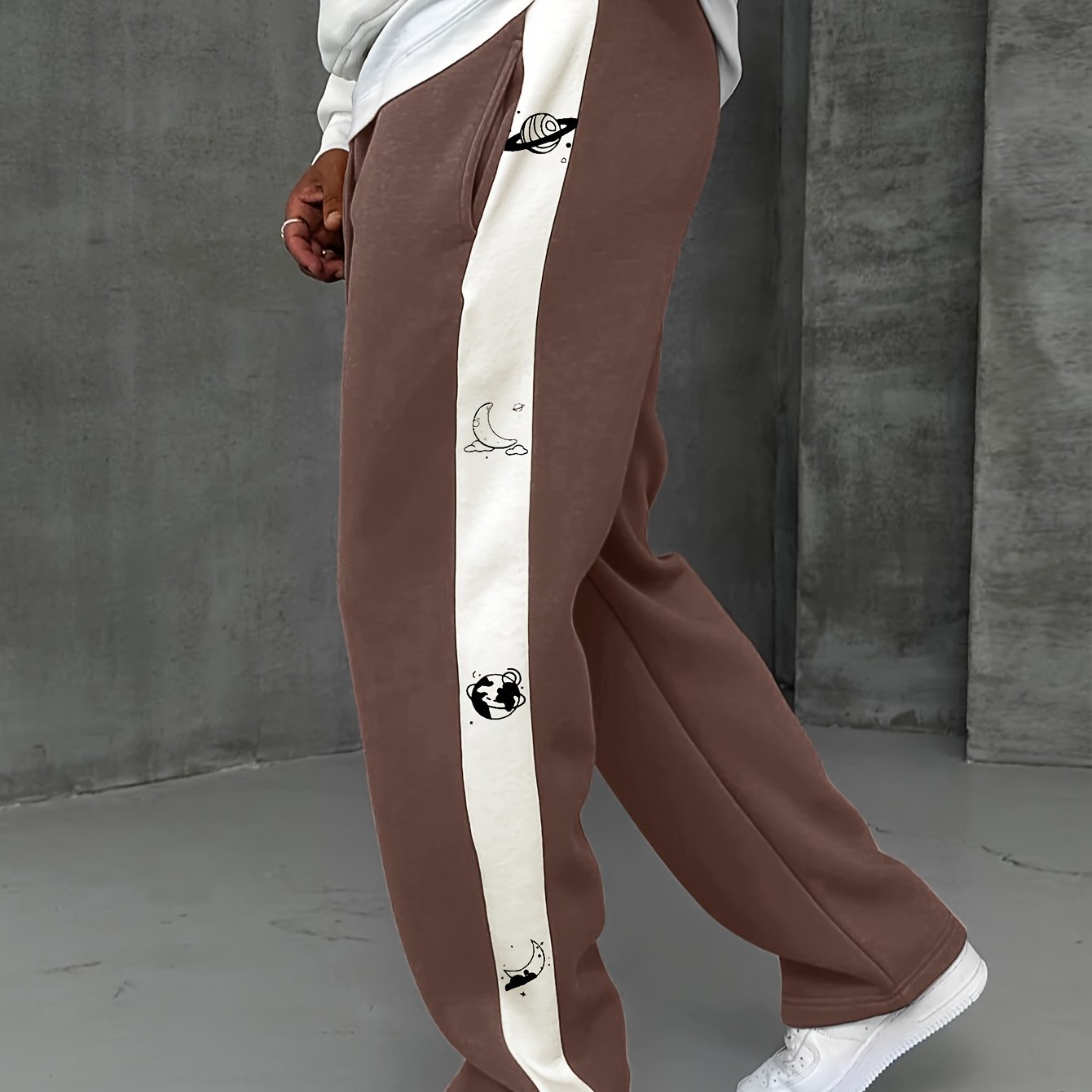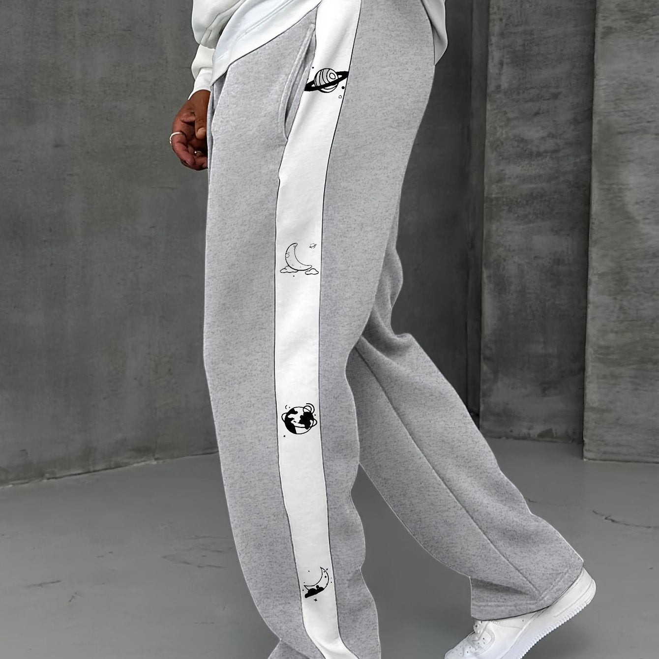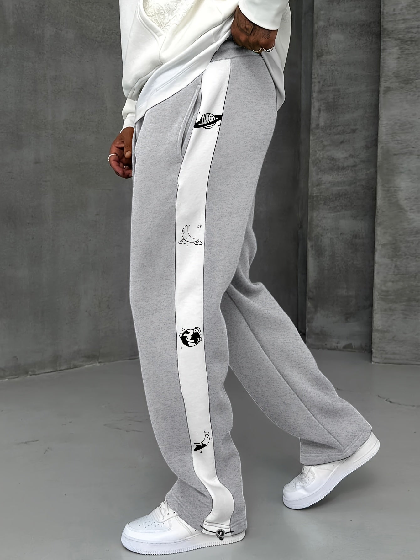 Men's Casual Jogger Pants with Adjustable Drawstring Waist & Cuffed Ankles - Heather Grey with White Letter Pattern, Straight-Leg Design, Side Pockets, Machine Washable for All-Season Comfort, Jogging Pants, Leisure Clothing, Unique Graphic Pants, Durable