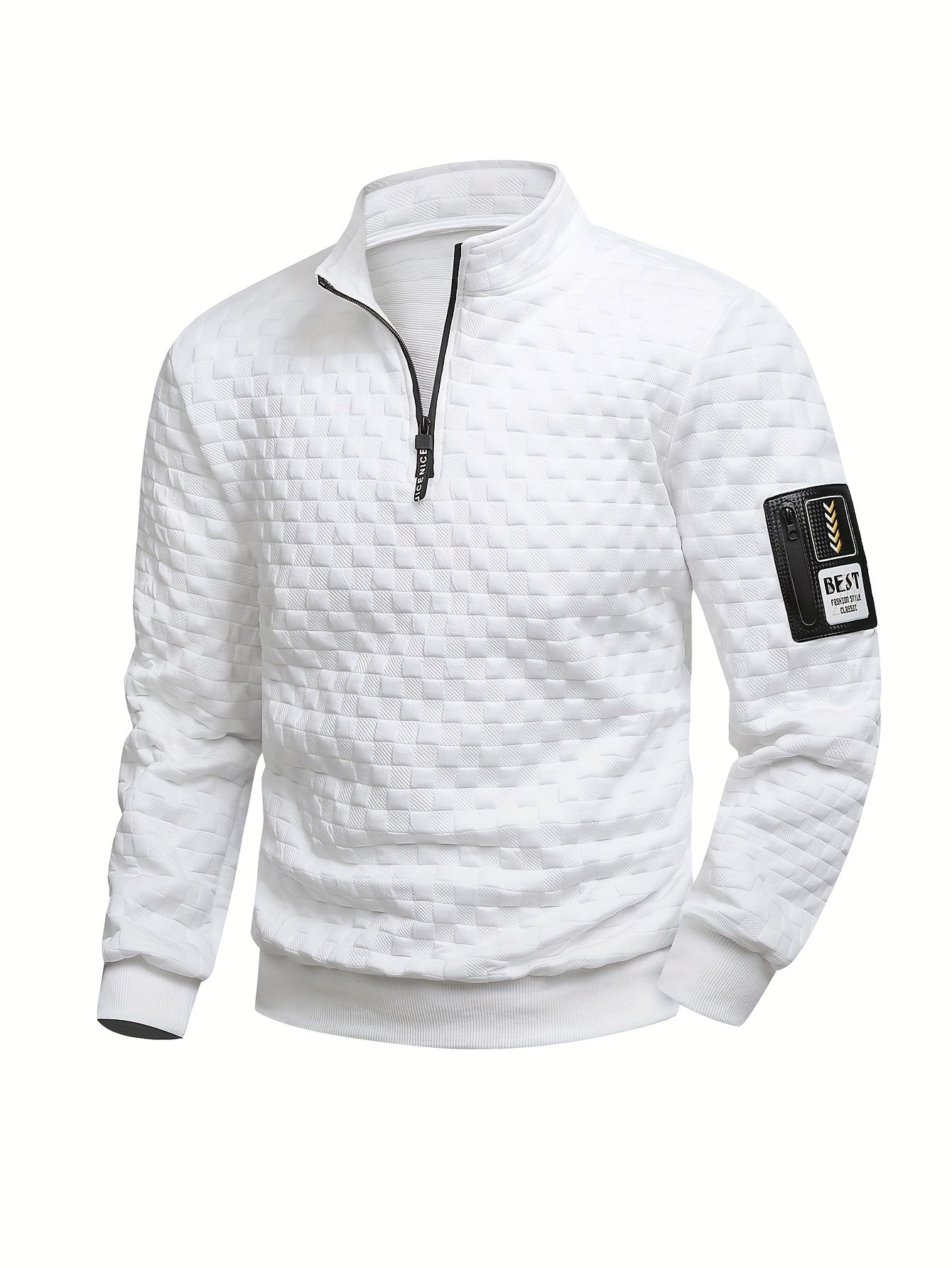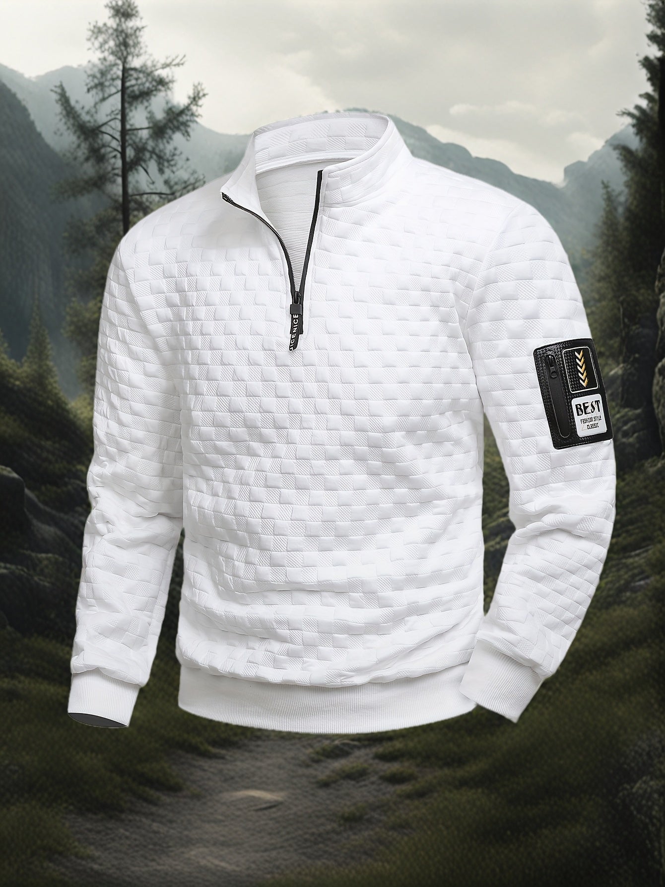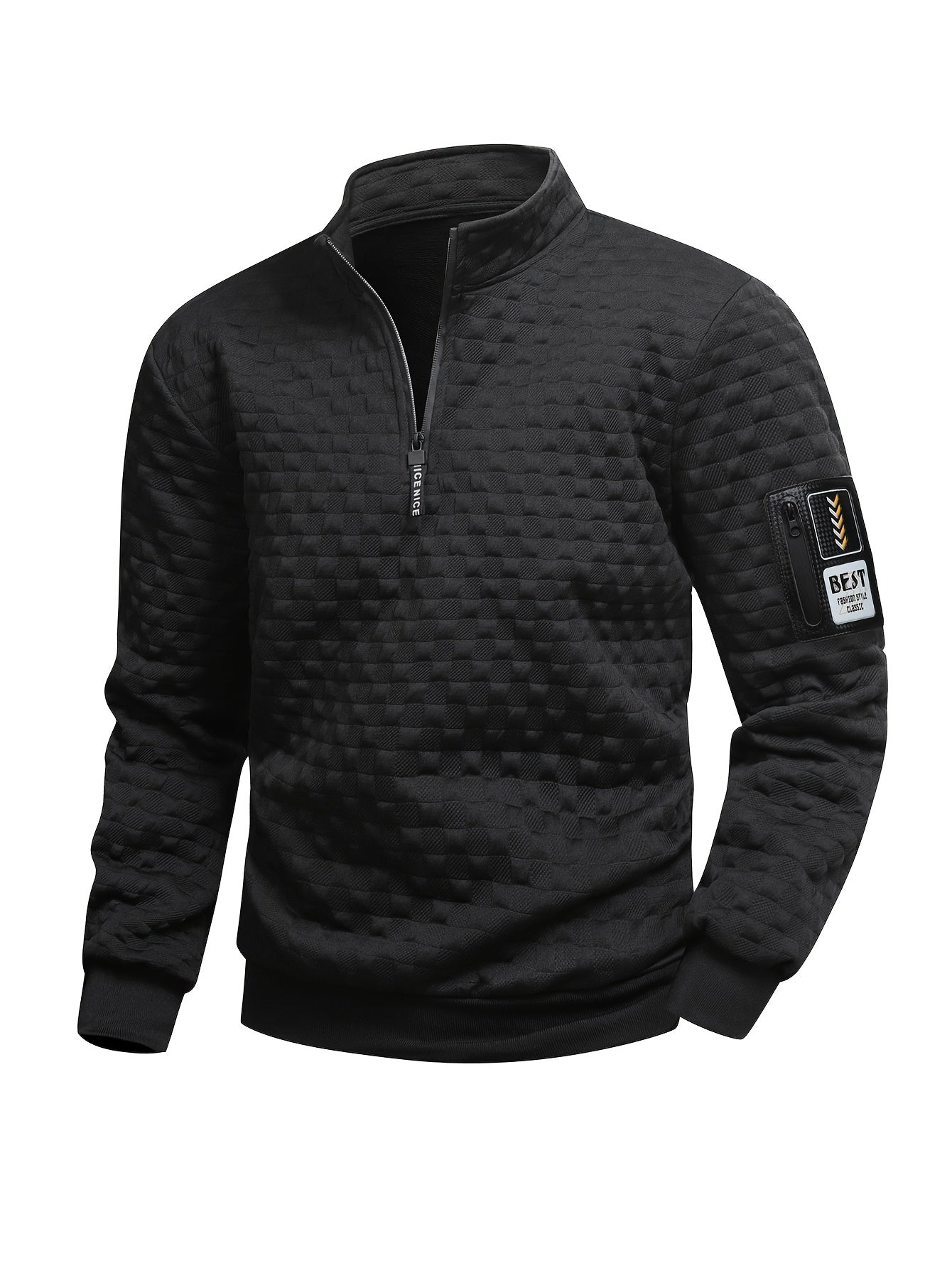 Men'S Casual Long Sleeve Sweatshirt - Loose Fit Round Neck, Solid Black with Subtle Logo Detail, Breathable Knit Fabric for Outdoor Fitness & Casual Attire
