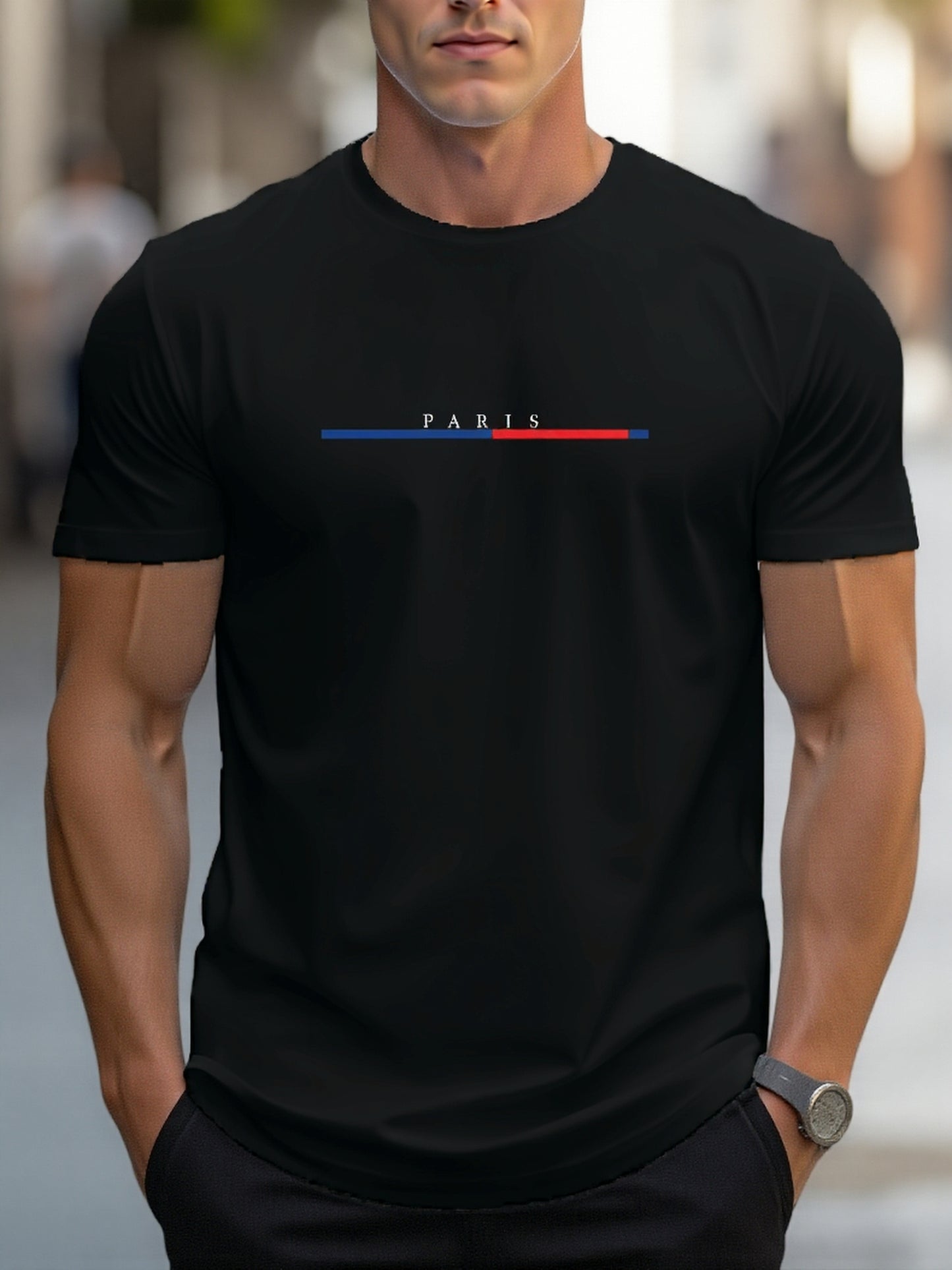 MBDMBD Men's Paris Flag Print T-Shirt - Casual Crew Neck Style