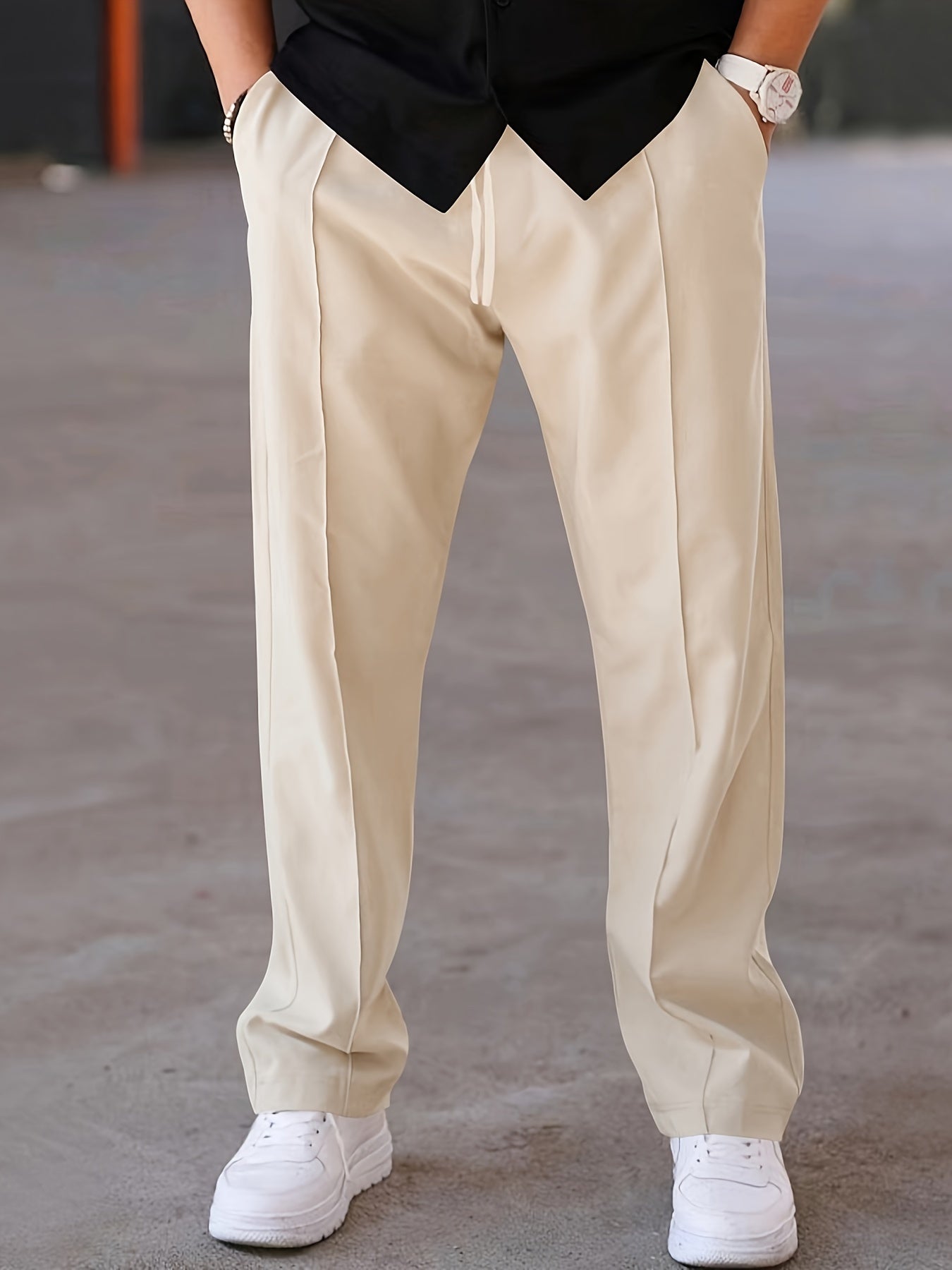 Men's Formal-casual Pants - Navy Blue Business & Everyday Trousers, Adjustable Drawstring Waist, All-Season Office & Leisure Wear for Men, Versatile Trousers, Regular Fit, Comfortable Material, Casual Trousers, Professional Attire