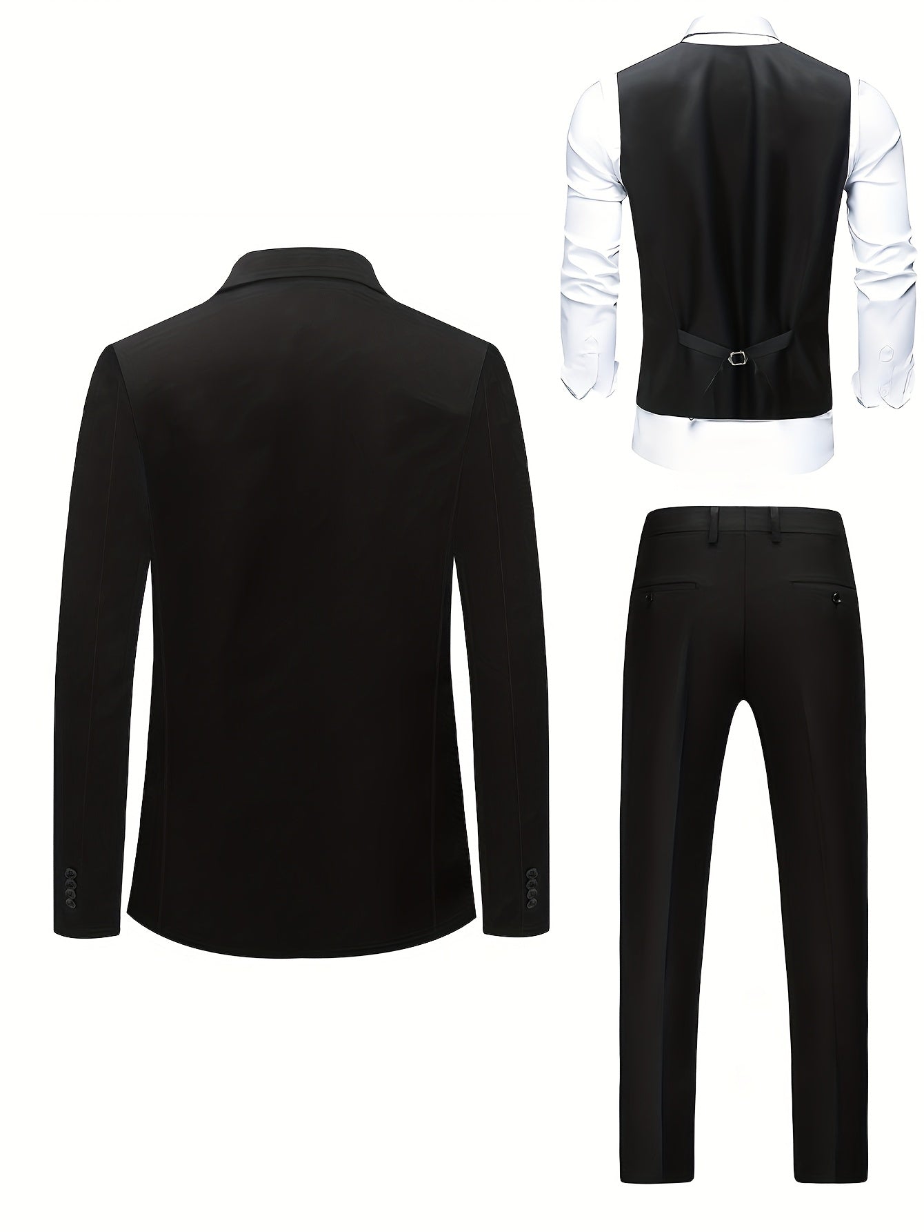 Discover the exquisite elegance of our Men’s Light Blue Three-Piece Suit Set, perfect for both weddings and business occasions. Made with high-quality polyester, this suit exudes style and sophistication while ensuring comfort and durability. The set includes a vest, shirt, and pants, making it an ideal choice for any formal event.