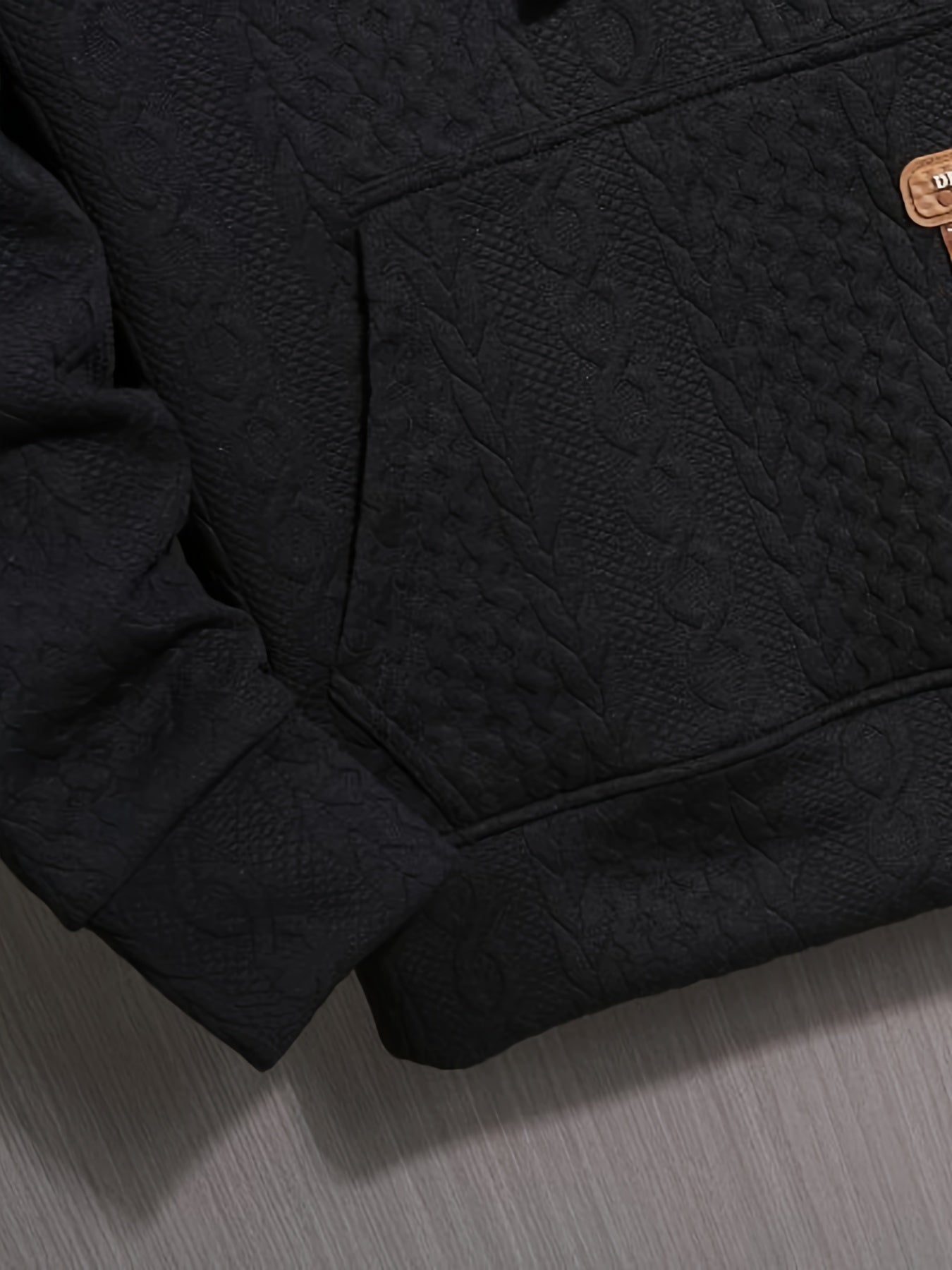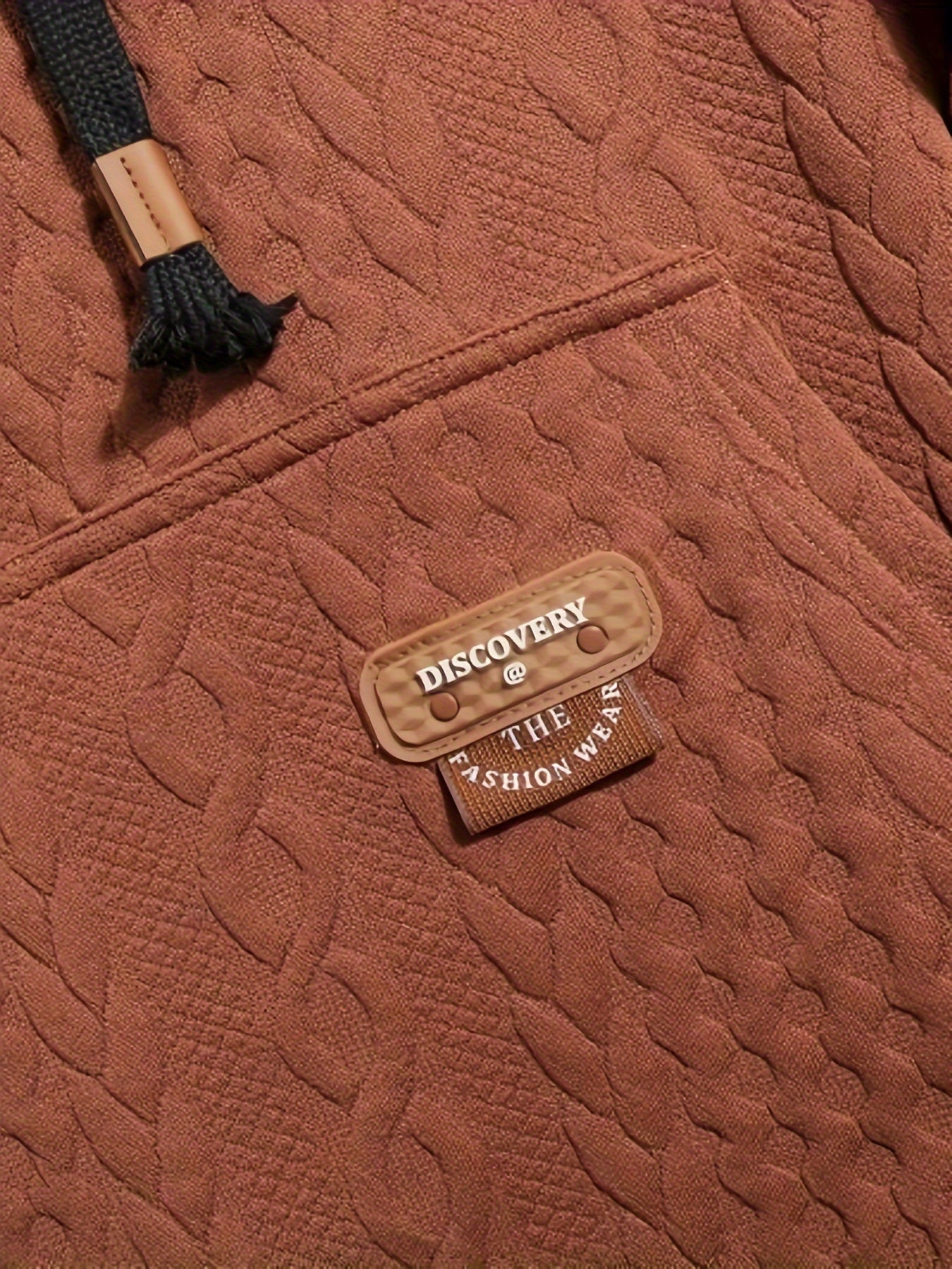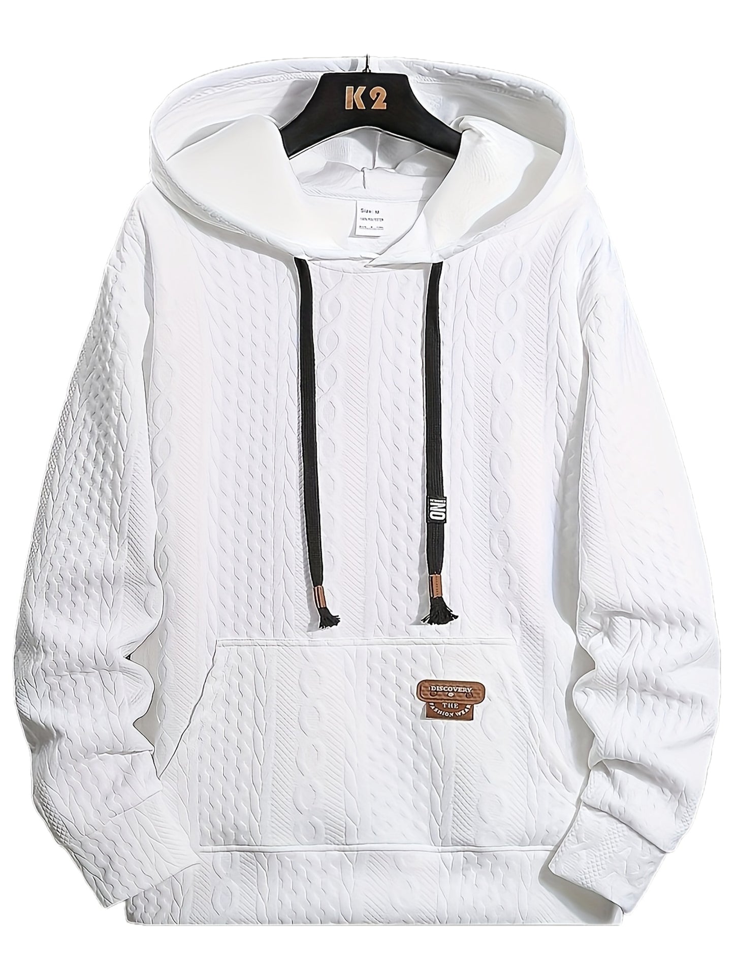 Men'S Polyester Hoodie - Solid Color, Long Sleeve, Regular Fit, Knit Fabric, 280g/m², Sports Style, Three-Dimensional Jacquard, Outdoor Fitness Wear