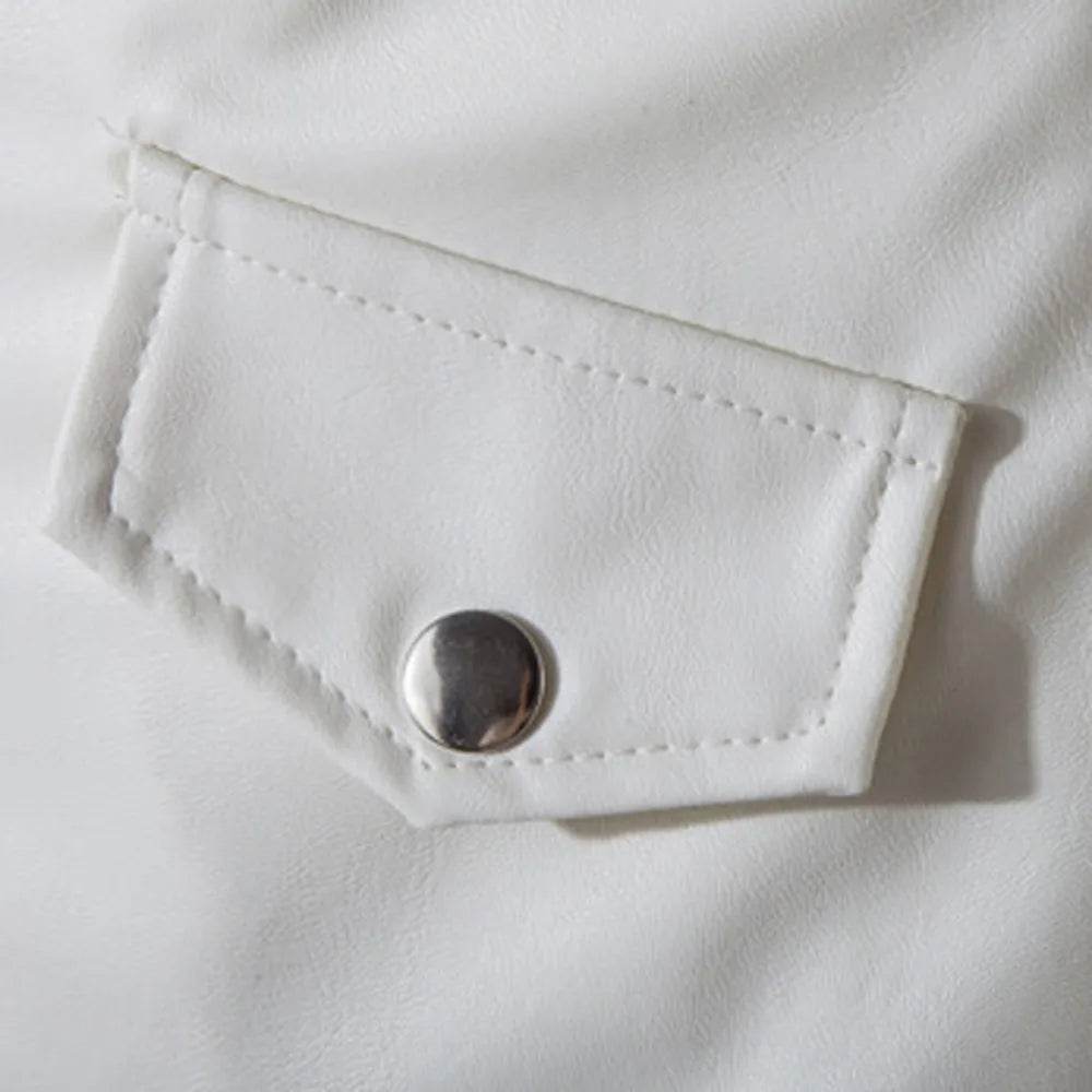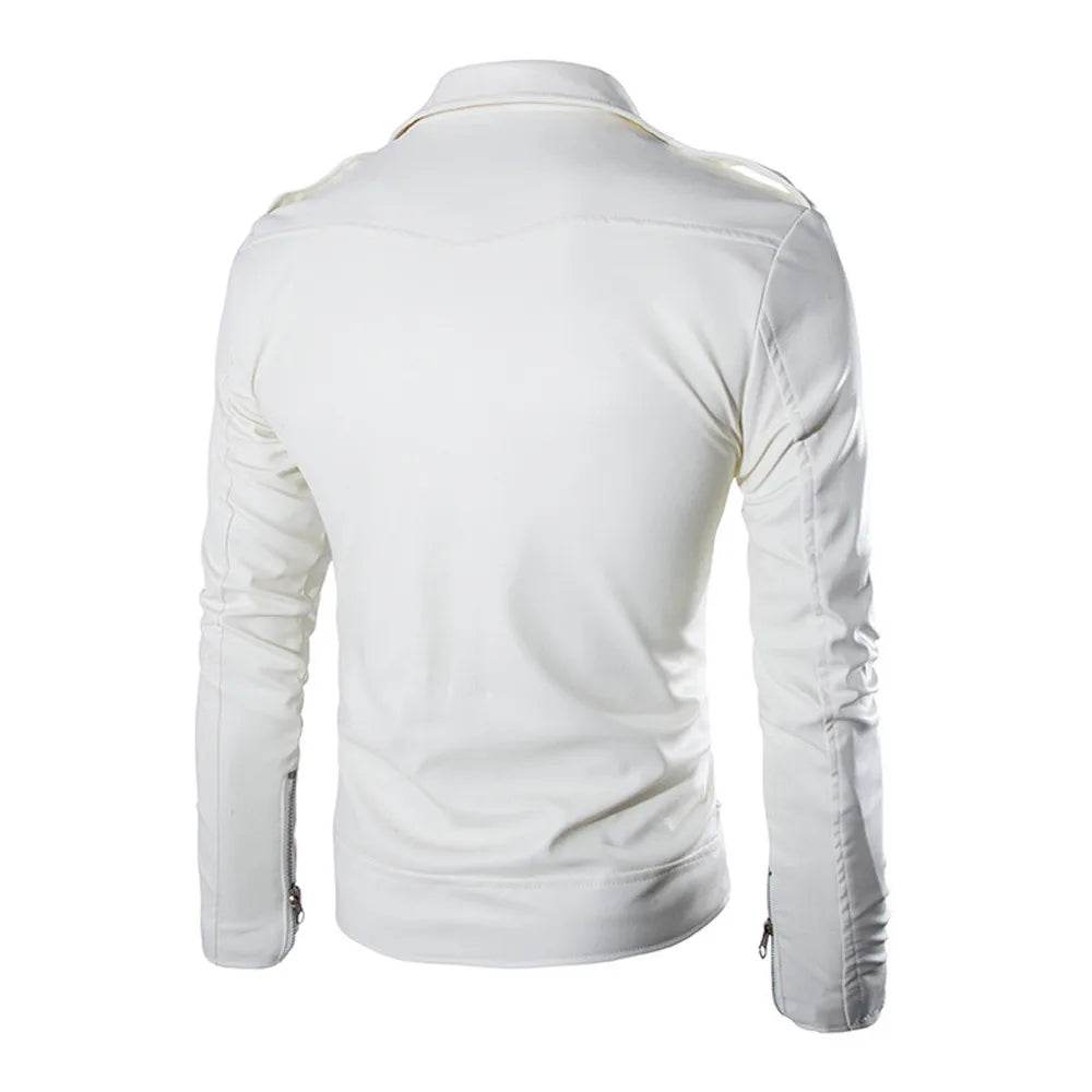 ZOMAXIUJEE Men's Buckle Zip Leather Jacket - Black & White Punk Rock Style