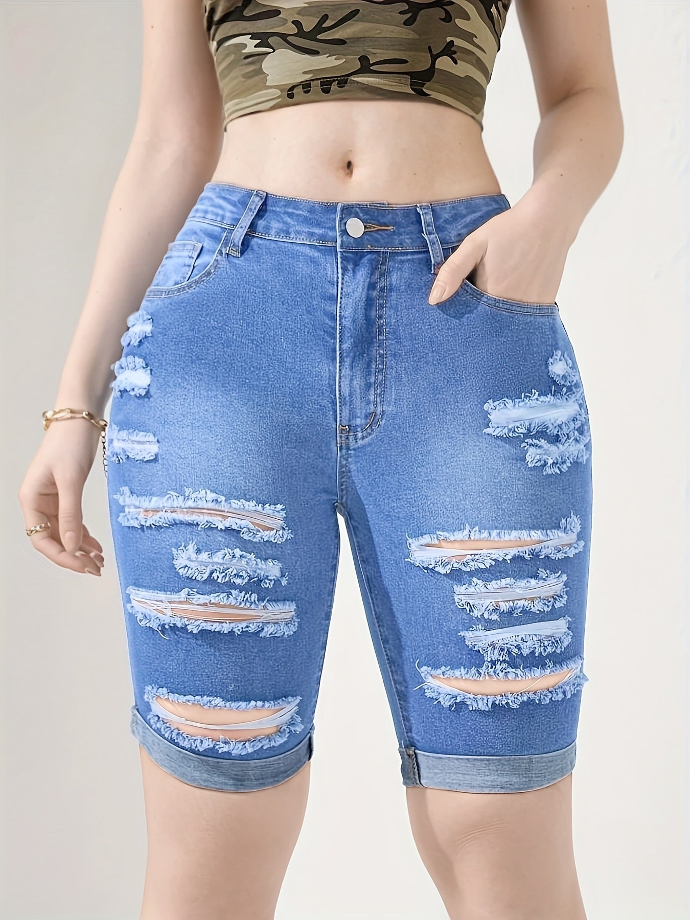2025 Trendy Women’s Ripped Jeans - Casual Bermuda Pants for Summer