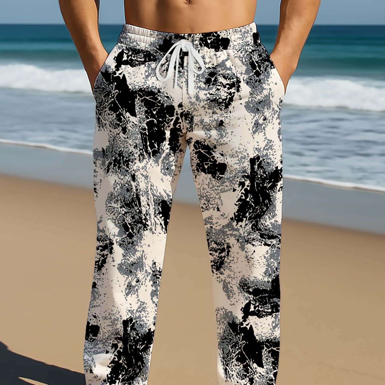 Men's Casual Ink Print Pants - Loose Fit, Non-Stretch Design
