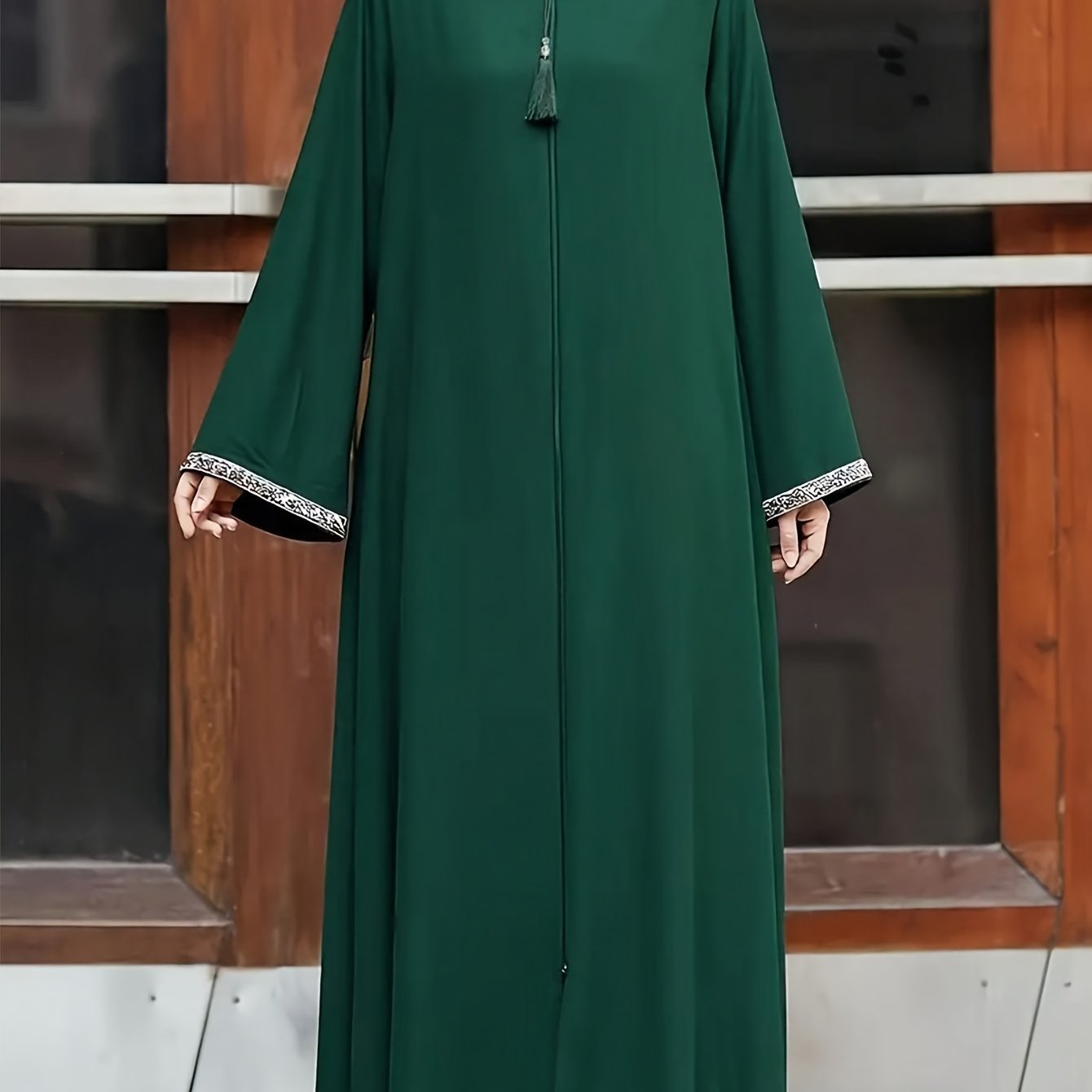 Elegant Olive Green Zip-Up Kaftan Dress - All-Season Maxi Style