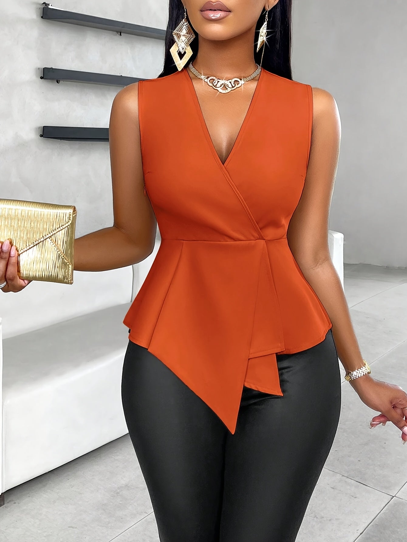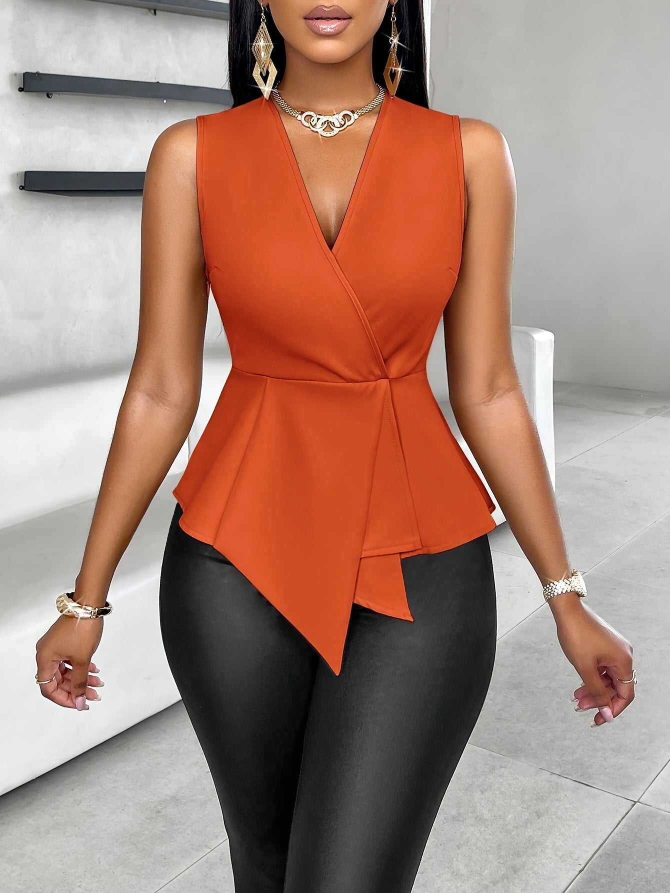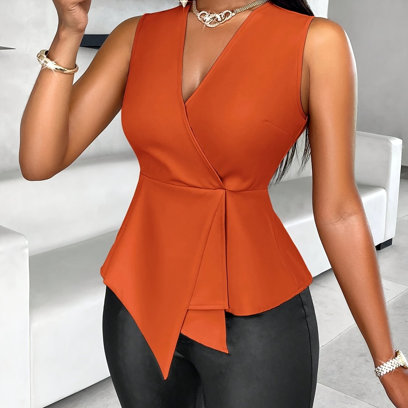 Elevate your summer wardrobe with the Elegant Women's Orange V-Neck Blouse. This versatile piece can be dressed up for special occasions or worn casually for a day out. Its lightweight fabric and stylish design make it a must-have for any fashion-forward woman's closet. Don’t miss the opportunity to bring this stunning blouse into your collection!