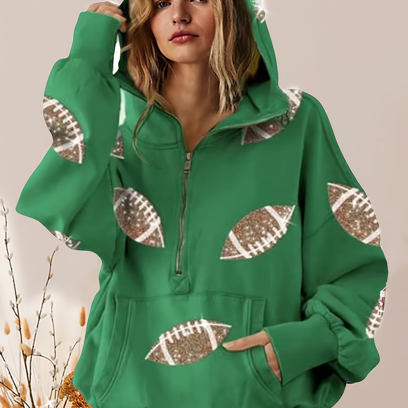 Women's Oversized Football Print Hoodie - Sequin Jersey Numbers, Green
