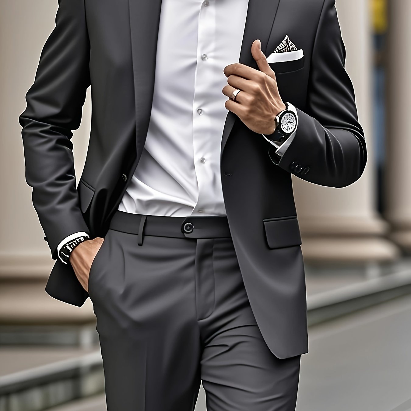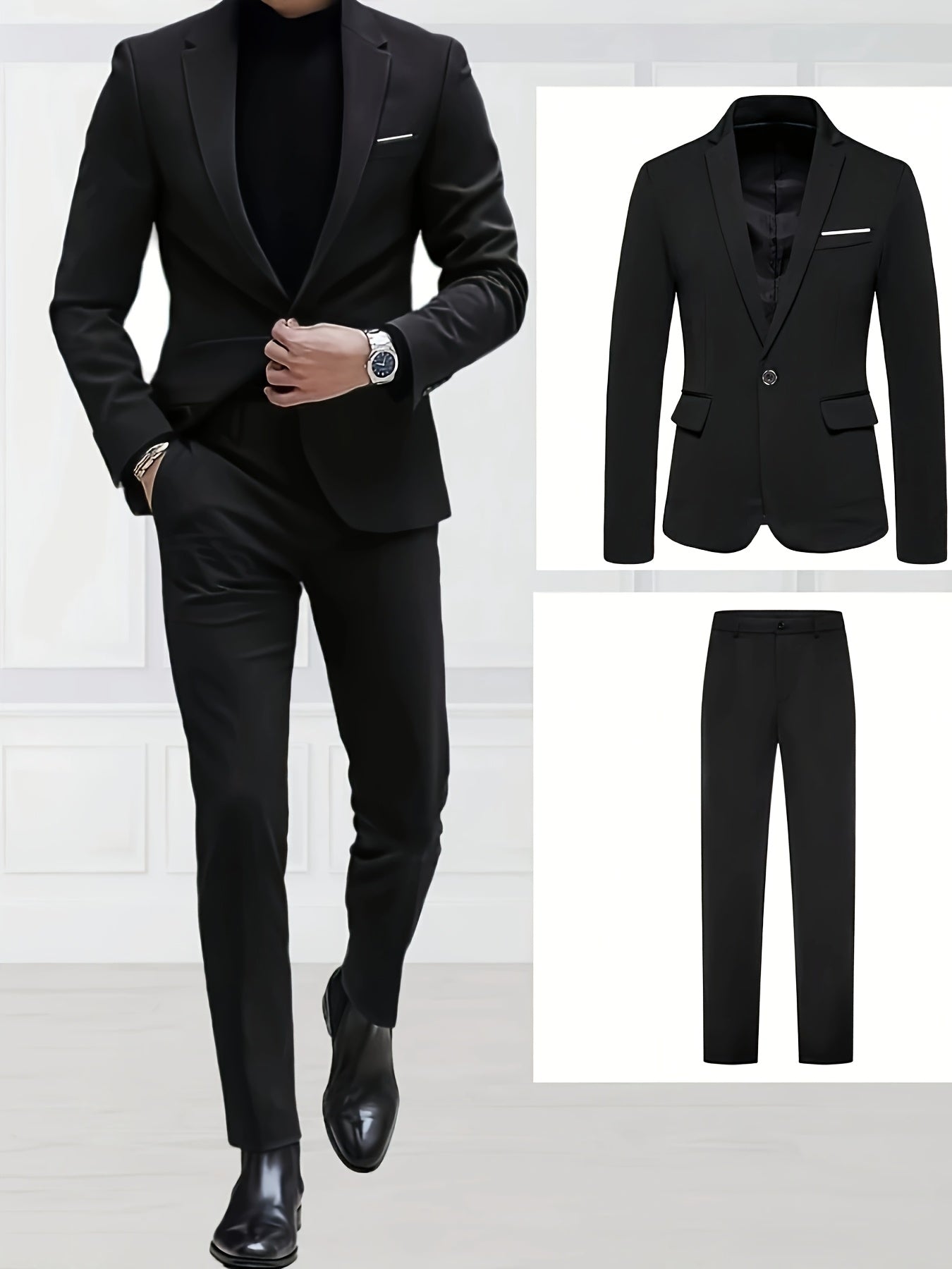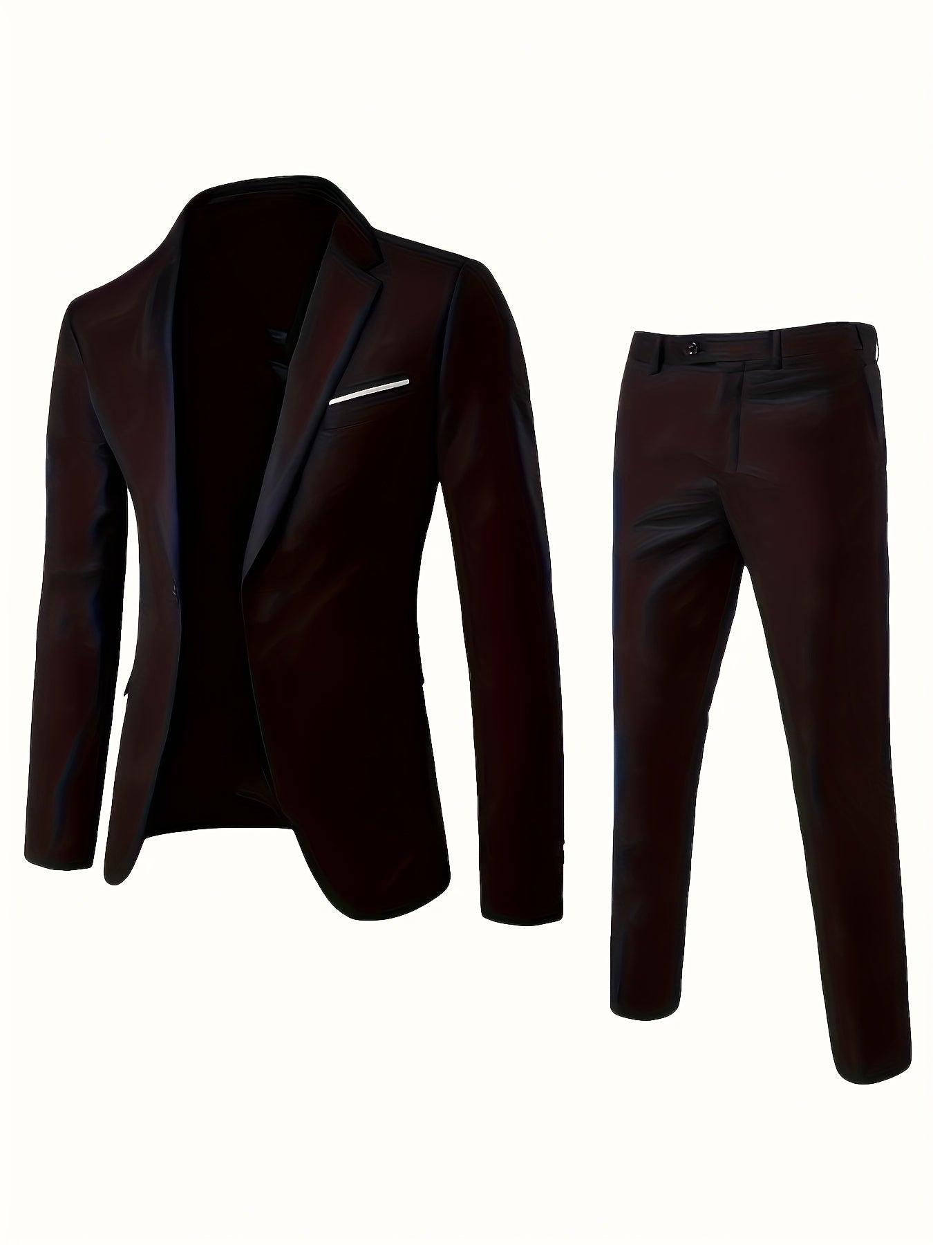 Stylish Men's 2pcs Suit Set - Jacket and Trousers for Formal Events