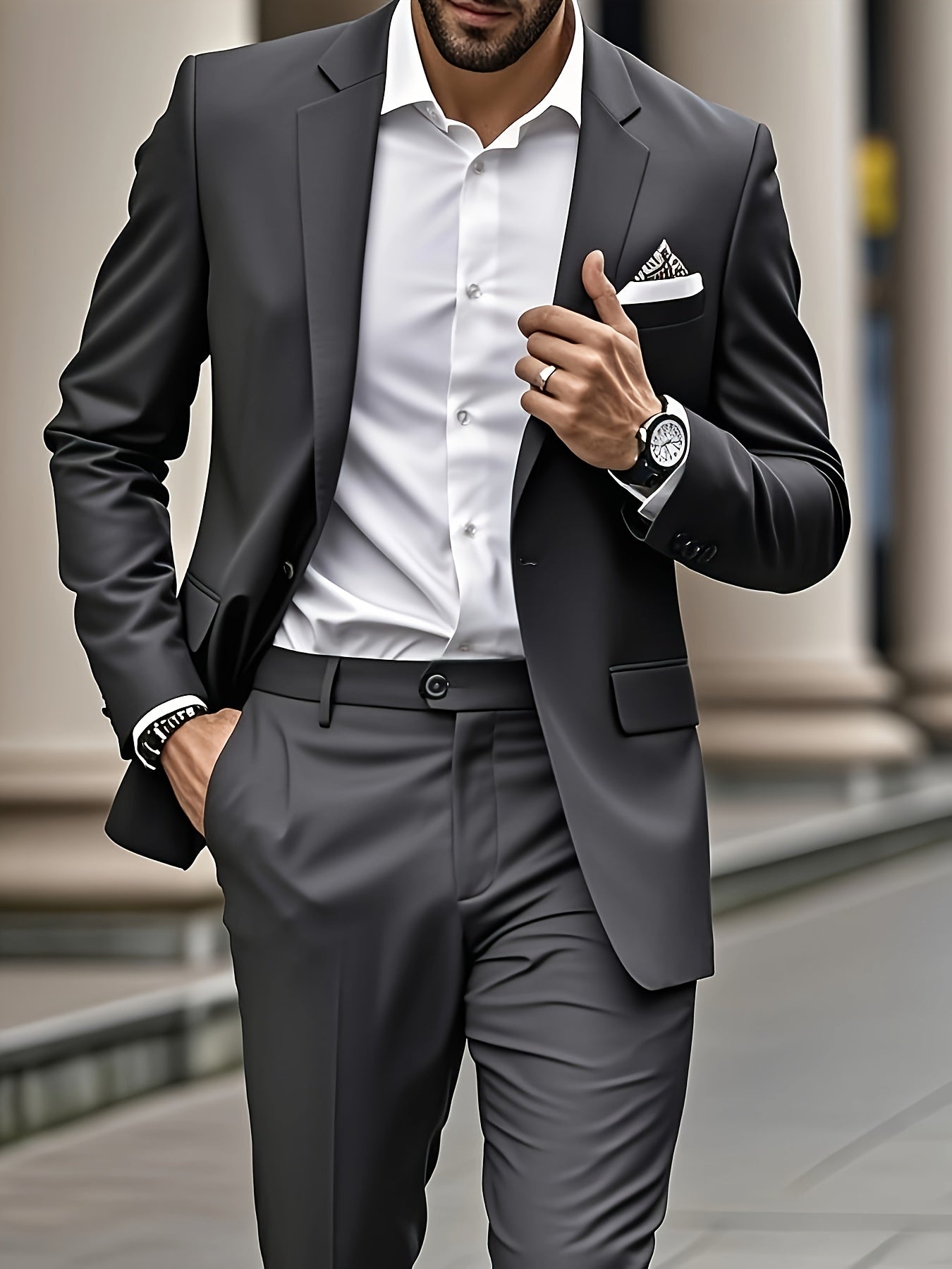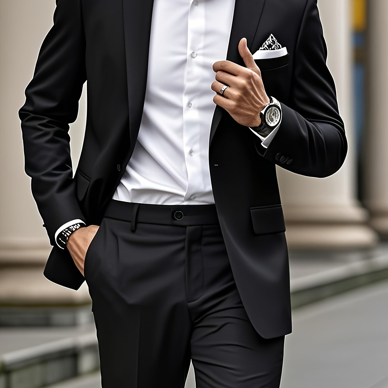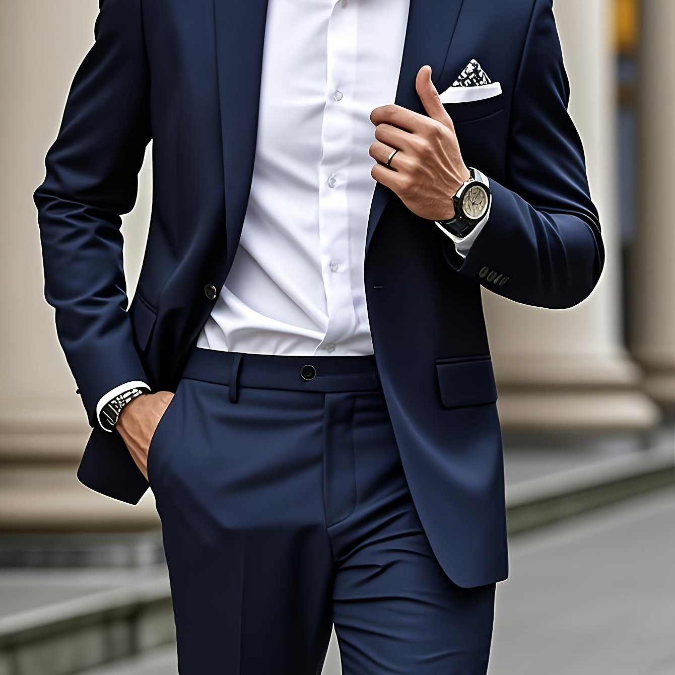 Stylish Men's 2pcs Suit Set - Jacket and Trousers for Formal Events