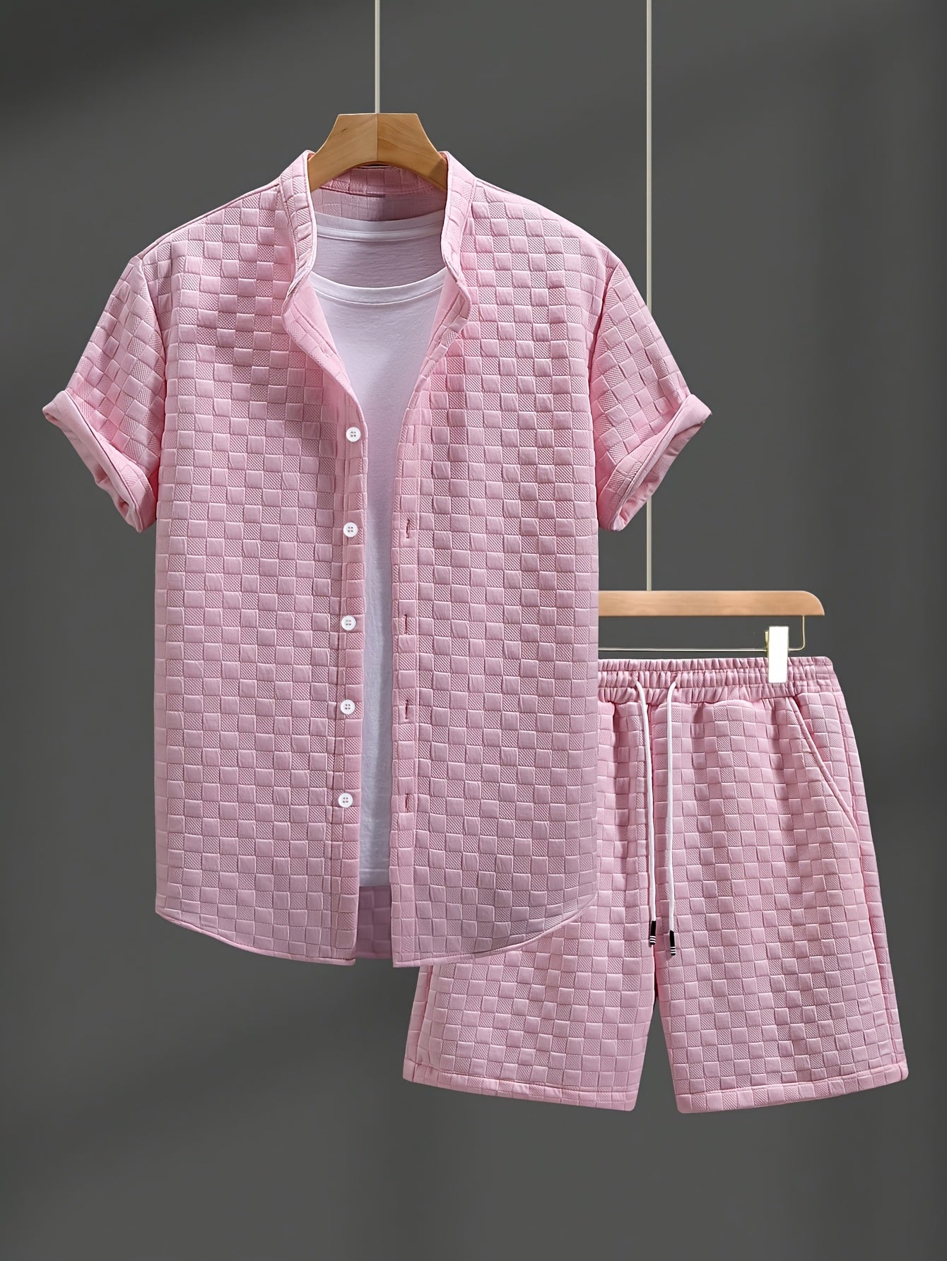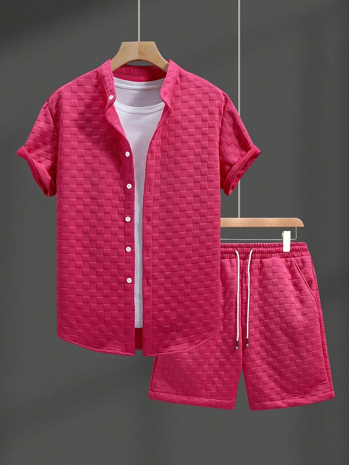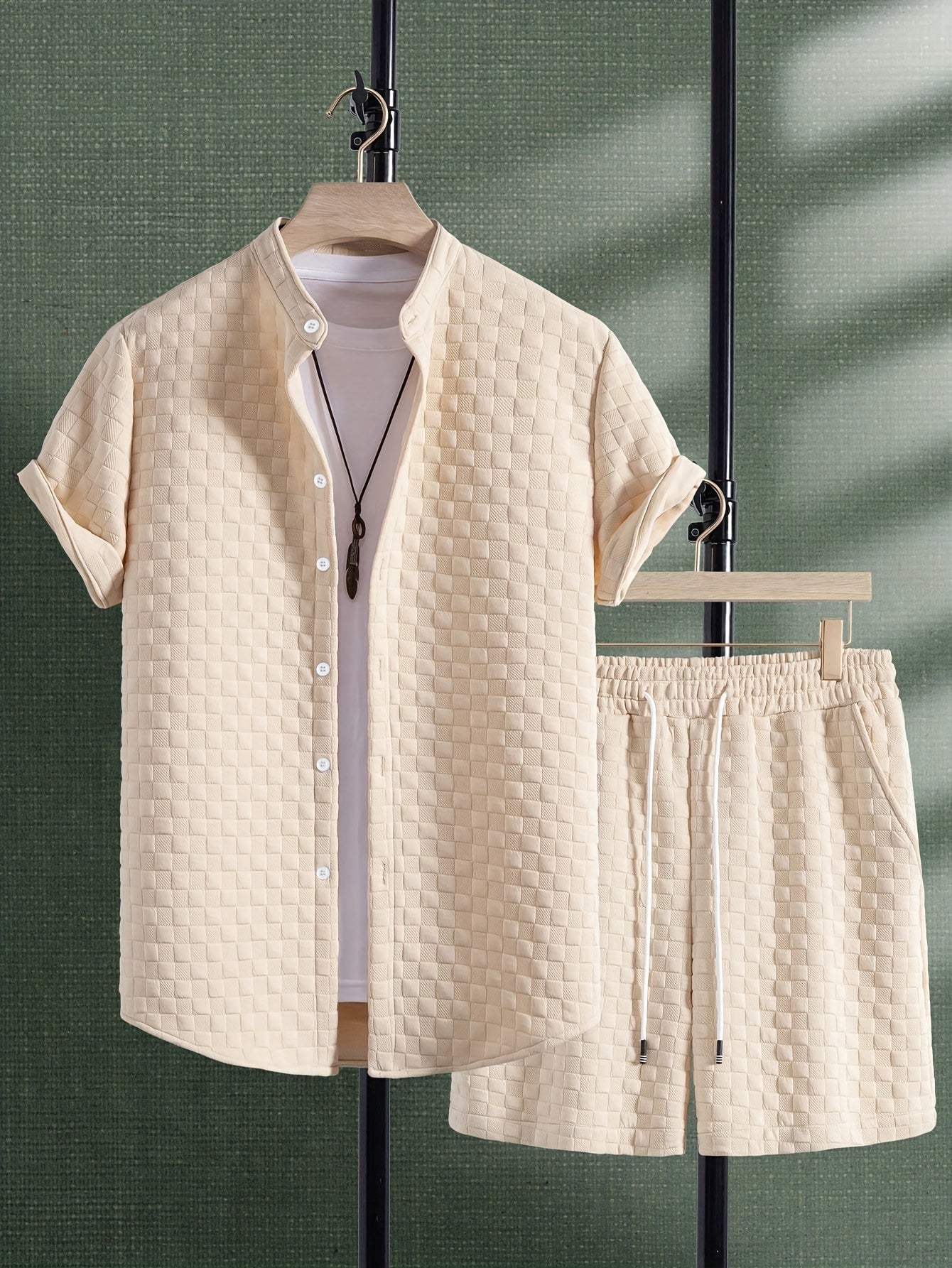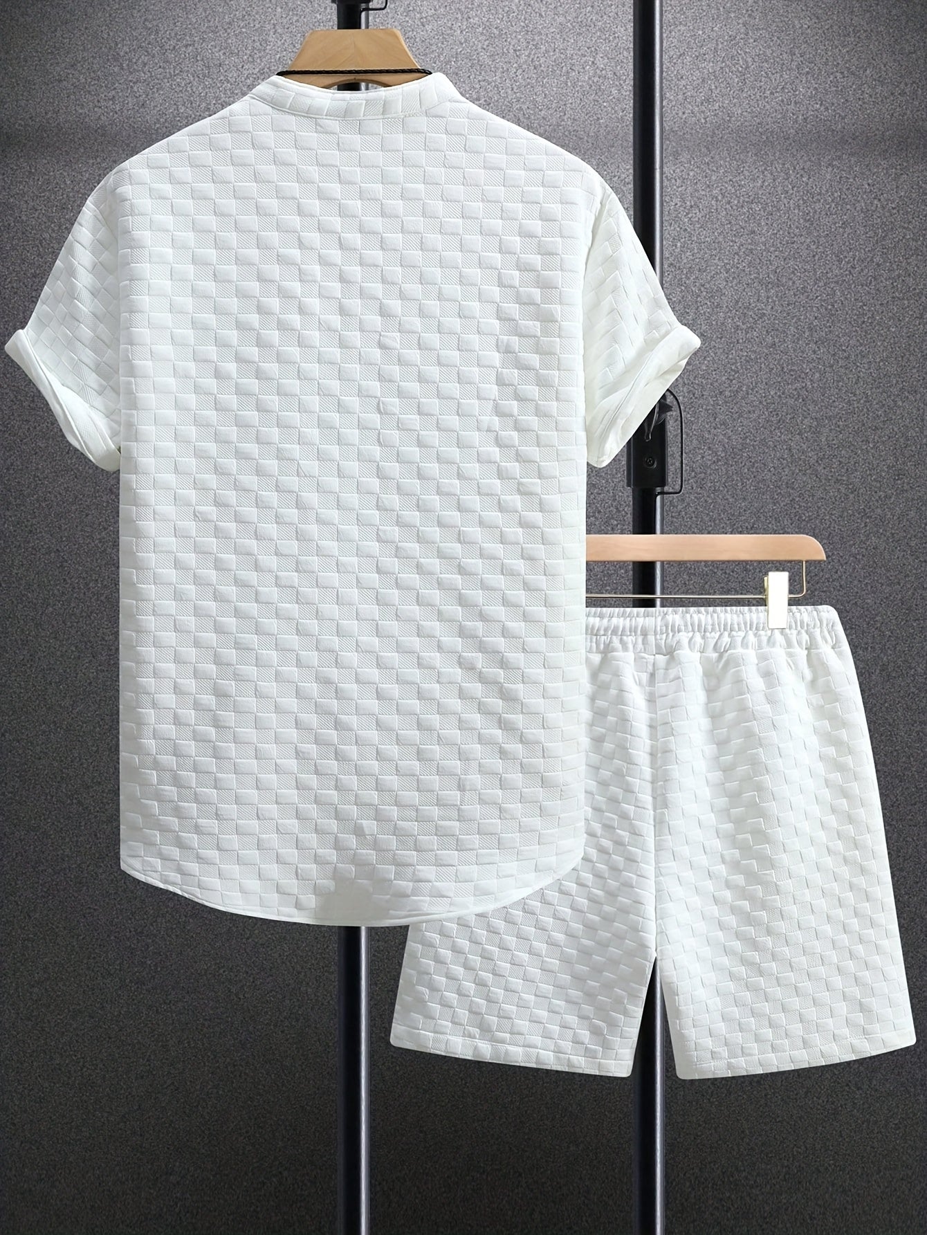 Men's Casual Athletic Set: Short Sleeve Shirt & Drawstring Shorts