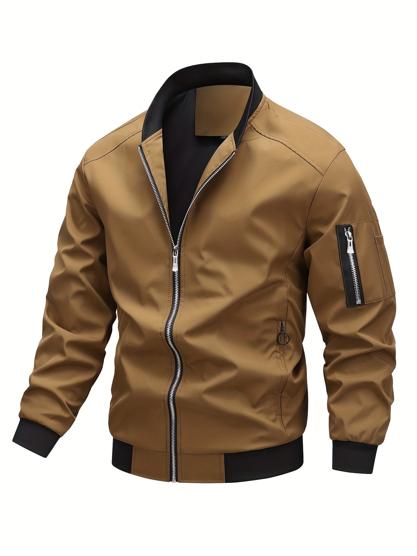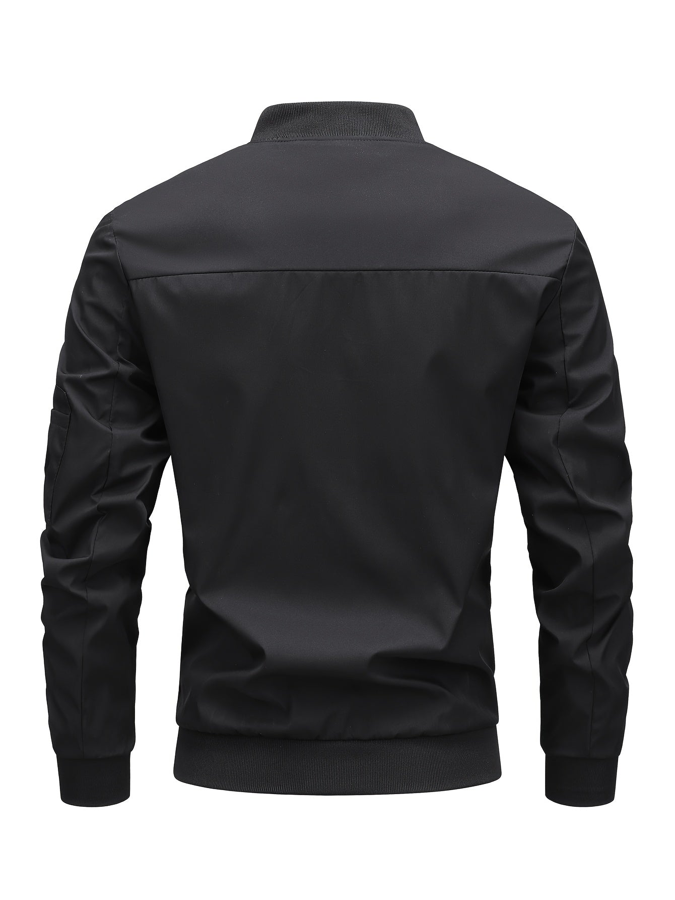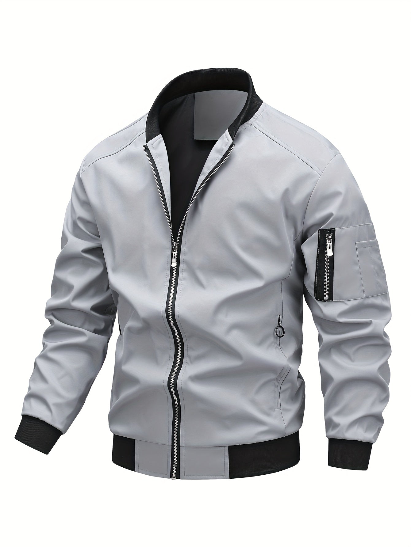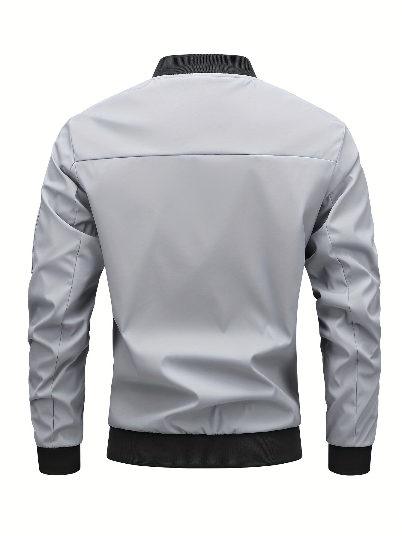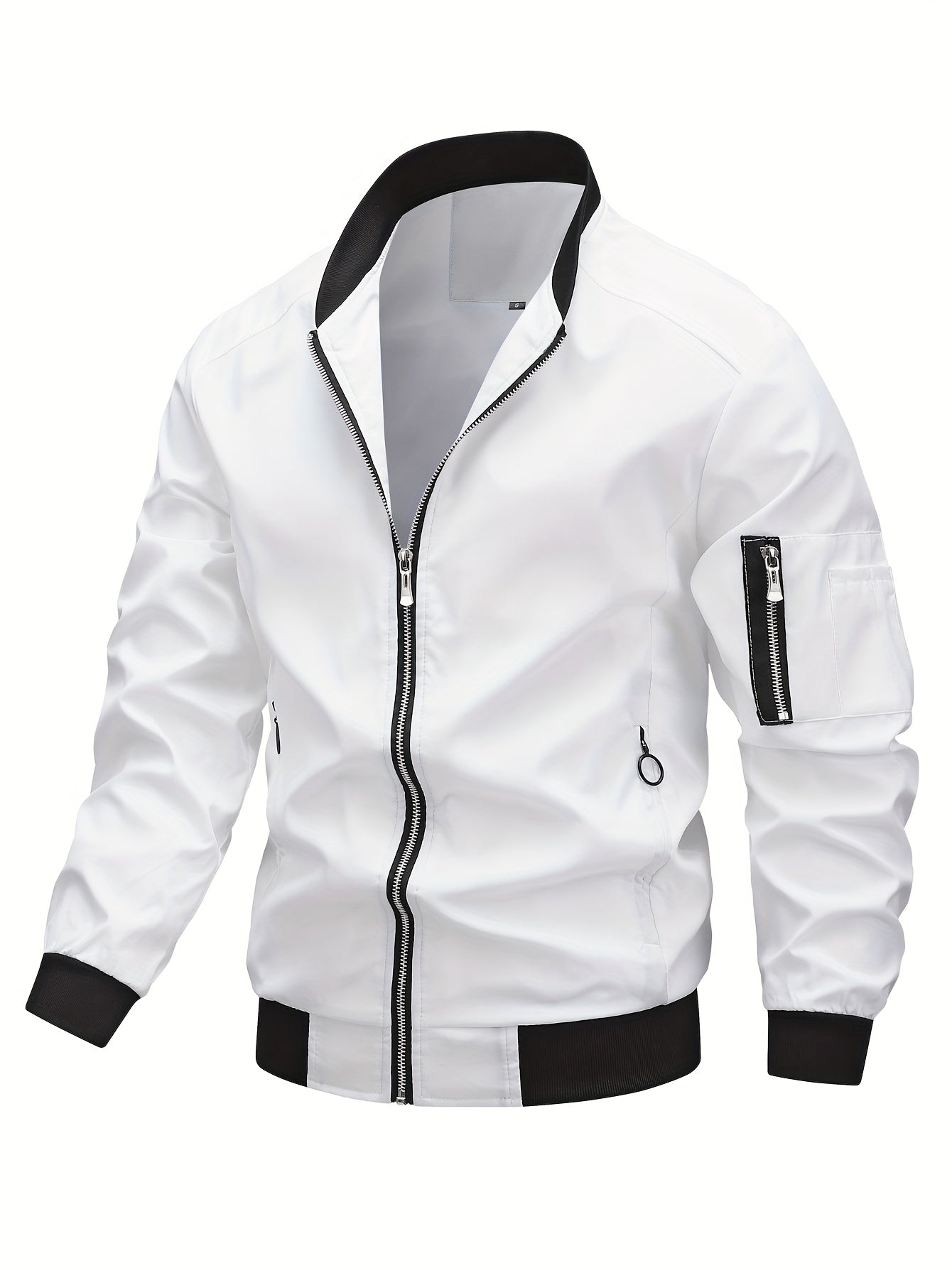Men's Baseball Jacket - Casual Zip-Up Coat with Black Accents