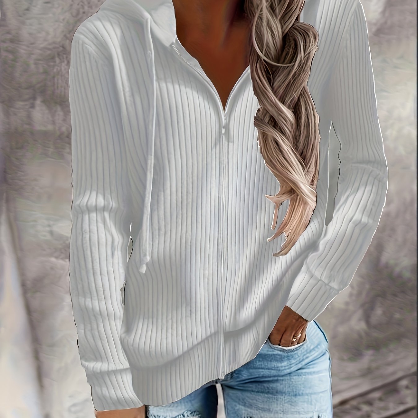 SCACTO Women's Casual Zipper Hoodie - Solid Color Long Sleeve Sweater
