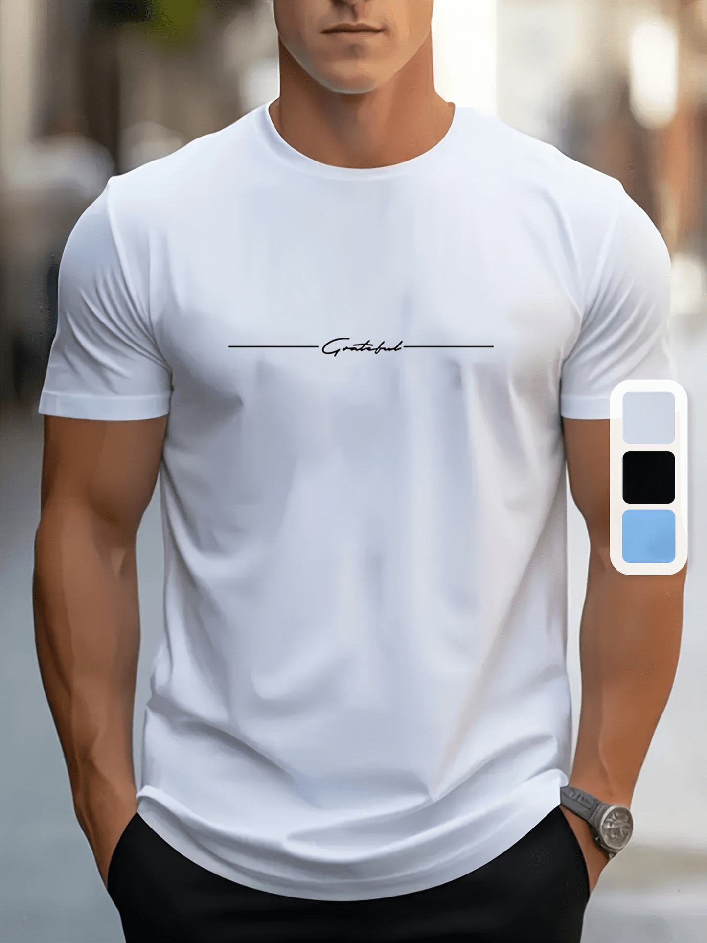 Men's Round Neck Letter Print Tee - Casual Short Sleeve Top
