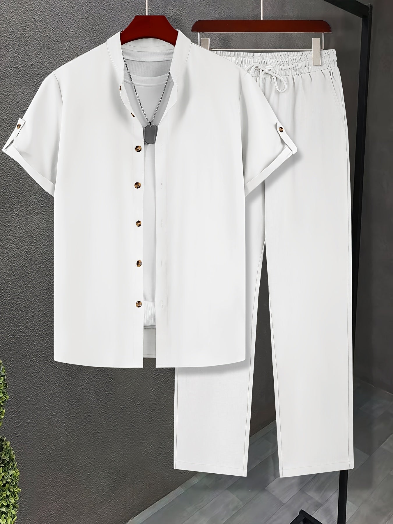 Men's Lightweight Casual Shirt & Drawstring Pants Set - All-Season