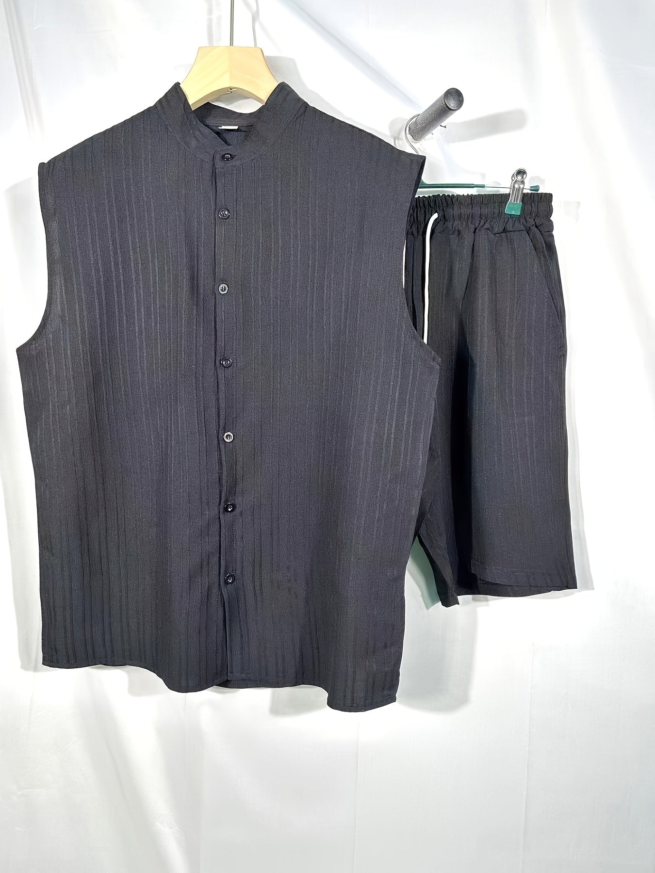 Elevate your summer wardrobe with our Men's Casual Sleeveless Henley Shirt & Beach Shorts Set. Crafted from 100% polyester, this lightweight and breathable ensemble is perfect for warm weather outings. With a stylish striped pattern and a comfortable fit, it's ideal for casual wear by the beach or at home.
