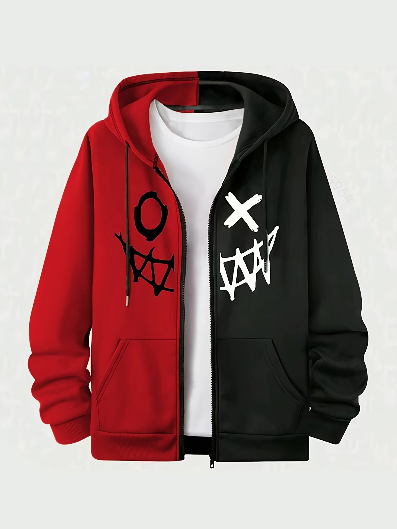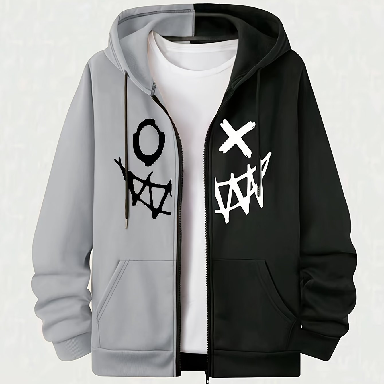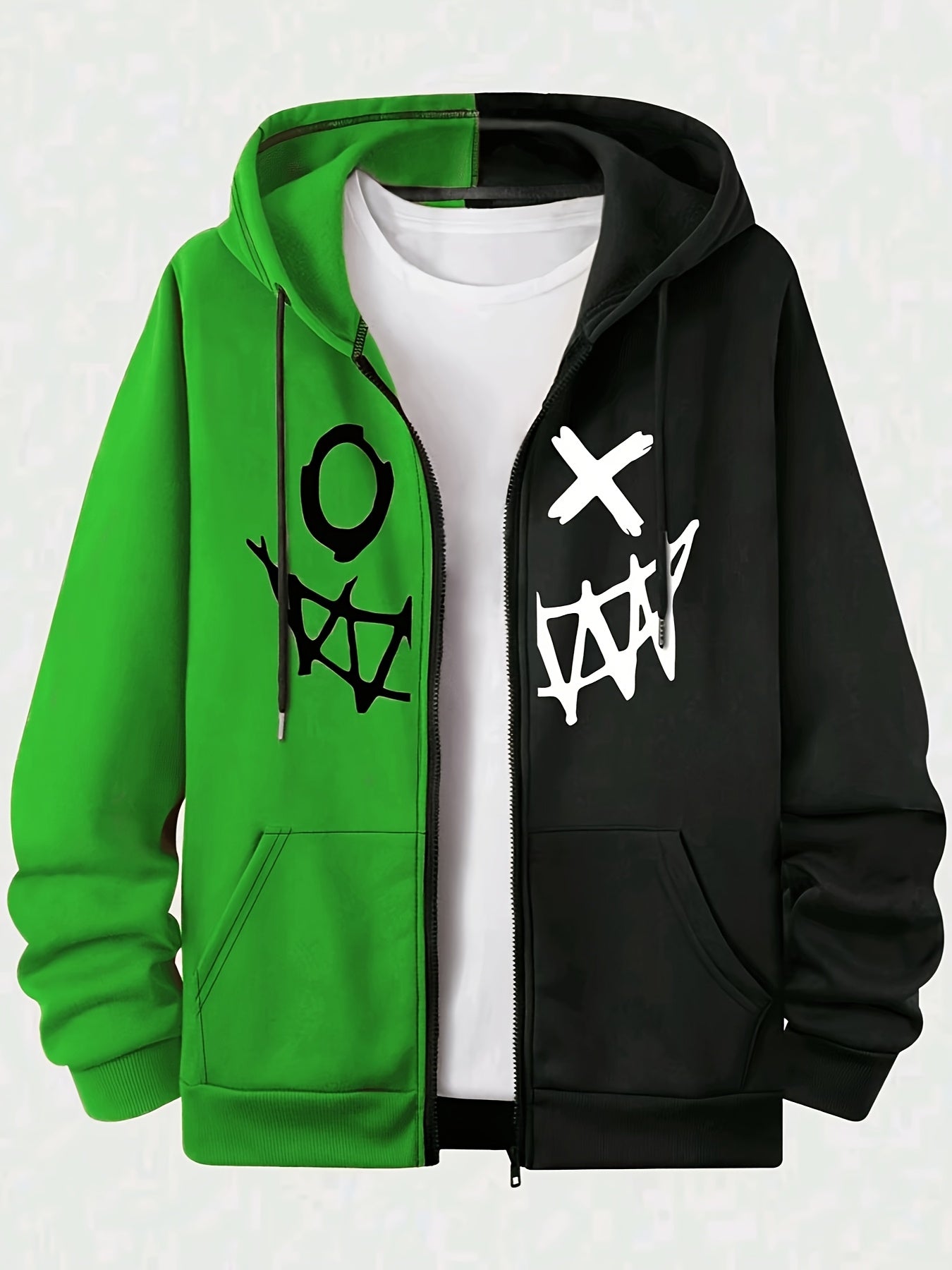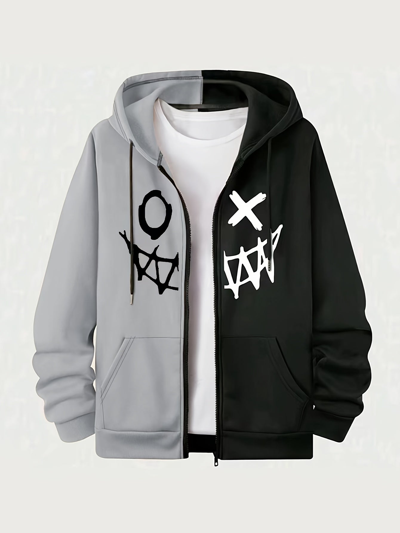 Men's Full-Zip Hooded Jacket - Casual Two-Tone Coat for Fall/Winter