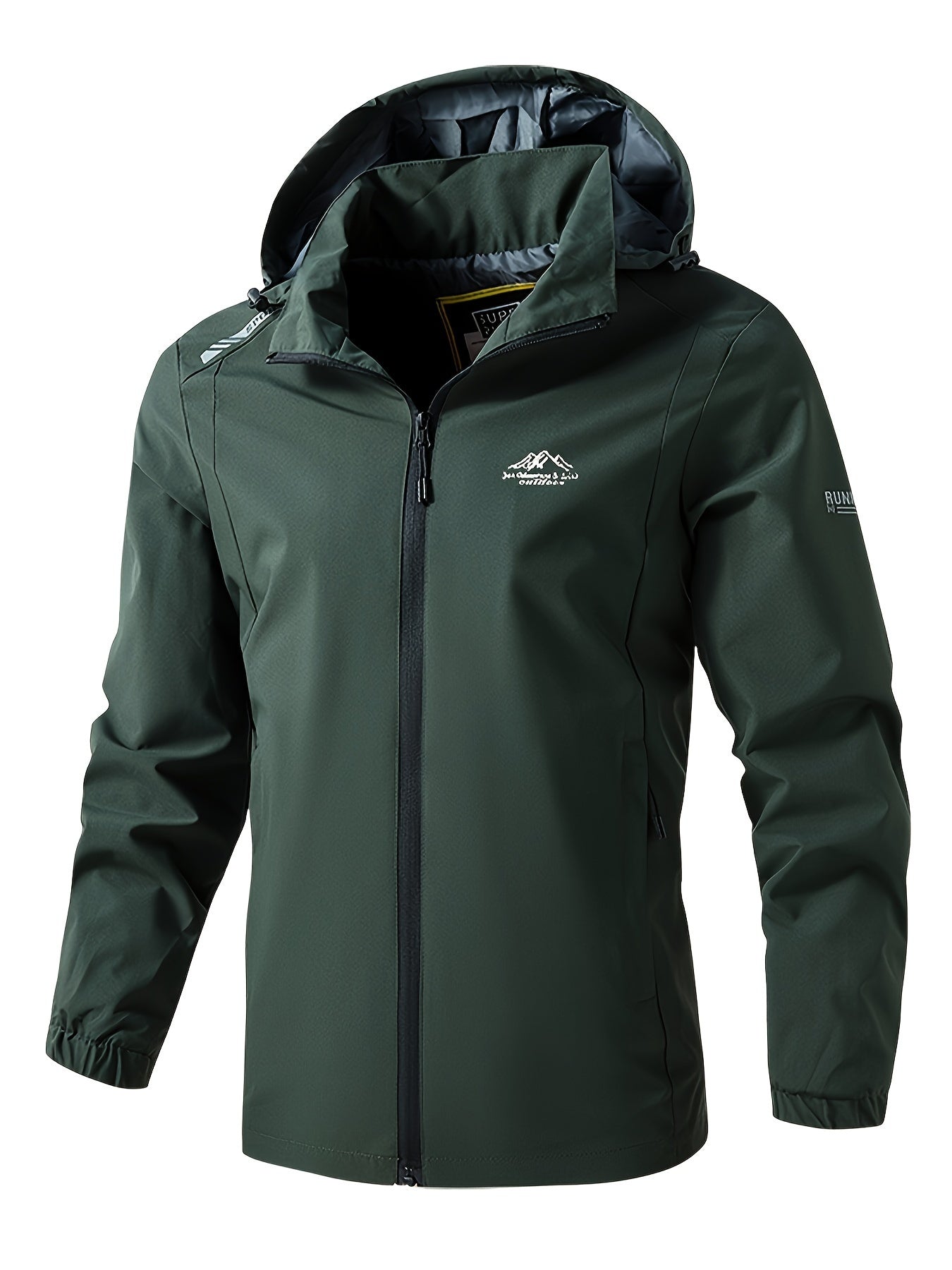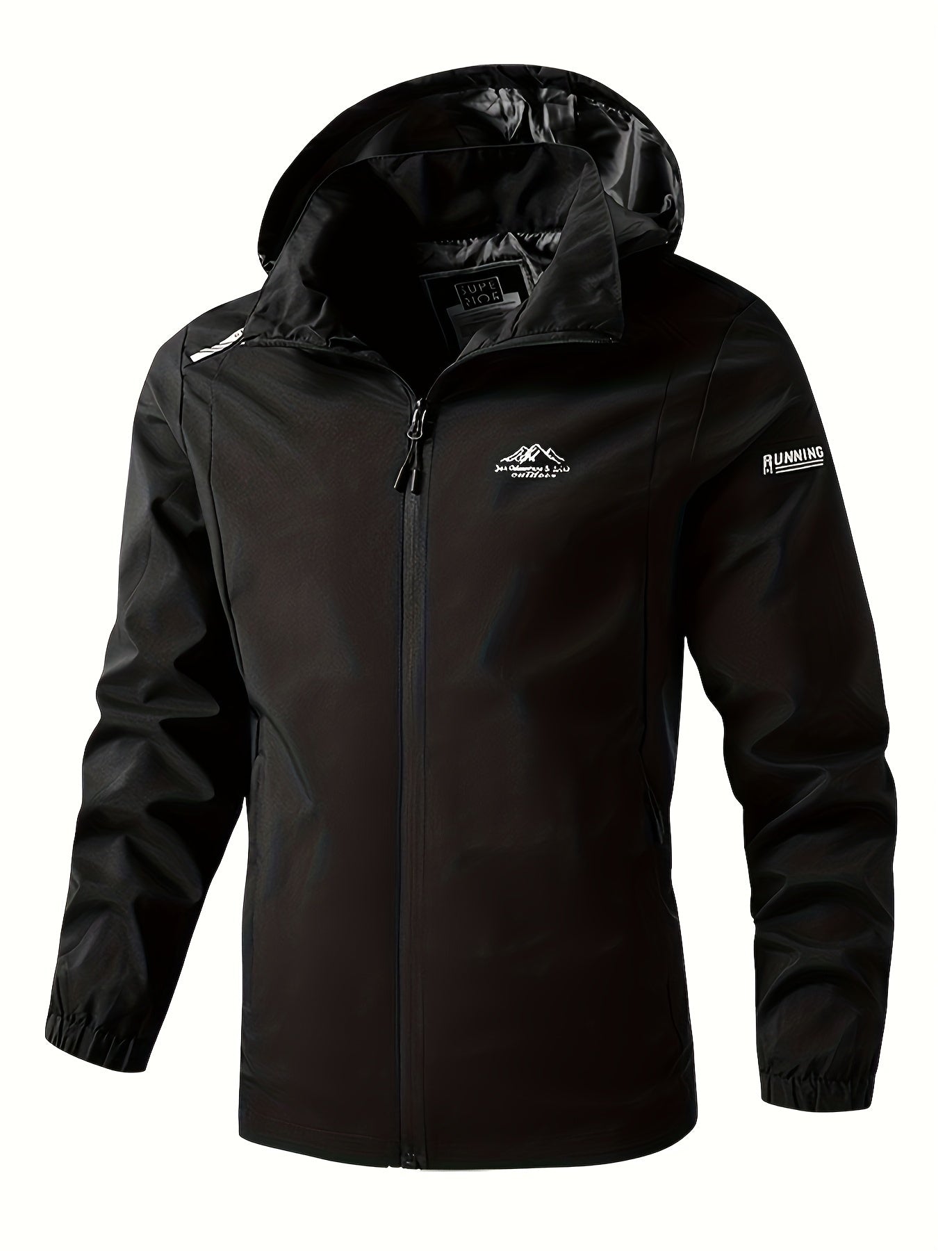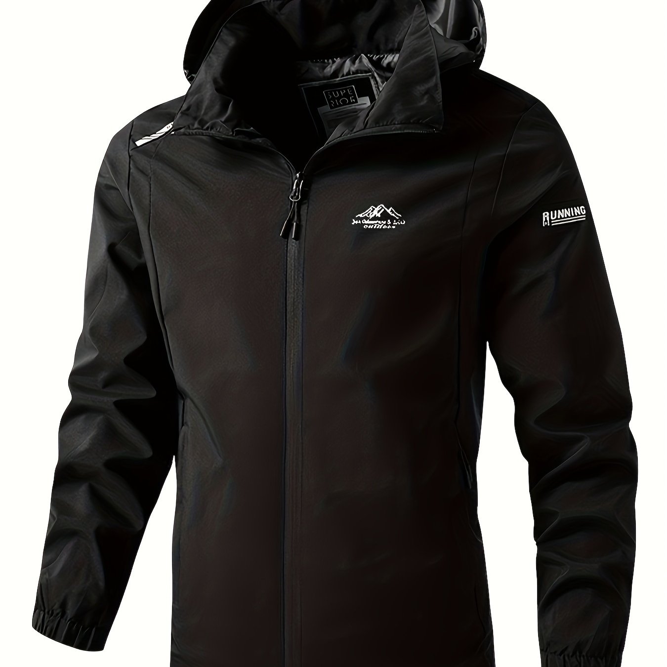 Men's Sports Hooded Blazer - Zippered Closure & Alphabet Pattern