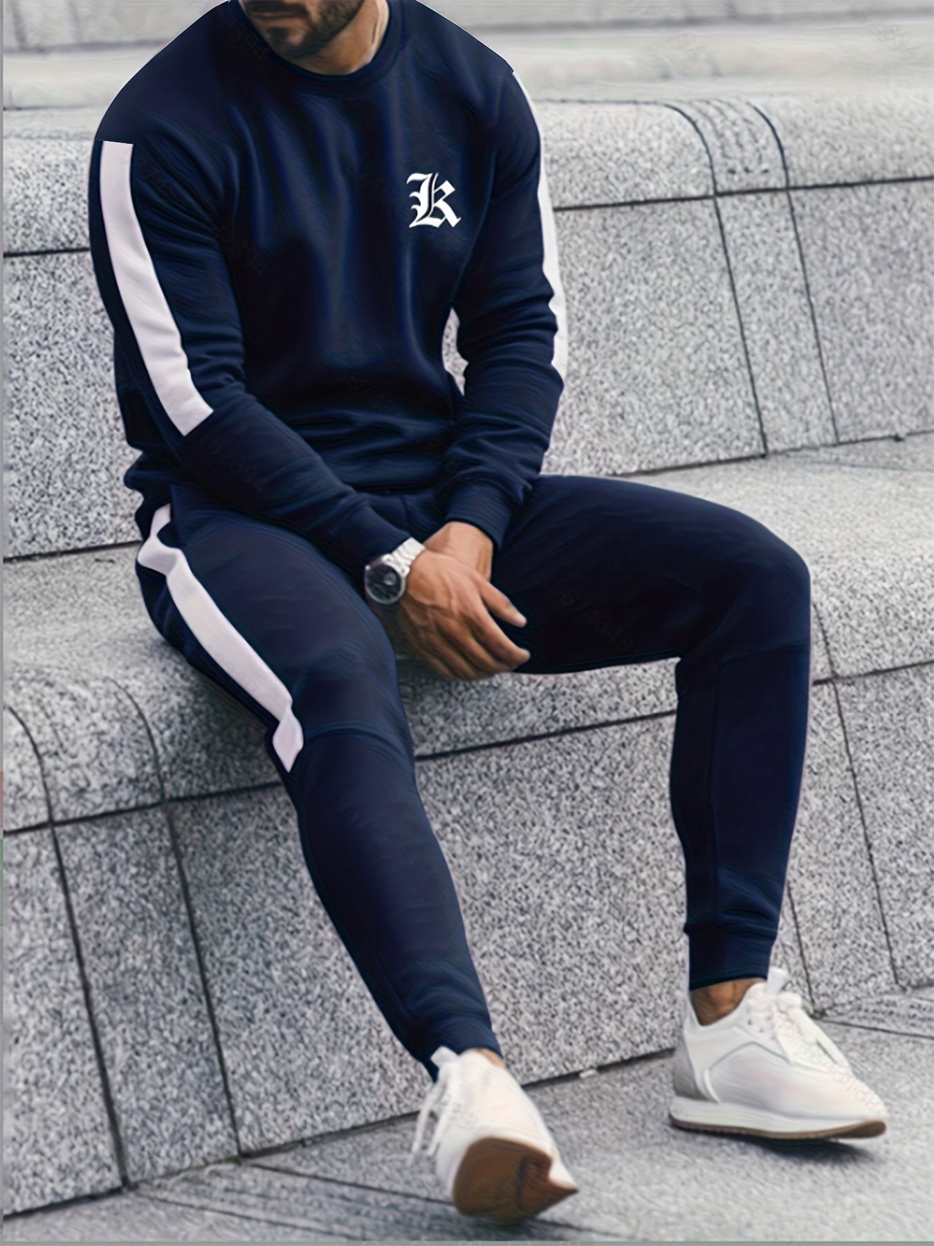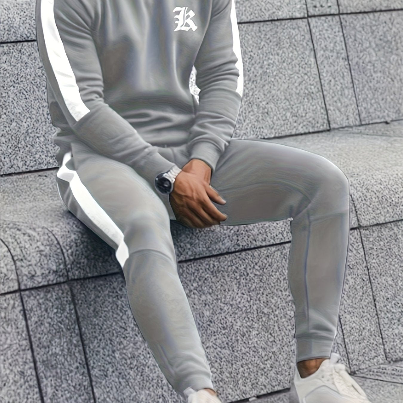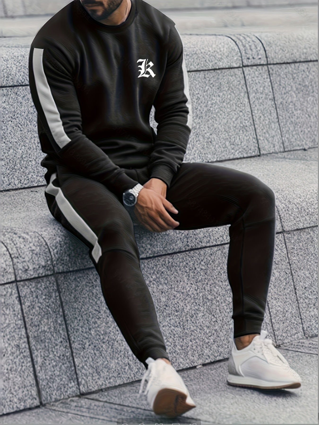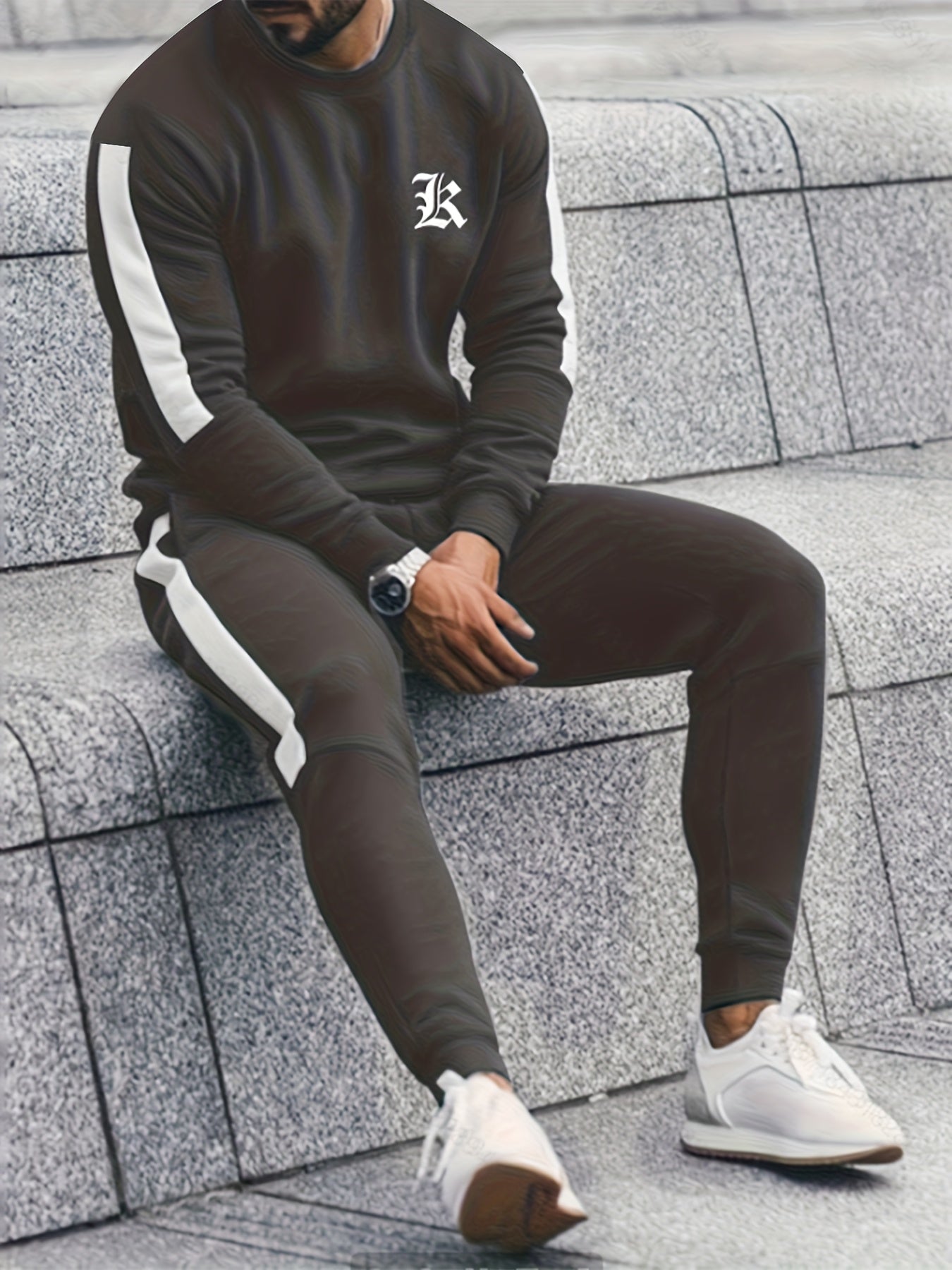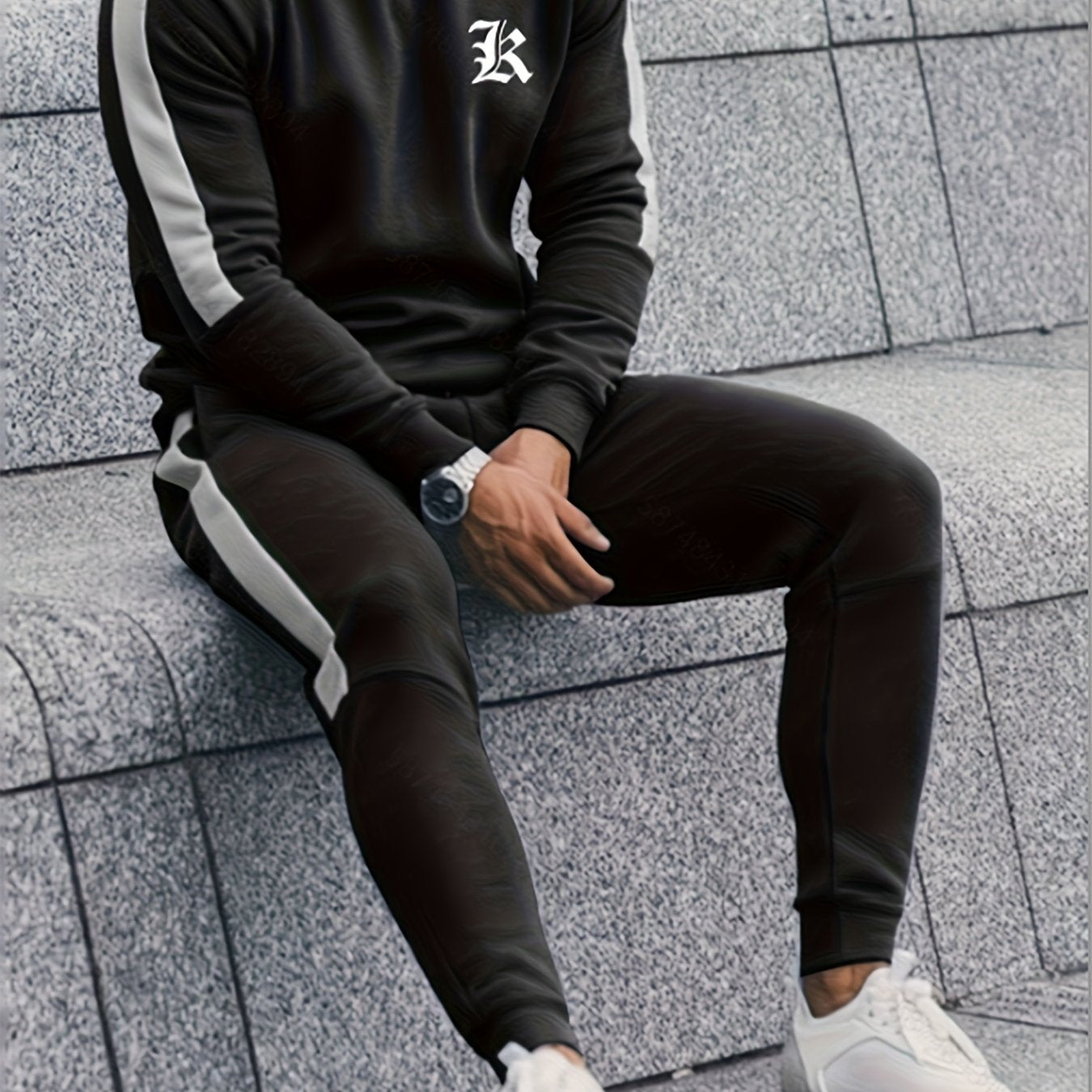 Men's Casual Sporty Tracksuit - Letter Print, Crew Neck Sweater & Joggers
