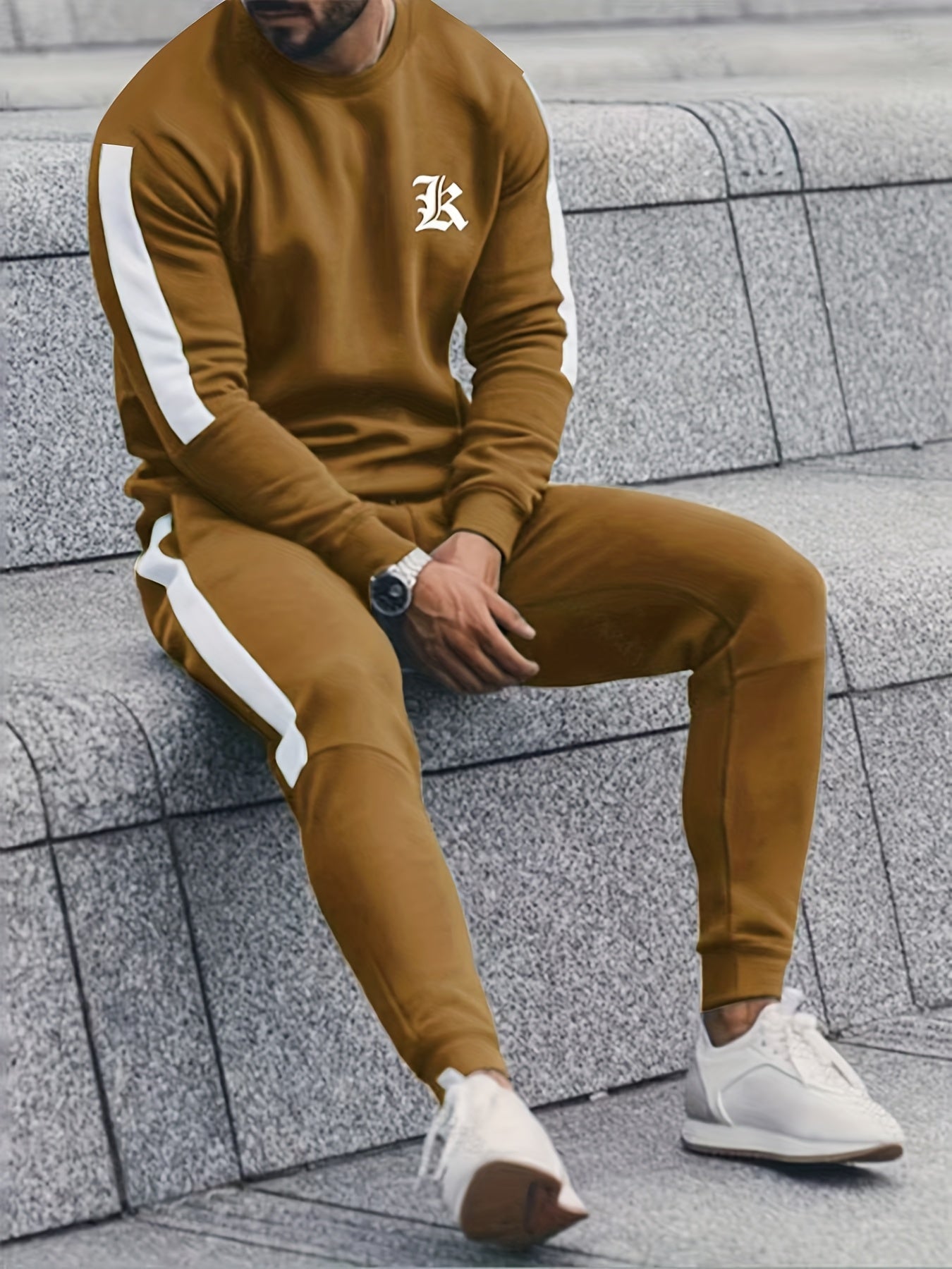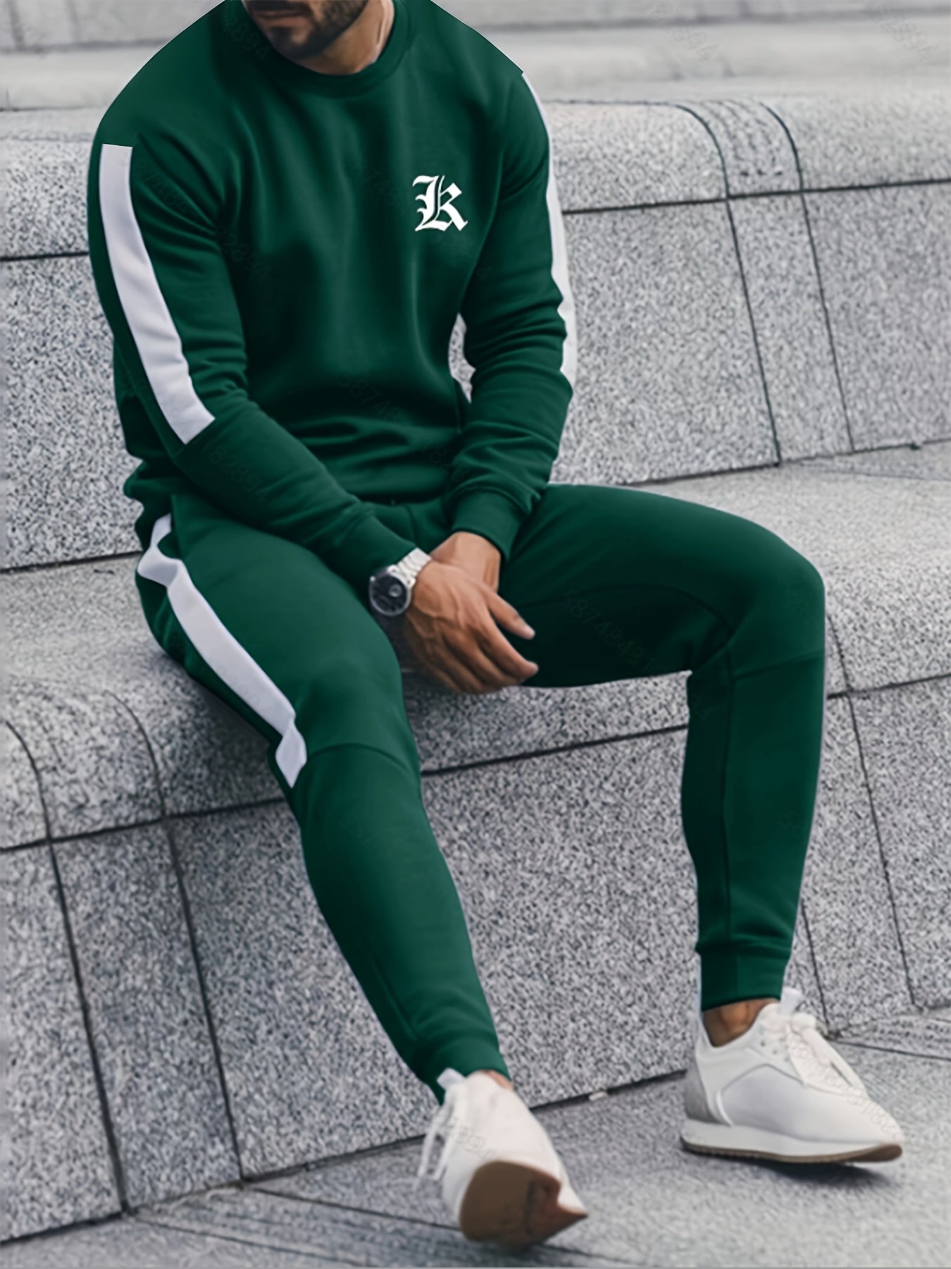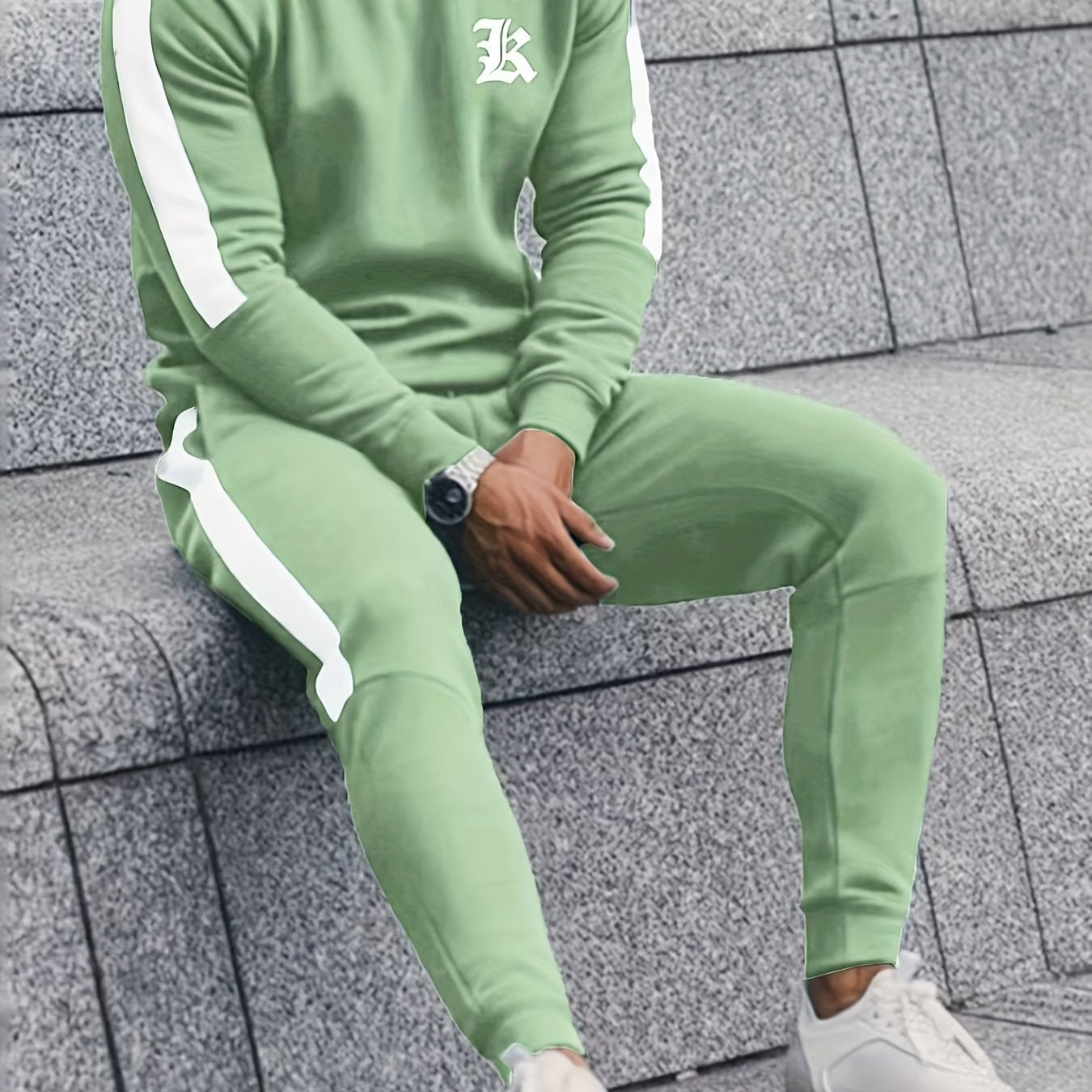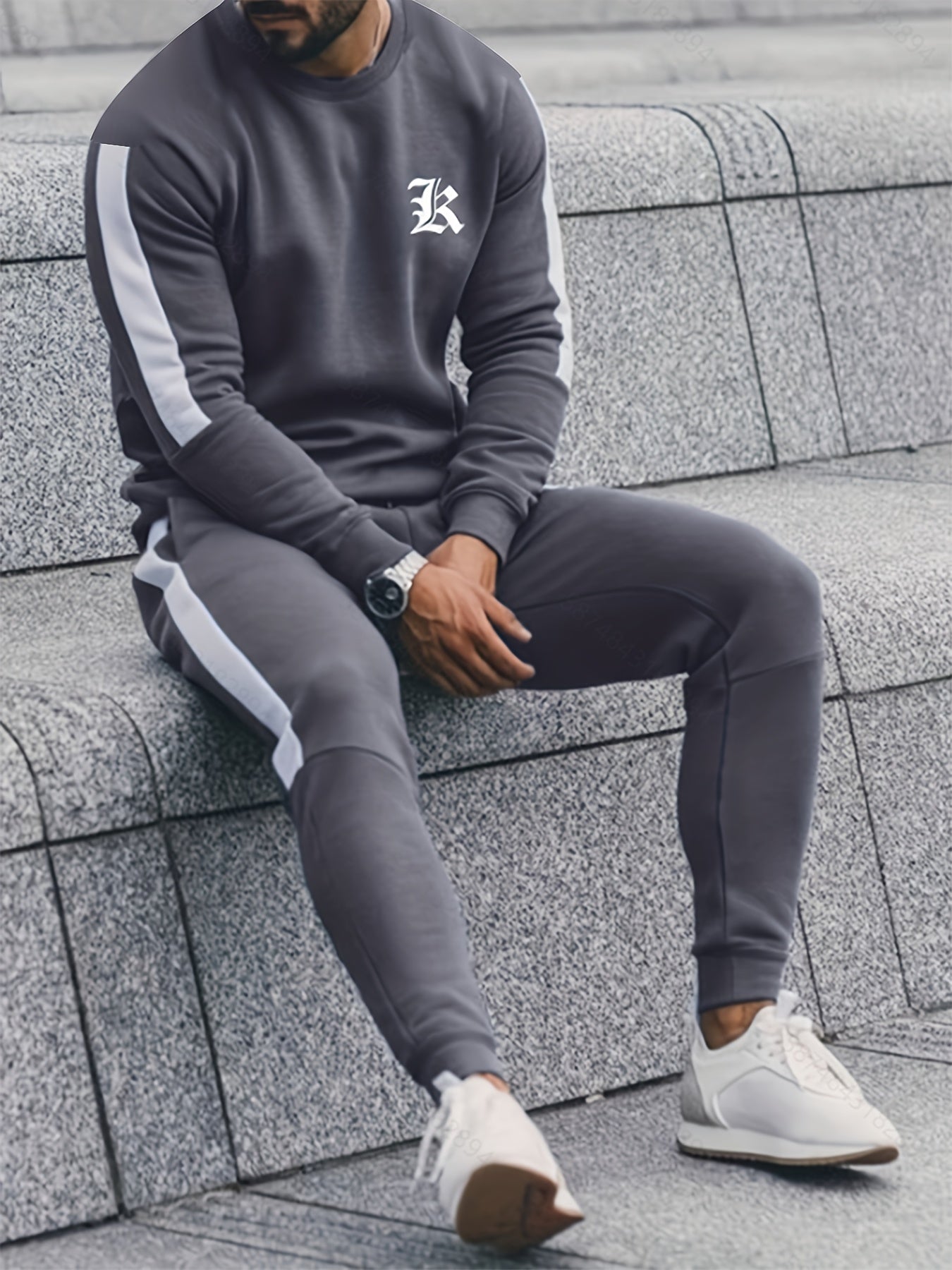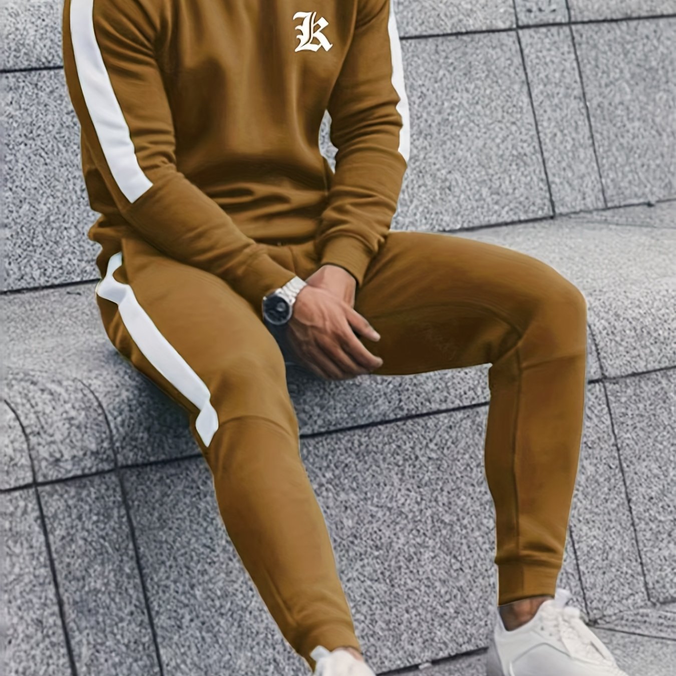 Men's Casual Sporty Tracksuit - Letter Print, Crew Neck Sweater & Joggers