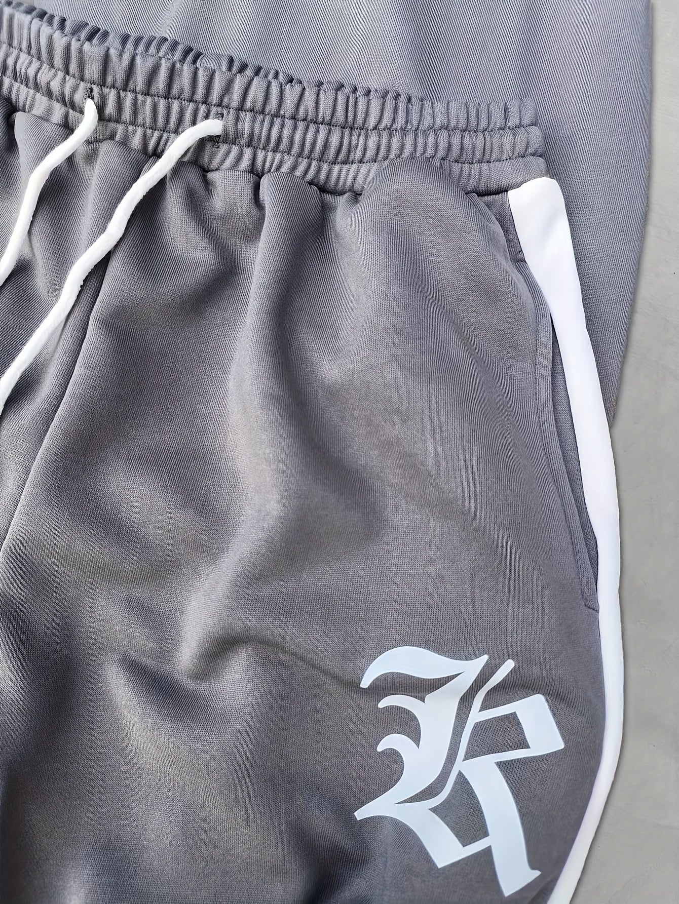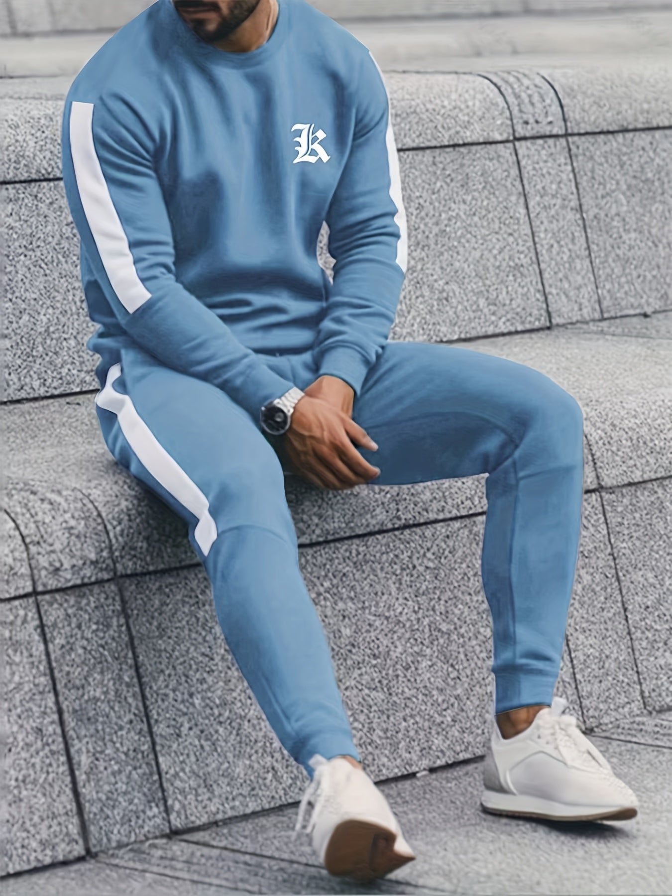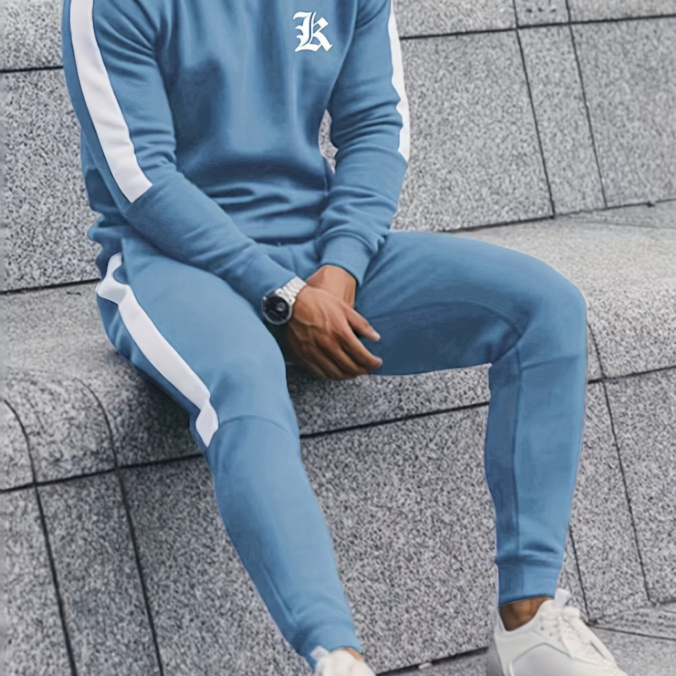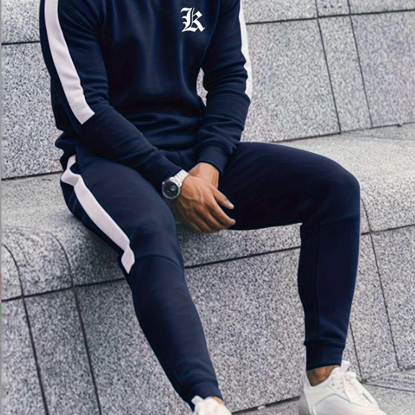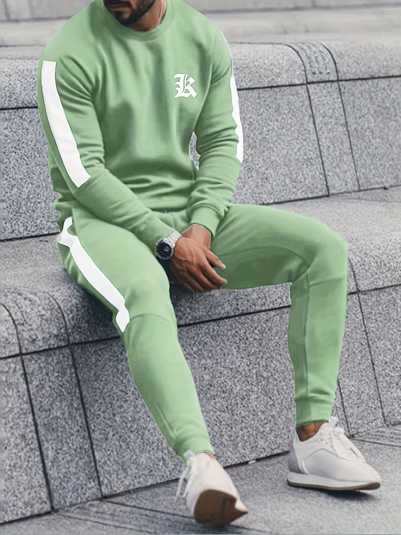 Men's Casual Sporty Tracksuit - Letter Print, Crew Neck Sweater & Joggers