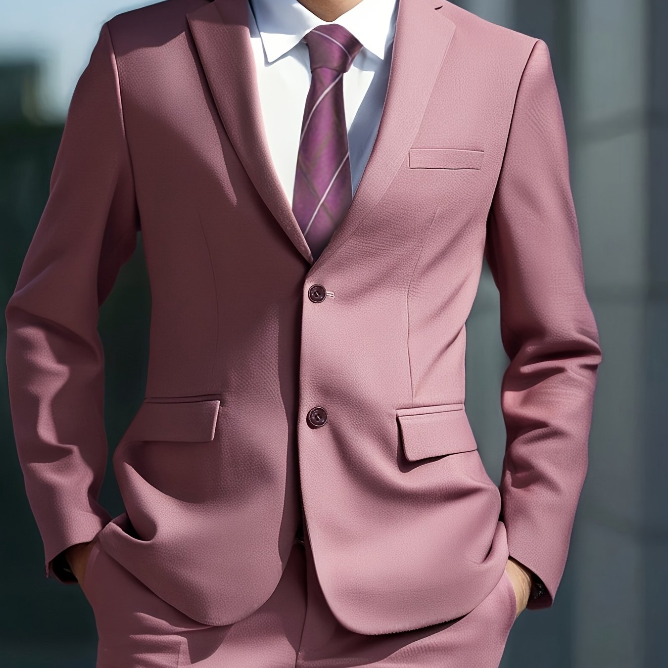 Men's Casual Two-Piece Suit - Long Sleeve, Buttoned Design for Work