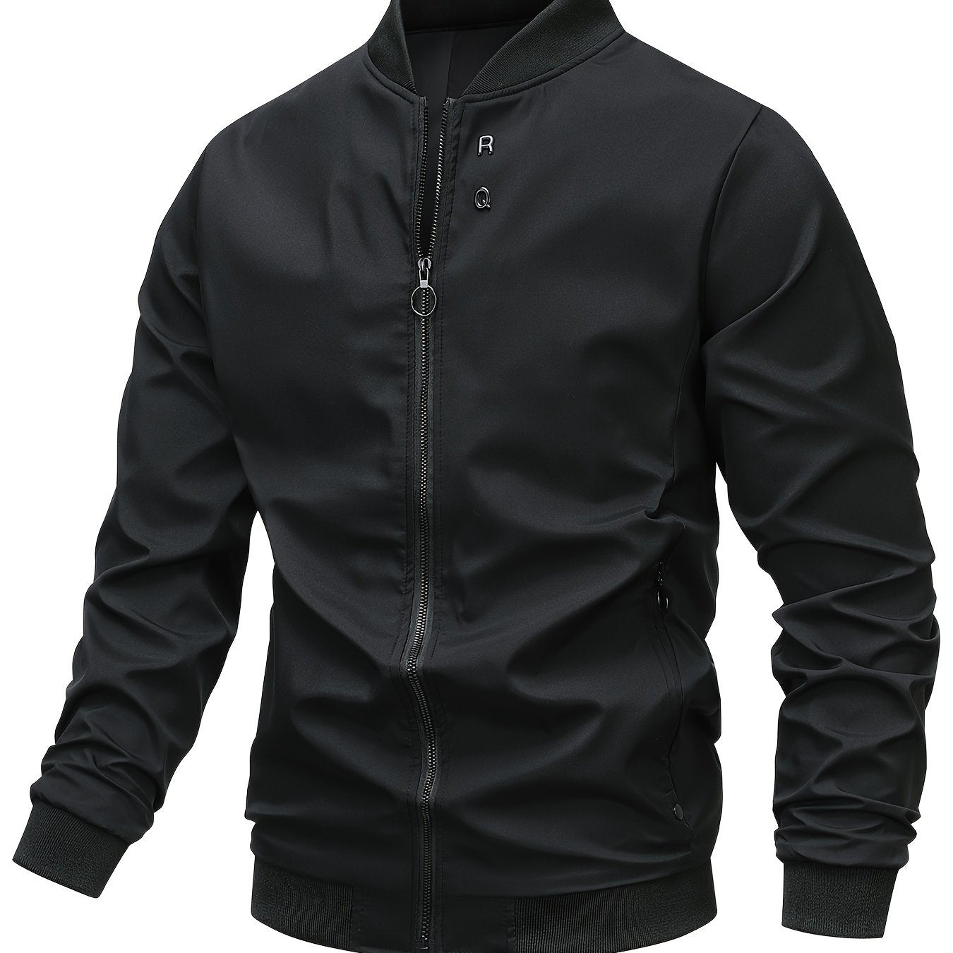 Men's Casual Zip-Up Jacket - Solid Baseball Collar, Long Sleeve