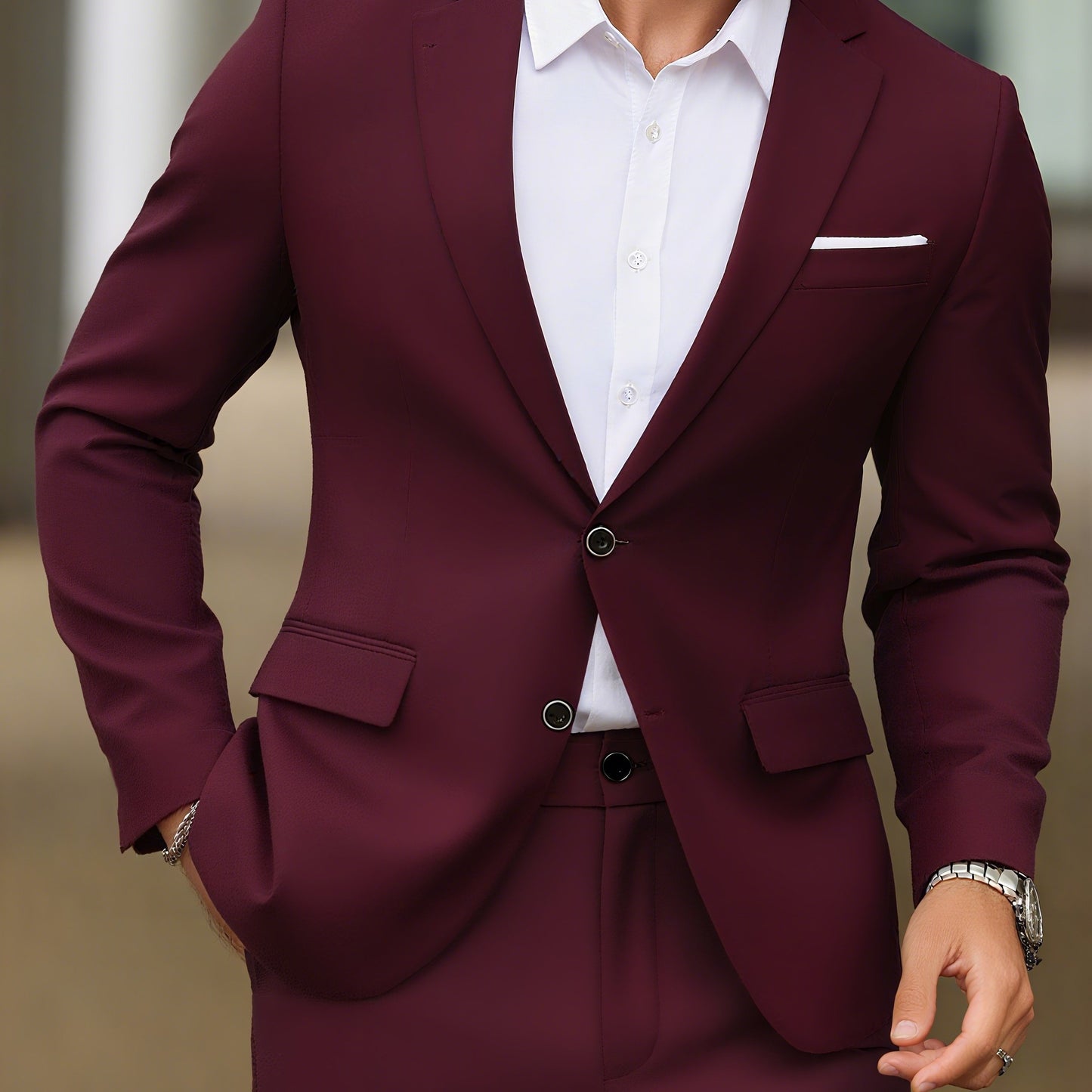Men’s 2pcs Suit Set - Blazer & Trousers, Elegant Solid Color