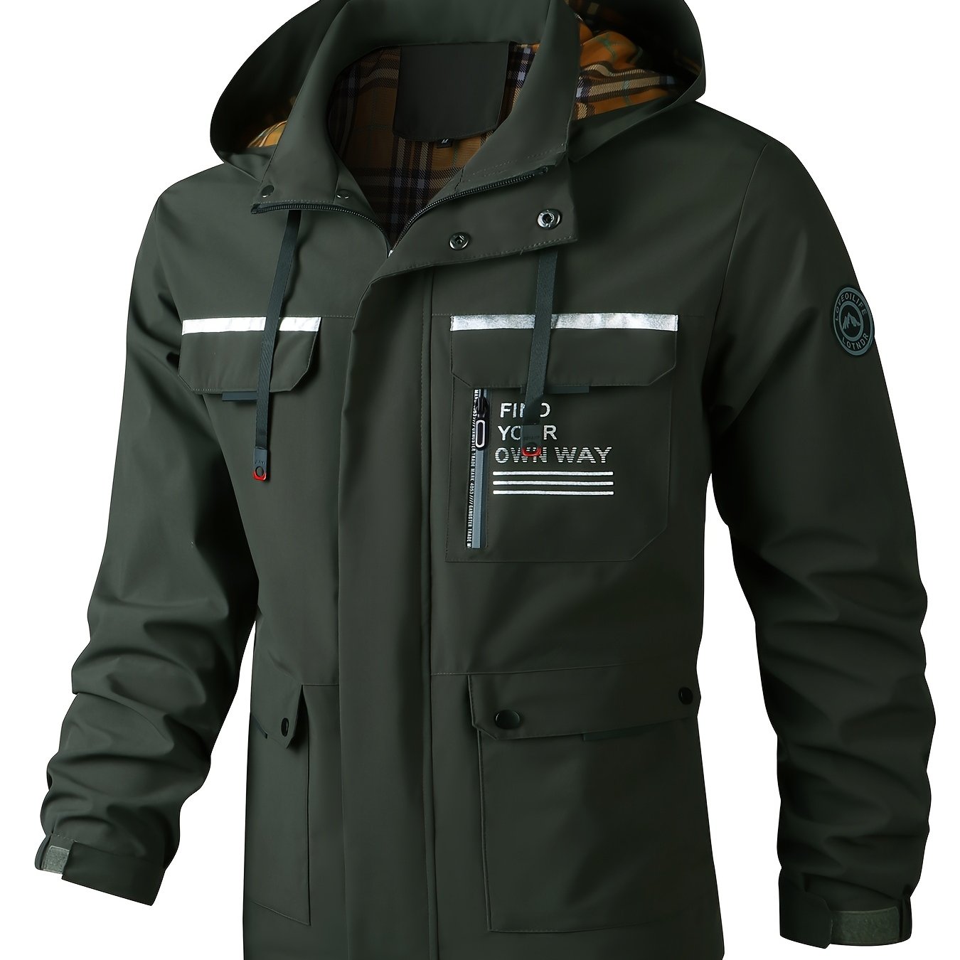 Men's Multi-Pocket Cargo Windbreaker Jacket - Casual Hooded Coat