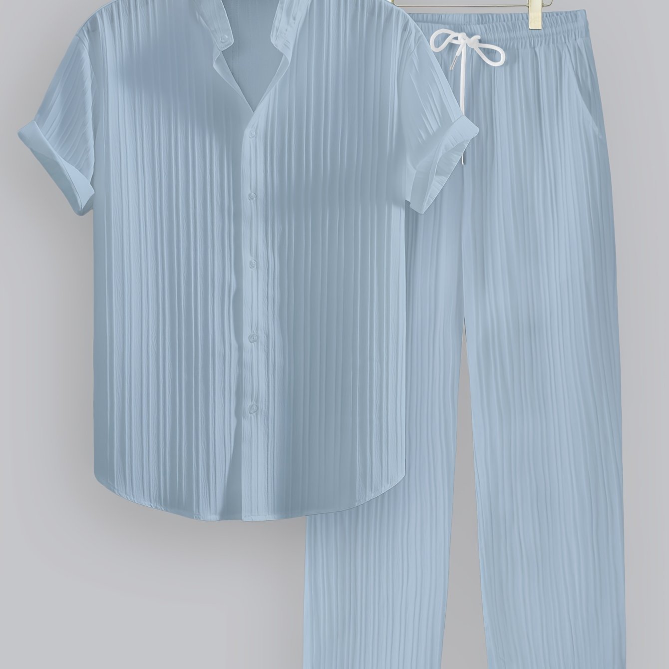 Men's Summer 2-Piece Set - Casual Short-Sleeve Shirt & Drawstring Trousers