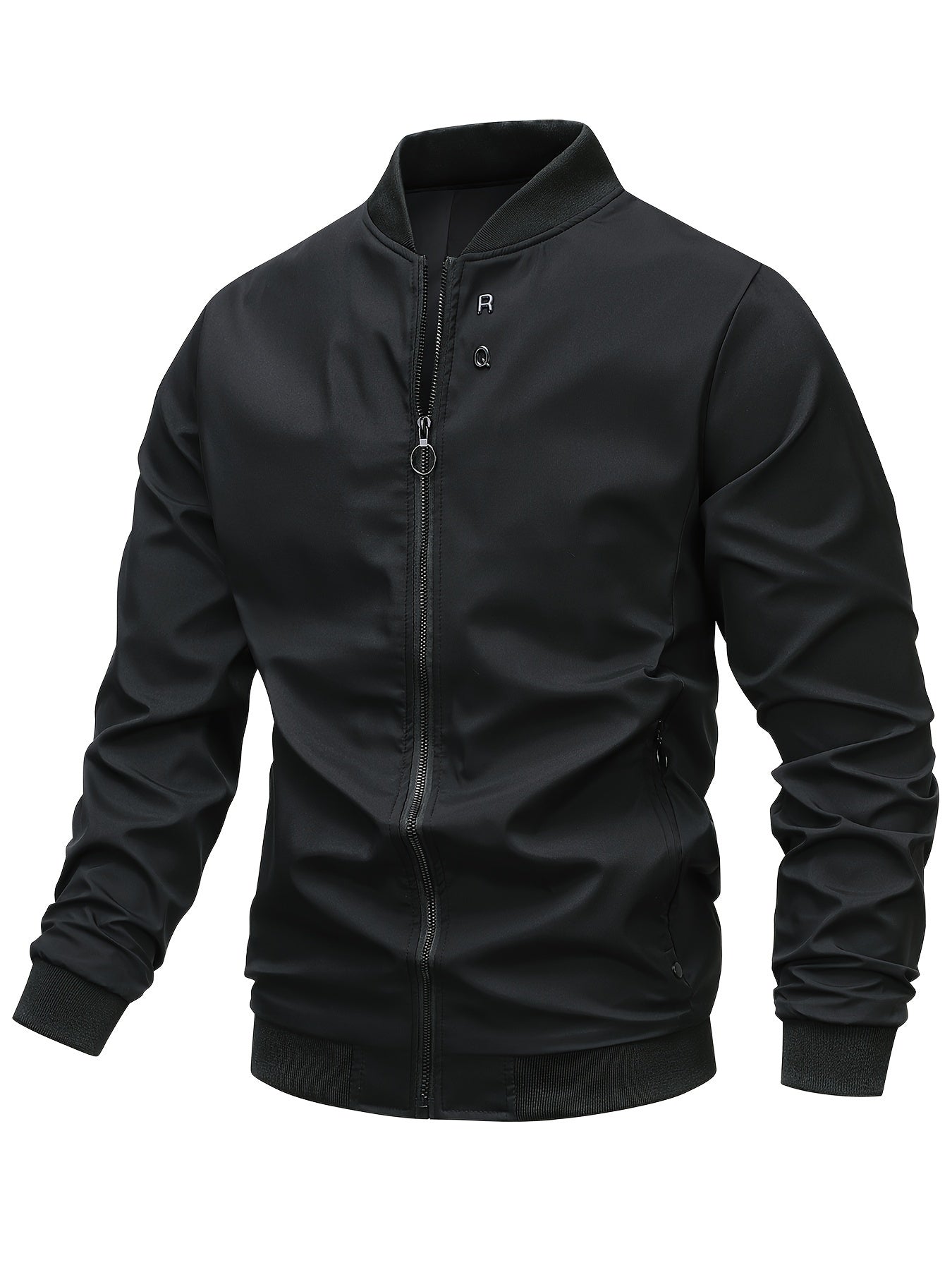 Men's Casual Solid Jacket - Zip Up with Pockets for Spring/Fall