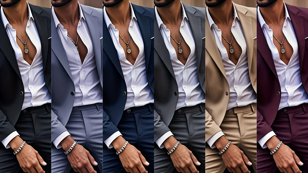 Elevate your professional wardrobe with the Elitefit Men's Formal Suit Set, featuring a tailored slim blazer and perfectly fitted pants designed for business occasions. This suit offers a polished look that enhances your confidence and sophistication.
