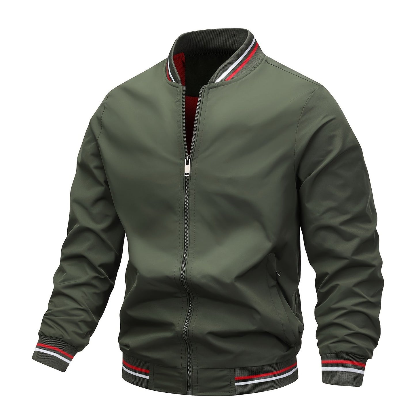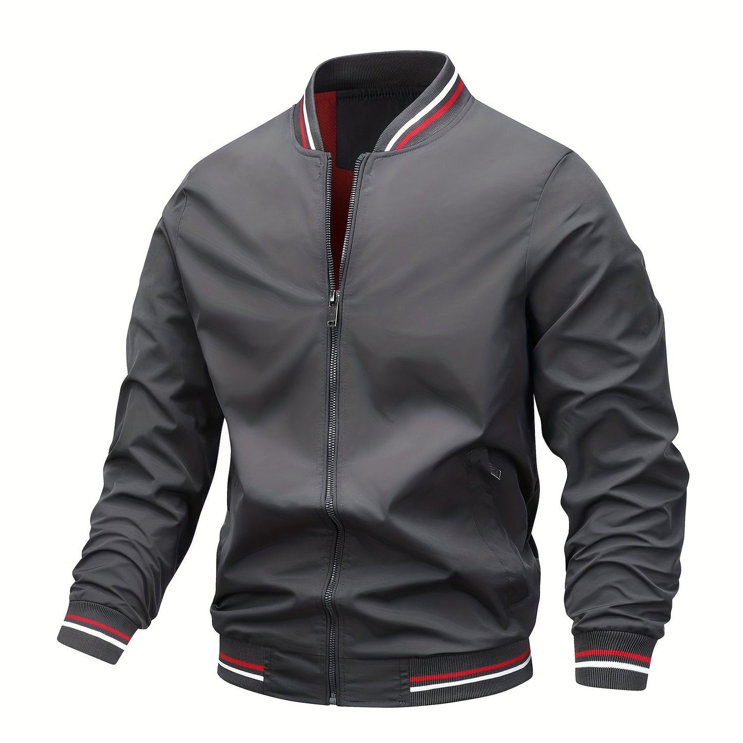 Men's Striped Sports Jacket - Casual Zip Up for Spring/Fall Outings